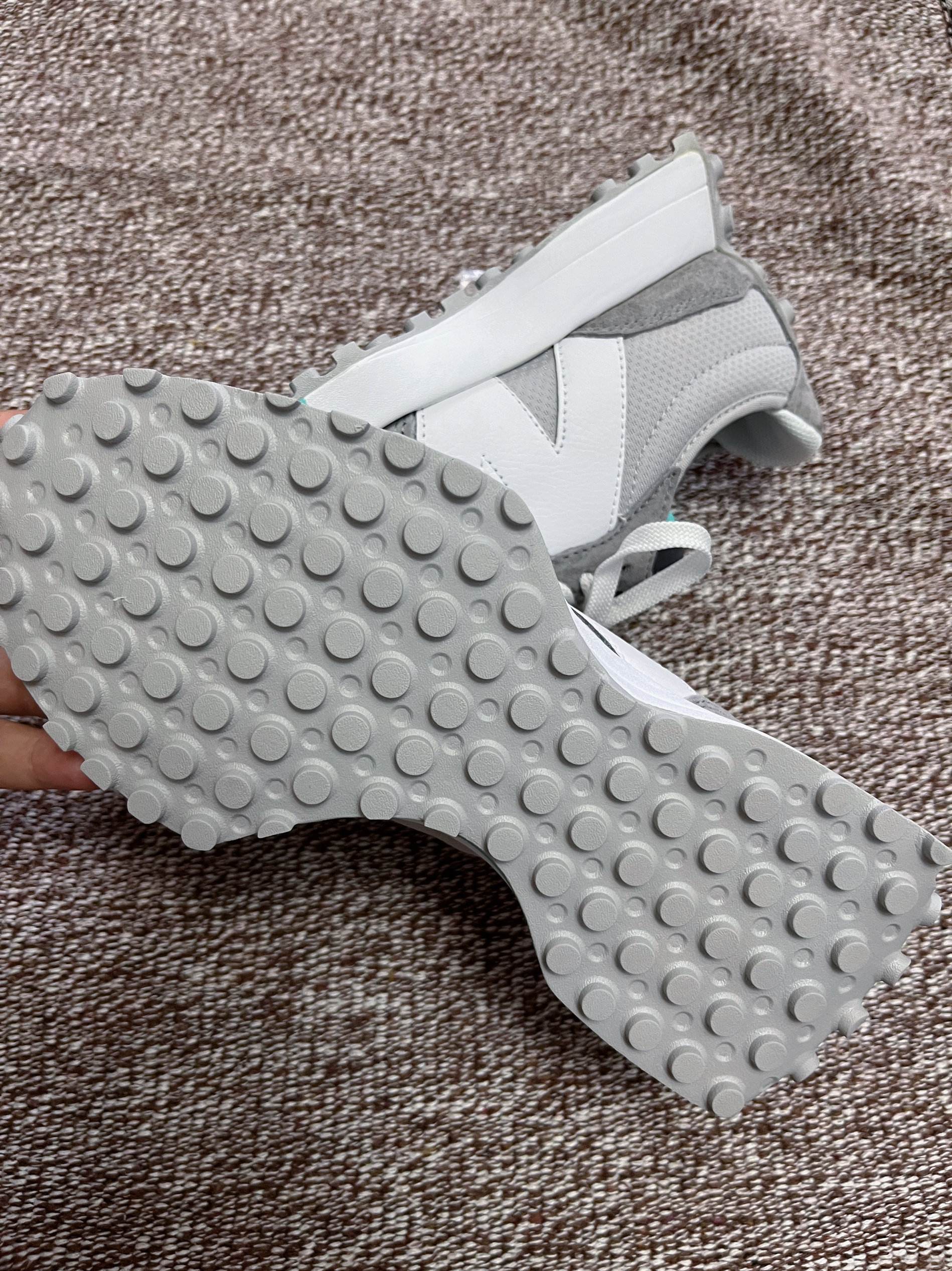 今日小拖鞋为大家分享 New Balance NB 327低帮跑步鞋! 现在四百多入手很合适了!配色清新而且日常搭配衣服真的很出效果! 鞋面材质丰富,采用反毛皮织物和皮革制成,皮质细腻质感十足!鞋面的织物很薄,透气性十足!上脚舒适度很高! 鞋面颜色采用灰色,侧面的“N”logo用白色演绎,还点缀蓝色元素,颜值超高!配色很基础日常穿搭也很方便!搭配宽松牛仔裤短裤或者休闲裤都有不错的...