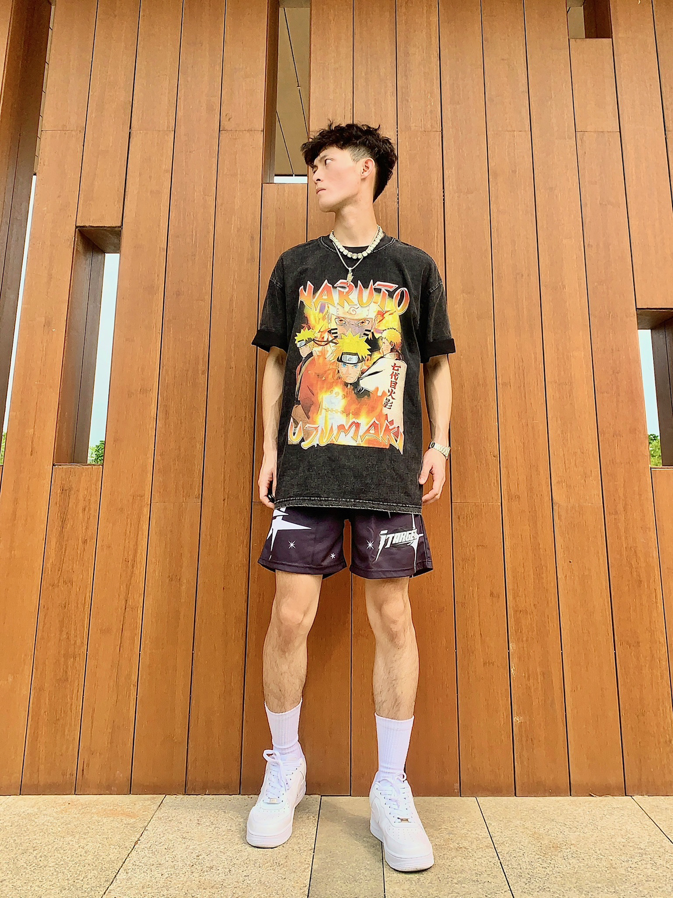 🚵♂️夏天出门一定要尝试美式街头穿搭,今天这一套黑紫色搭配绝啦,简单介绍一下这一套穿搭吧📯 🙋🏽♂️身为体育生或者拥有黄黑皮最适合啦🤗 📸黑色水洗T恤➕紫色美式短裤✅ — — — — — — — — — — — — — — — — — — 1️⃣👕 🧩夏季适合穿重磅水洗做旧美式短袖,小圆领纯棉面料,上身效果宽松舒适透气,火影忍者鸣人动漫印花💥 - 2️⃣🩳 🧩美式篮球四分不过膝短裤,面料舒适...