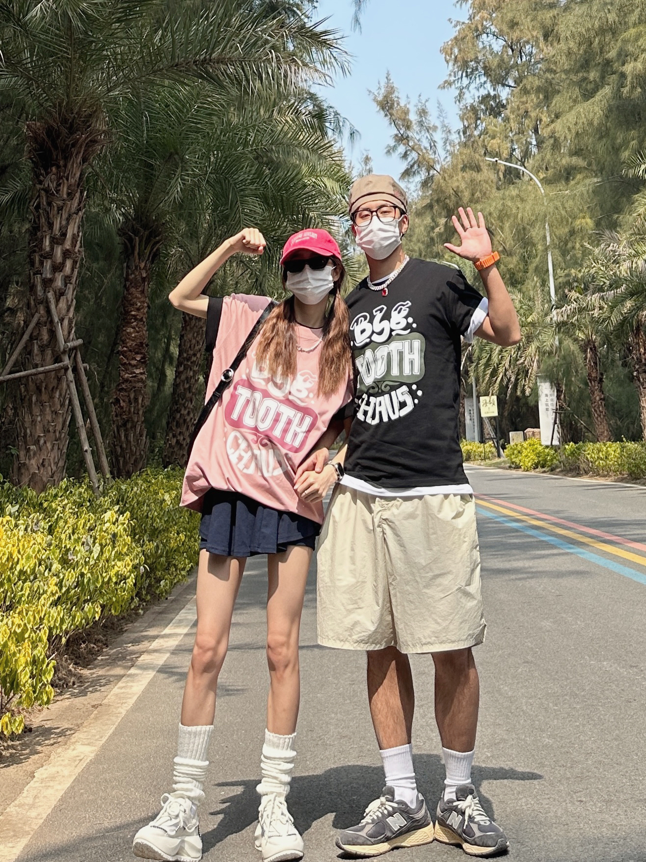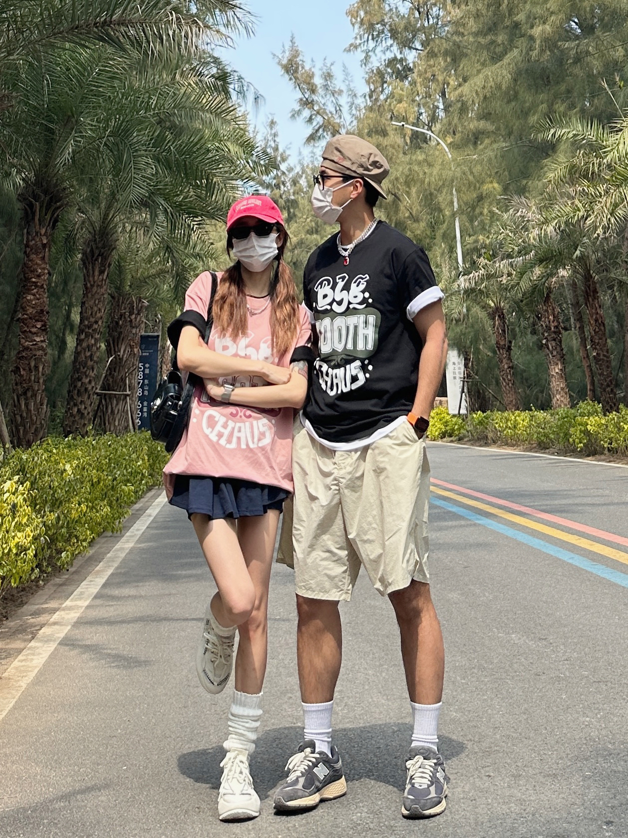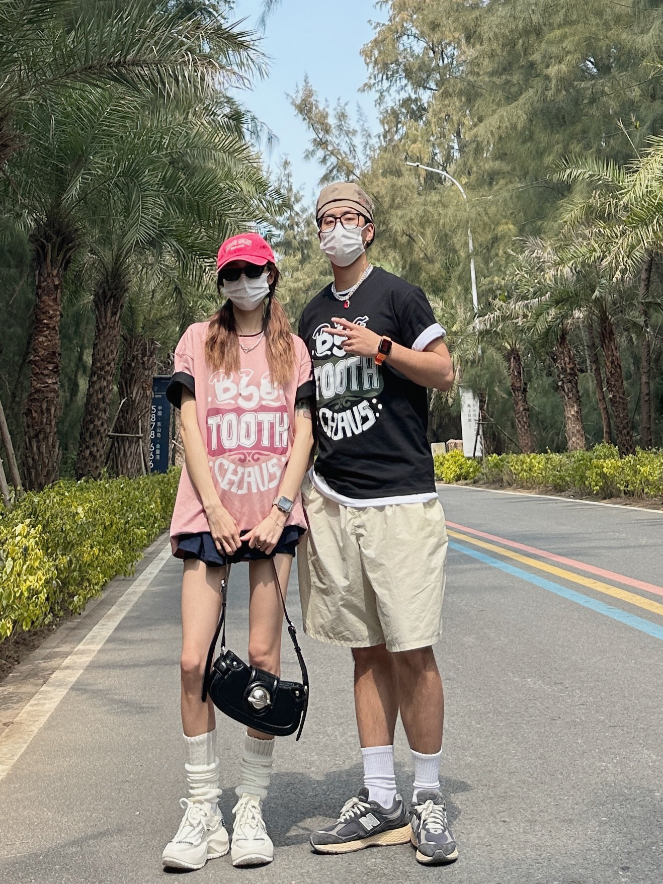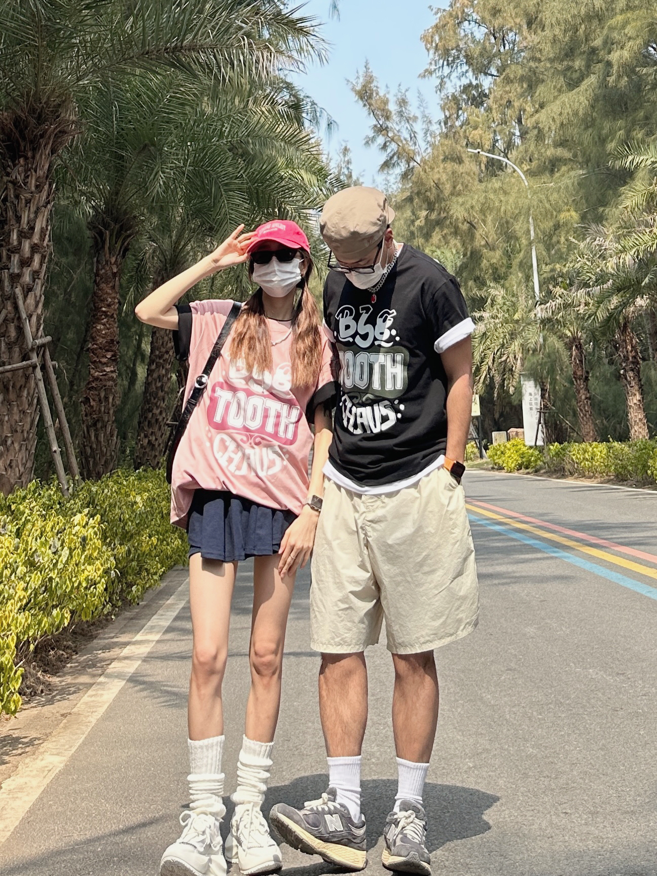 欢迎来到小铭宗宗情侣穿搭频道 👦:168/44穿x 👧:182/70穿x 今日份穿搭女明星和她的男保安~ 墨镜用来凹造型有点东西的~ 夏天拍照睁不开眼有救了 Tee叠穿我太喜欢了~层次感满满 夏天搭配短裙子就很拉美~ 喜欢穿五分短裤阳的朋友们可以参考一下男保安的穿搭啦
