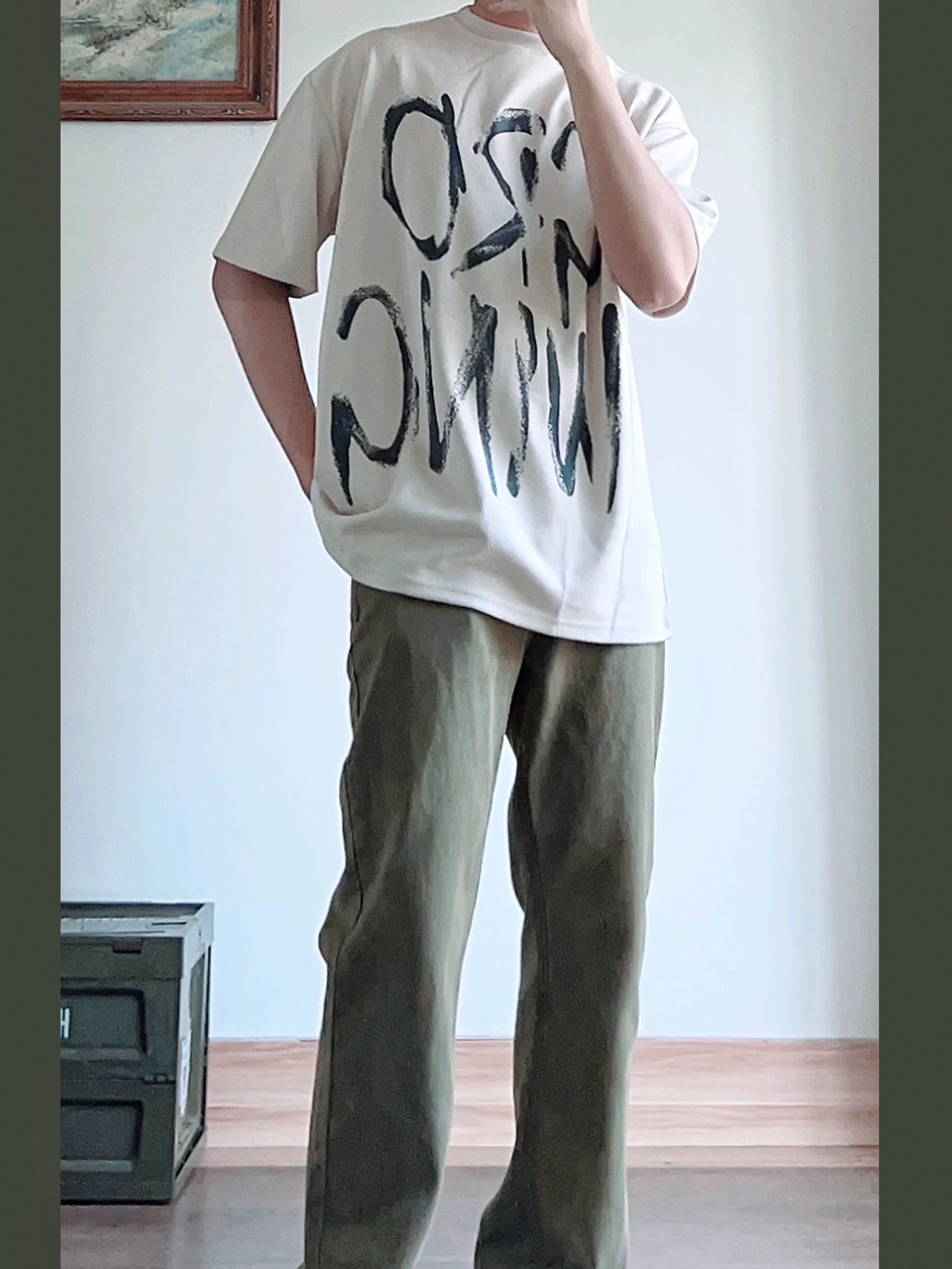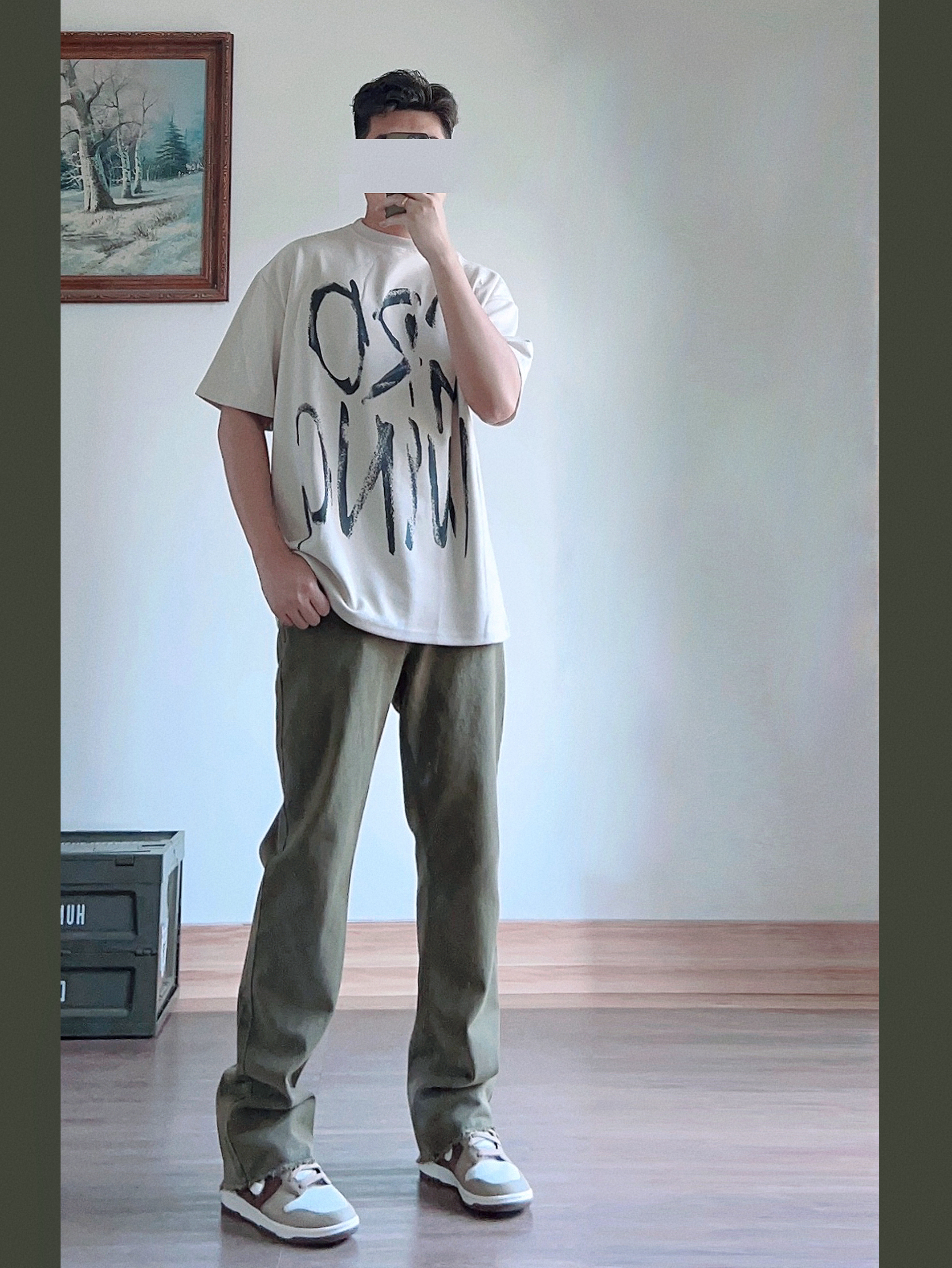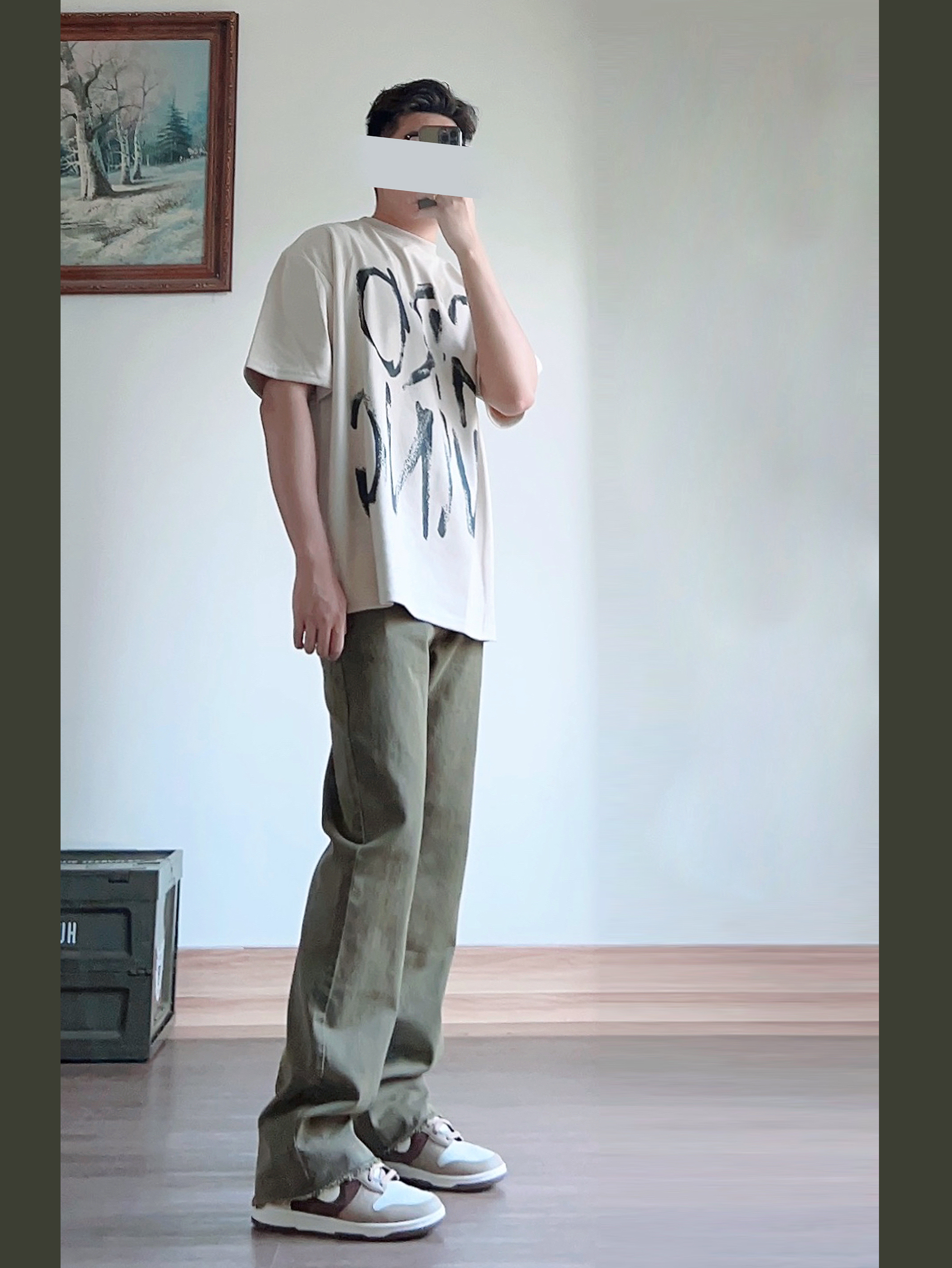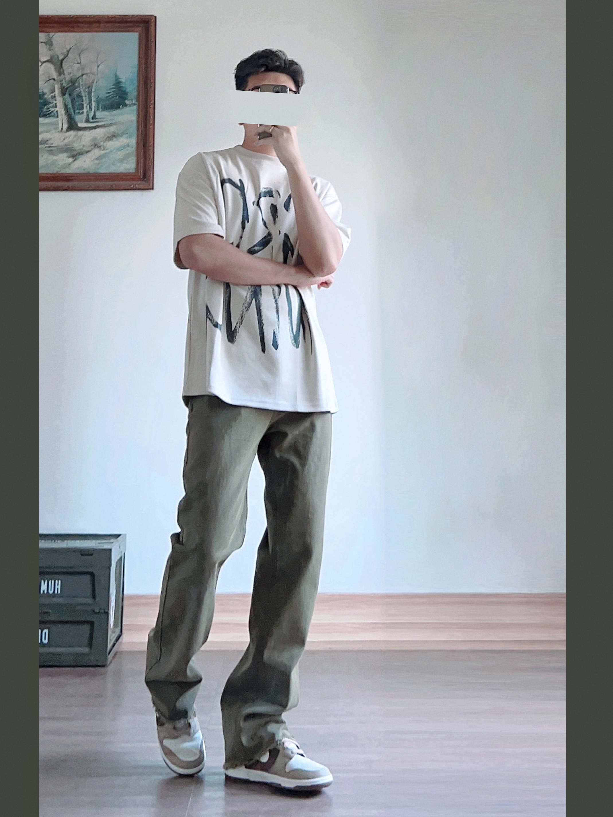 今日穿搭: 涂鸦麂皮短袖➕军绿色直筒牛仔裤 #男生穿搭夏装 #男生牛仔裤 #男大学生日常穿搭 #美式复古风穿搭 #今日份男友穿搭