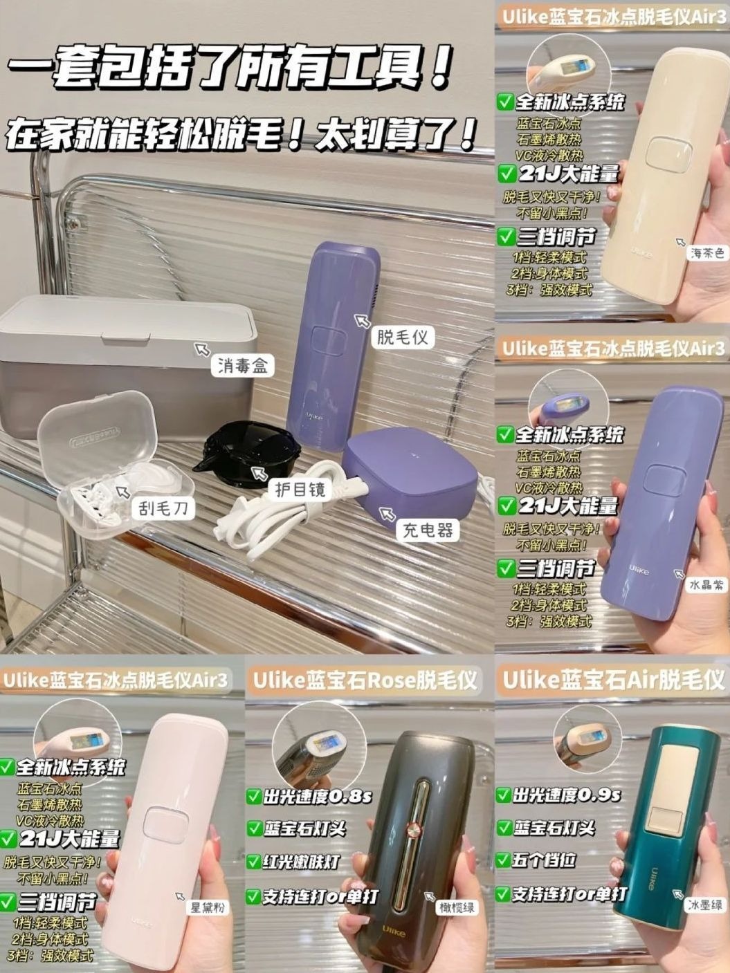 本篇笔记关联了Ulike Air3蓝宝石冰点脱毛仪 全身腋下无痛脱送女生礼物 水晶紫等商品,为用户提供真实的使用体验和购买参考。
