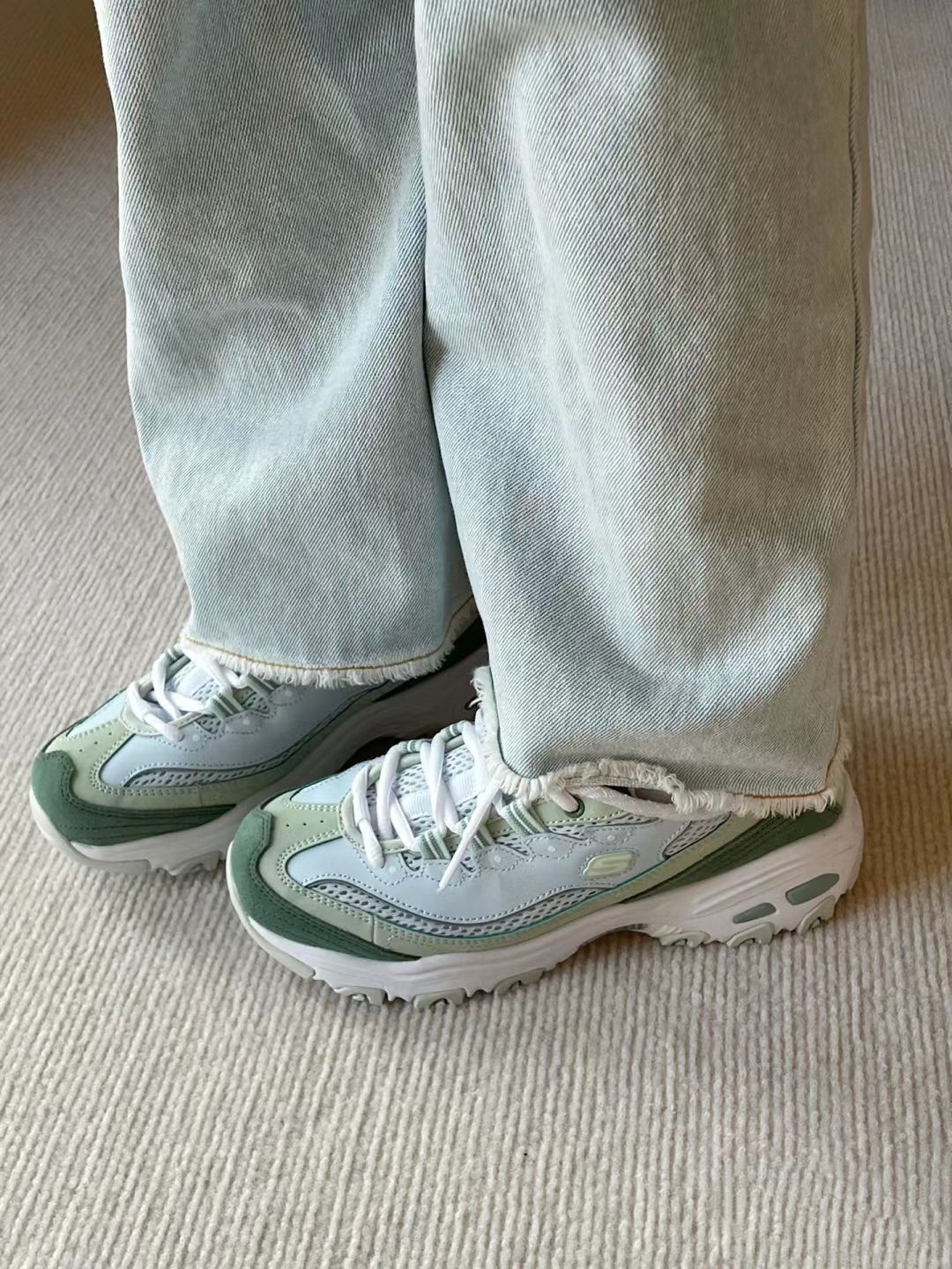 本篇笔记关联了Skechers/斯凯奇 D'Lites 1.0 奶茶熊 熊猫鞋 老爹鞋 闪穿鞋 厚底增高复古缓震百搭 女款/薄荷绿等商品,为用户提供真实的使用体验和购买参考。