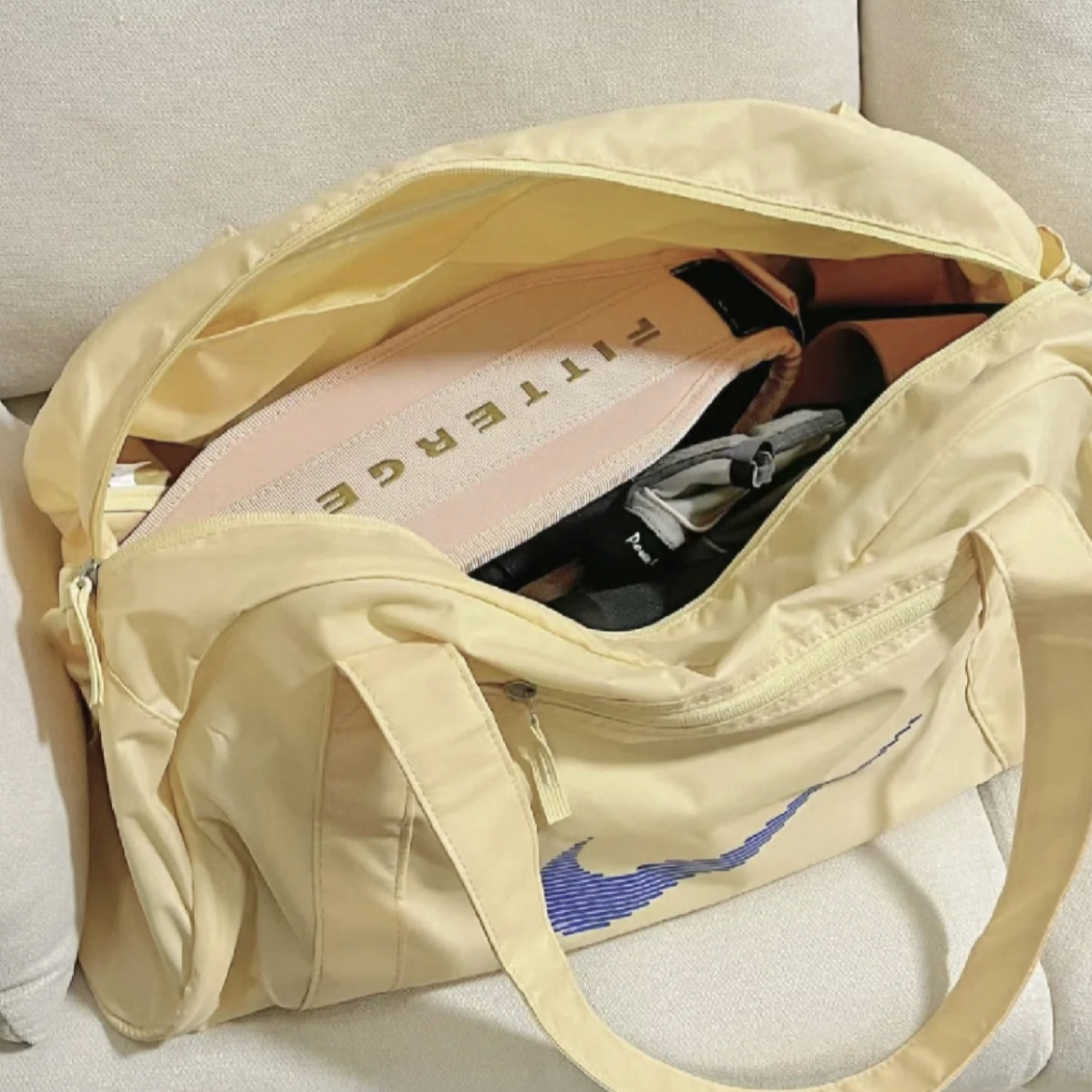 本篇笔记关联了Nike Gym Club系列 中号 品牌标志印花大容量运动休闲拉链开合口袋简约提手单肩斜挎行李包健身包 淡香草黄 DR6974-294等商品,为用户提供真实的使用体验和购买参考。