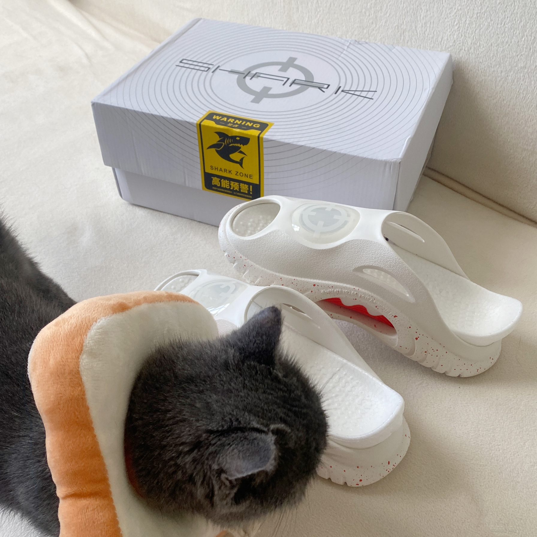 准者和识货联名出了专属配色的鲨鱼拖 作为超爱穿拖鞋的广东妹子怎么可以不入手 鞋型非常修脚 颜色也很秀气 比较百搭 还加入了氢气垫的黑科技 踩屎感的体验~ 运动过后换上他简直不要太舒服!