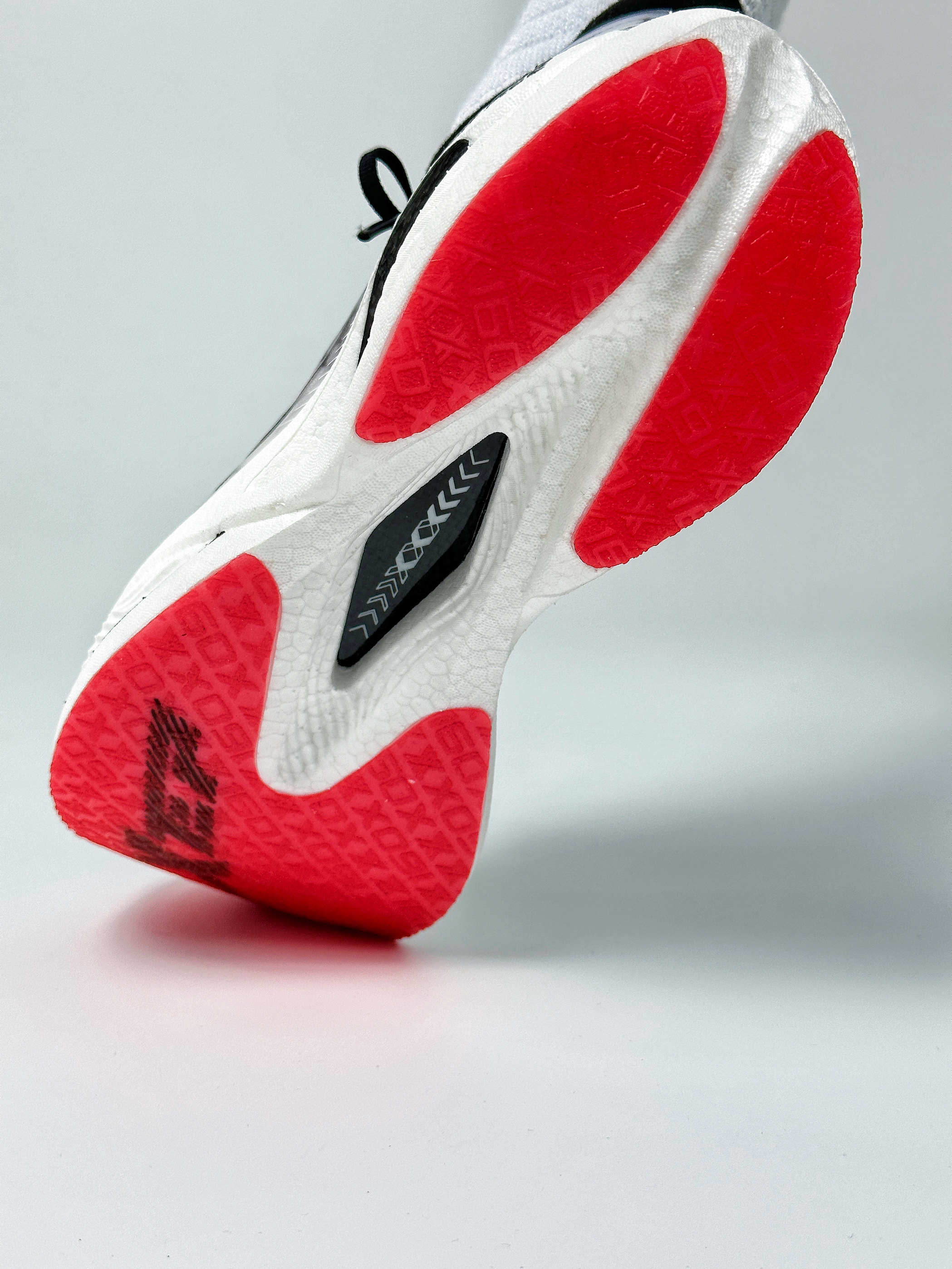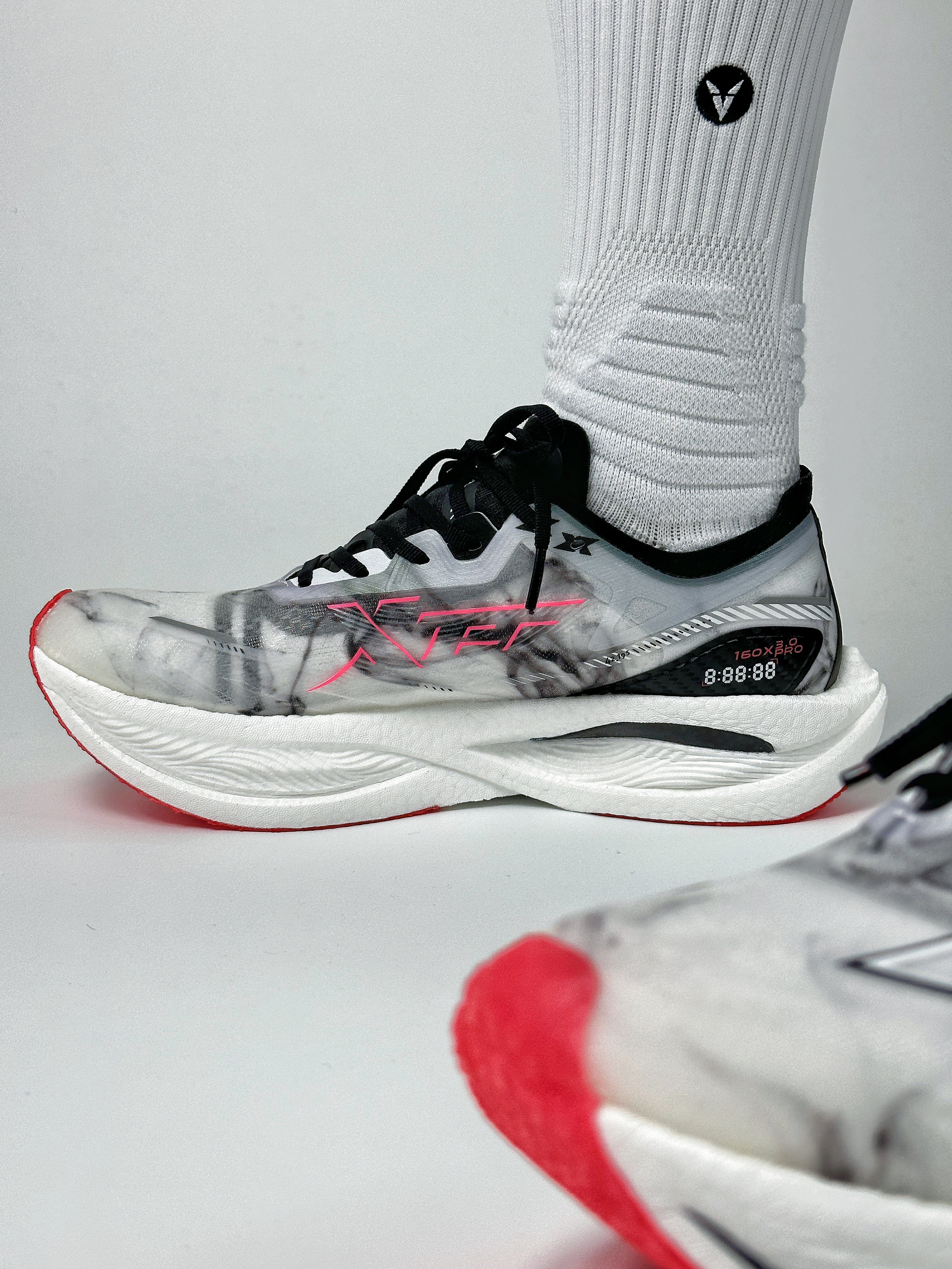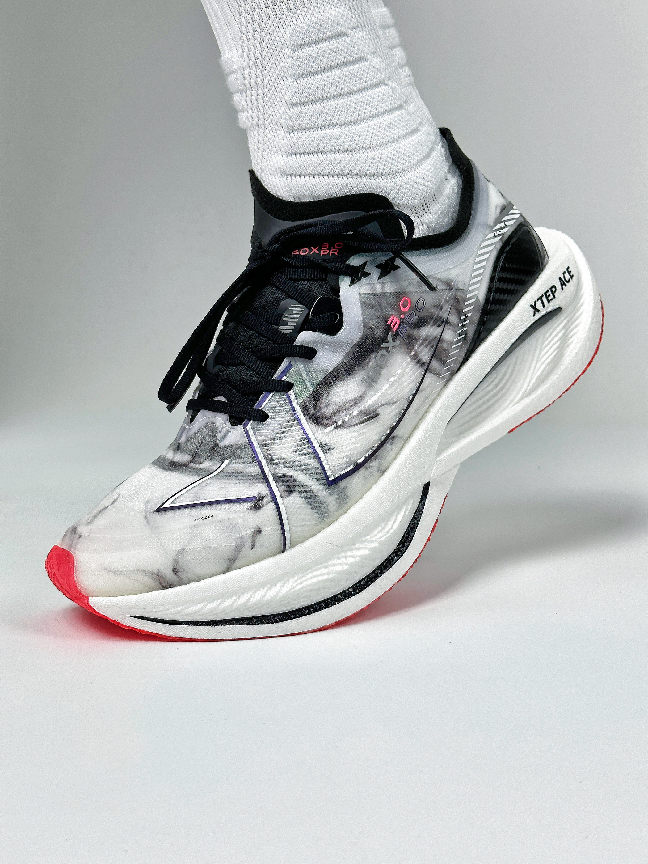 鞋子整体采用黑白为主色调搭配着一点红色点缀,呈现的是一个水墨画的设计风格,颜值非常的耐看,身为高端跑鞋,采用的配置已经是拉到最满了,适合脚踝力量足够有基础的选手,新手不推荐。