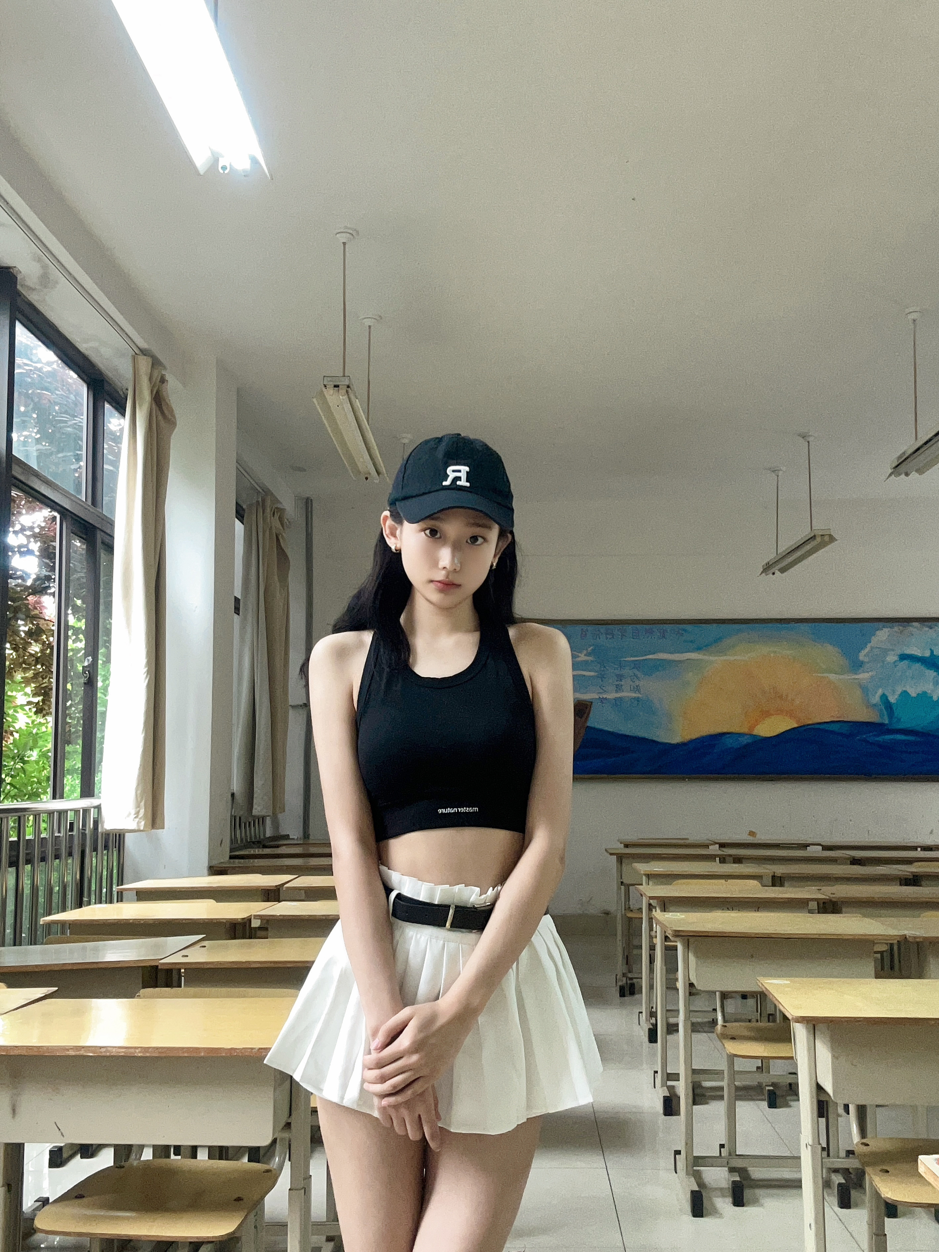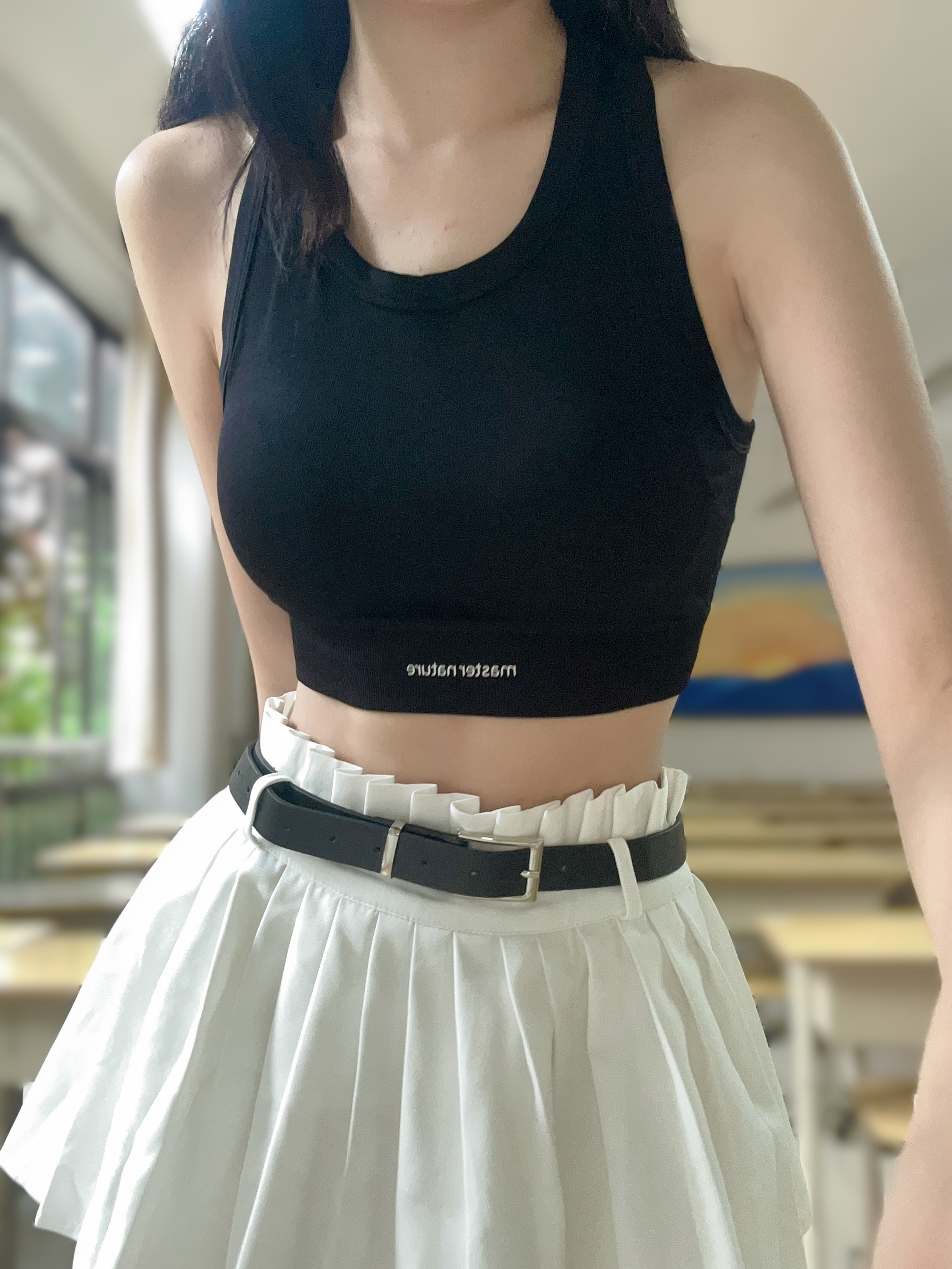 早八日常女大学生穿搭 真的可以🔒死背心小短裙 自带胸垫 穿着超级无敌舒服