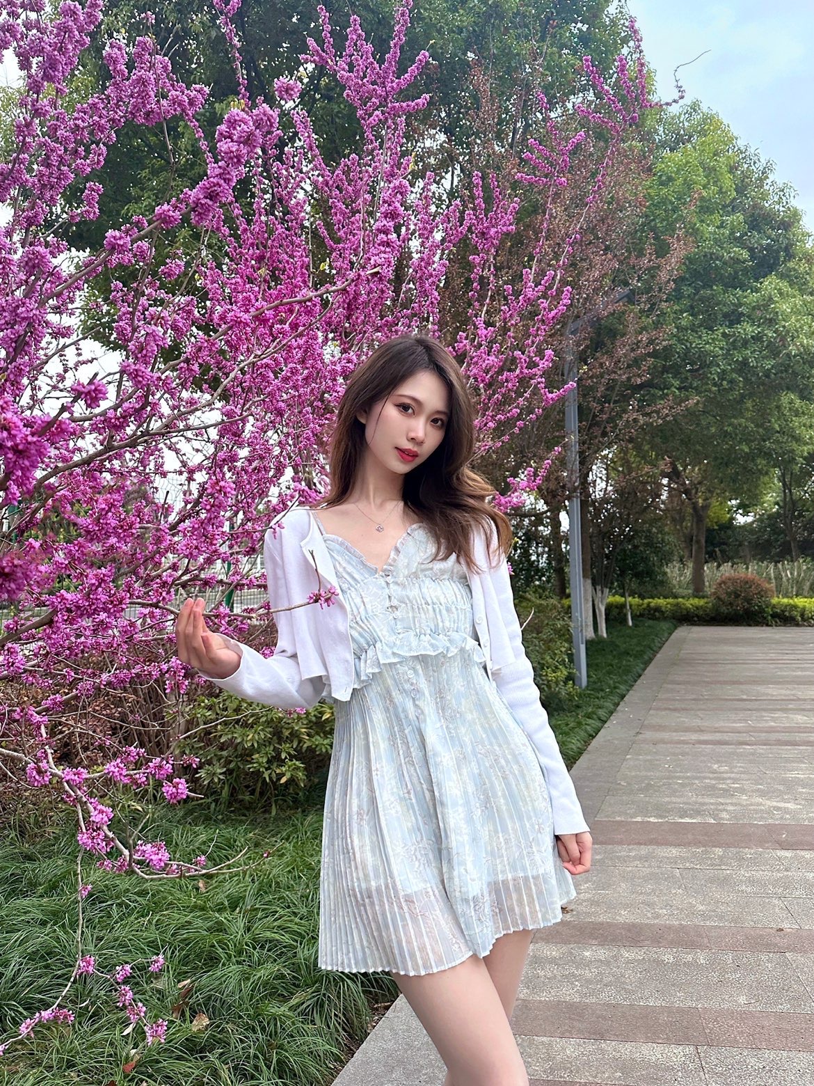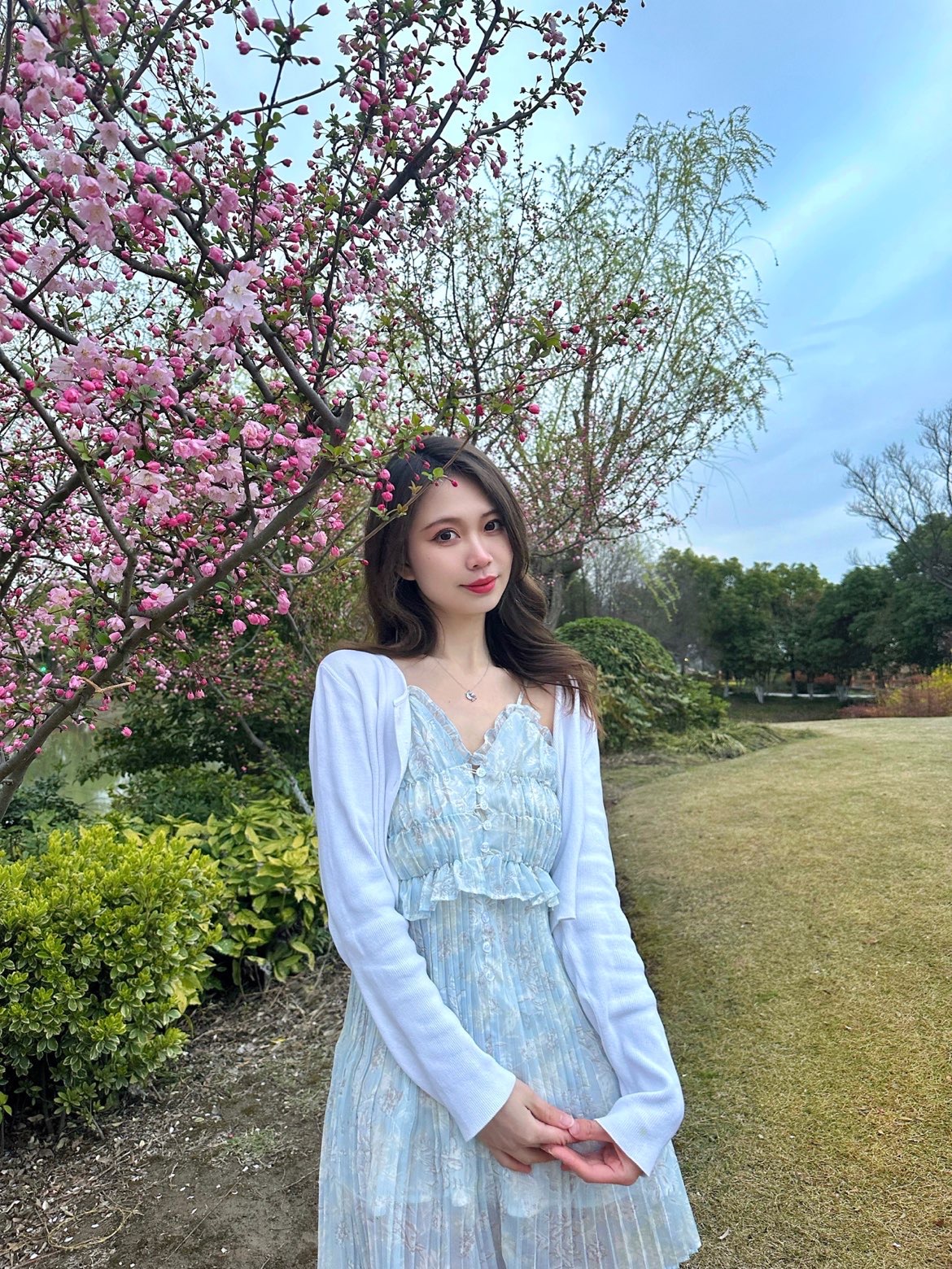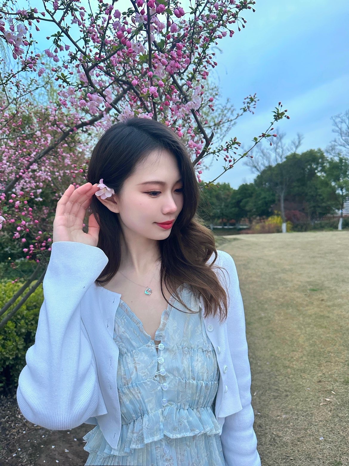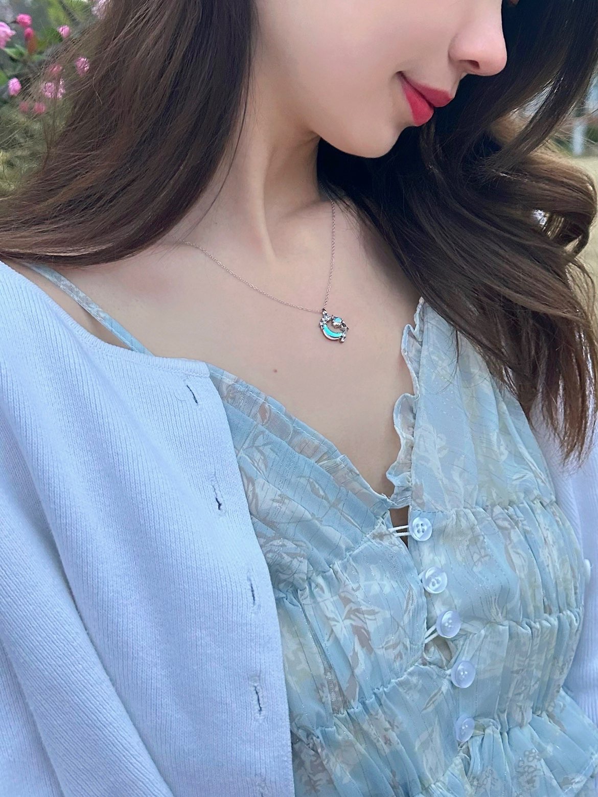 蓝色真的好治愈,春夏一定要拥有一条蓝色系小裙几✨ 荷叶边雪纺连衣裙真的好温柔~清新舒适的感觉让人看着心情都会变好💕随意搭配一件短款外套,很适合忽冷忽热的上海春日🍃 搭配了一条和项链同色系的琉璃蓝项链📿来自银千惠,琉璃石系列太美了!bling bling的闪钻连结星星和月亮☪️,看起来璀璨夺目,琉璃通透亮丽在光下泛起蓝色光芒,梦幻绚丽🧚♀️纤细一根点缀在脖颈间,亮眼又吸睛,气质up! #春季穿...