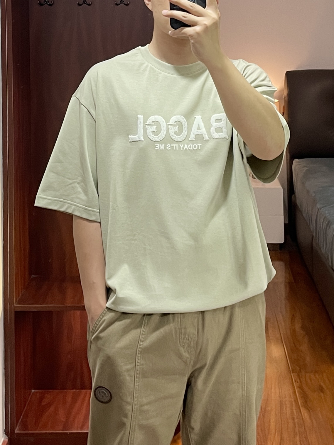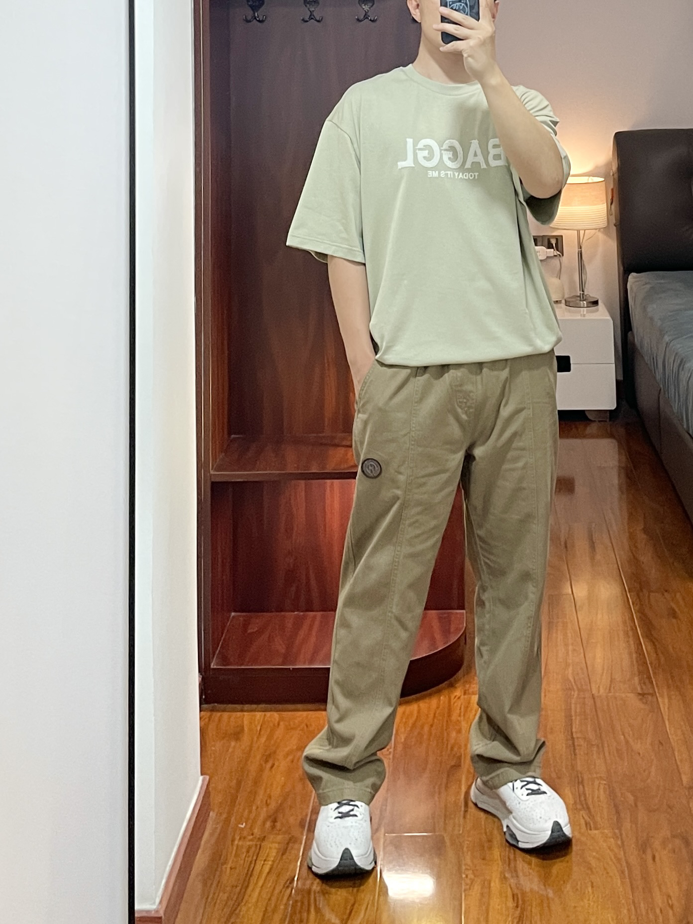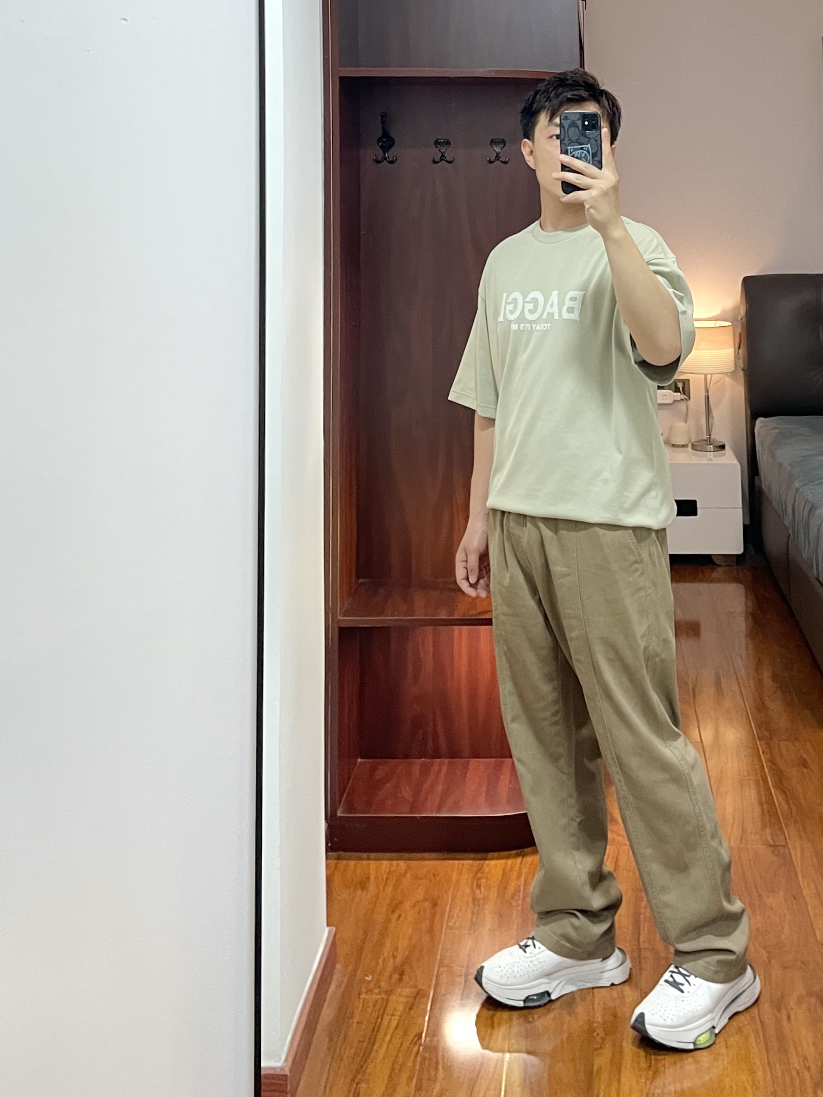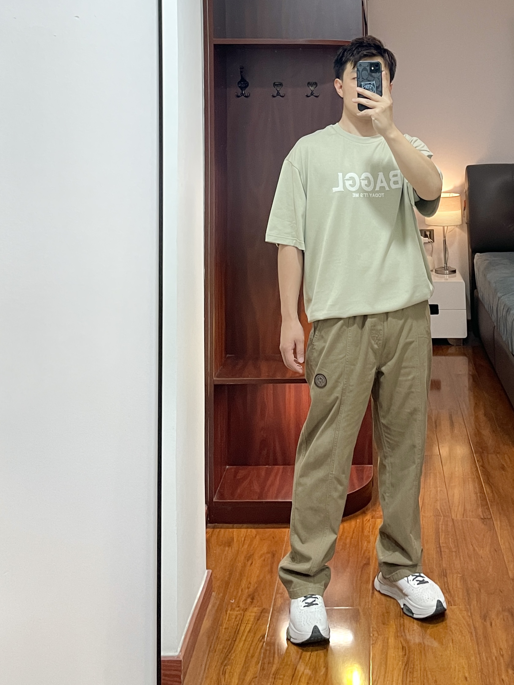 170cm/67kg 分享一个普通人的穿搭 - 手绘印花字母的低饱和色系短袖 搭配简单的宽松休闲裤舒适简约 低饱和色的夏季穿搭更有清凉感 - 👕:BAGGL 短袖 👖:宽松休闲裤 👟:Nike zoom type