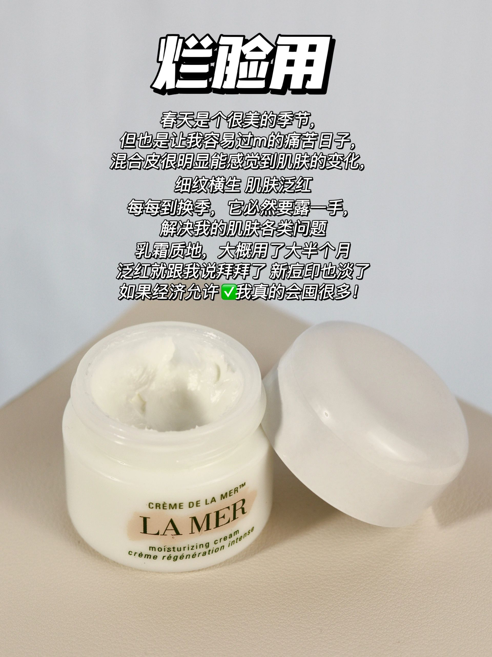 - 我挑选出来的都是自用感觉不错的面霜, 虽然价格不是很贵,但也不是白菜价🥬 所以对于面霜的选择,一定要选择适合自己的。 不要再花冤枉钱啦! 选择用起来对自己确实是有好的提升! 我的肤质:混合皮,时干时油。 我对护肤也是做了很多尝试,这几款闭眼不踩雷💣 ⚪️雅诗兰黛·胶原霜 ⚪️lamer·海蓝之谜面霜 ⚪️香奈儿·山茶花面霜 ⚪️娇韵诗·弹簧霜 详细的使用感受都放在了图片上,姐妹们可以康康...