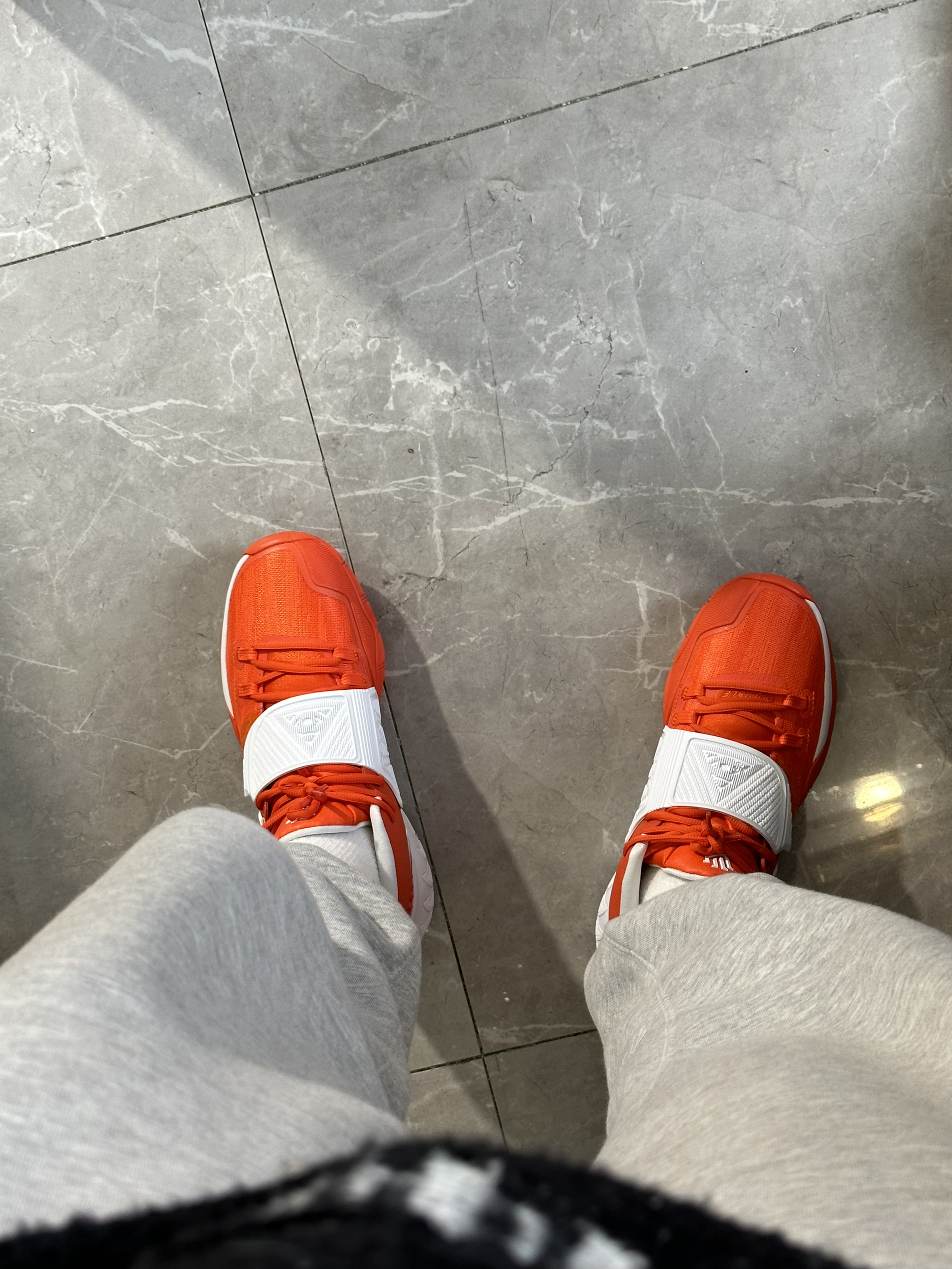 欧文6tb橙色,配色非常的好看,性能也是十分出色! 鞋子也是窄楦,宽脚高脚背要大半码! 包裹别提有多出色了,魔术贴的设计十分贴合脚背! 实战性能更是不用多说,脚感澎湃!