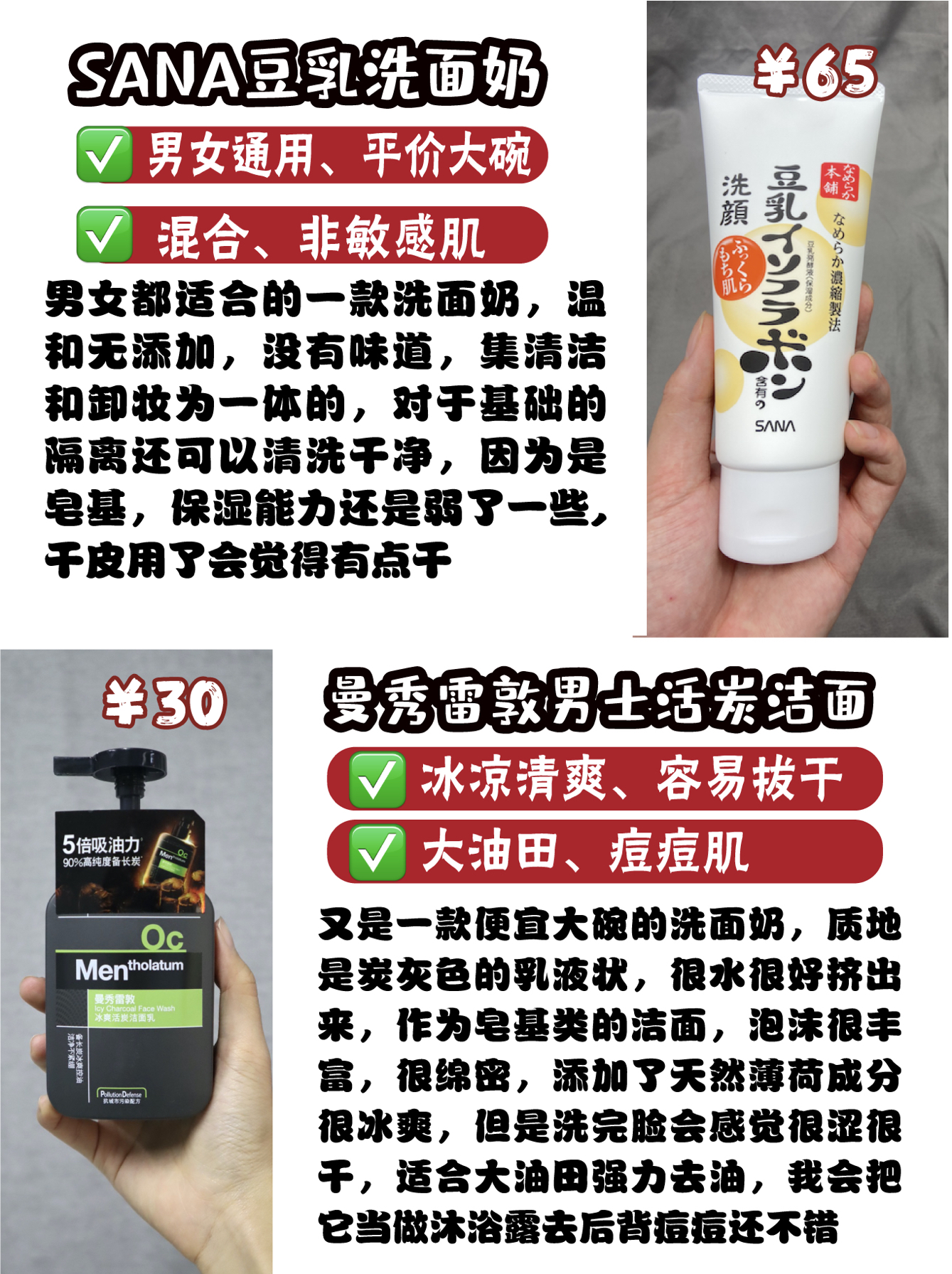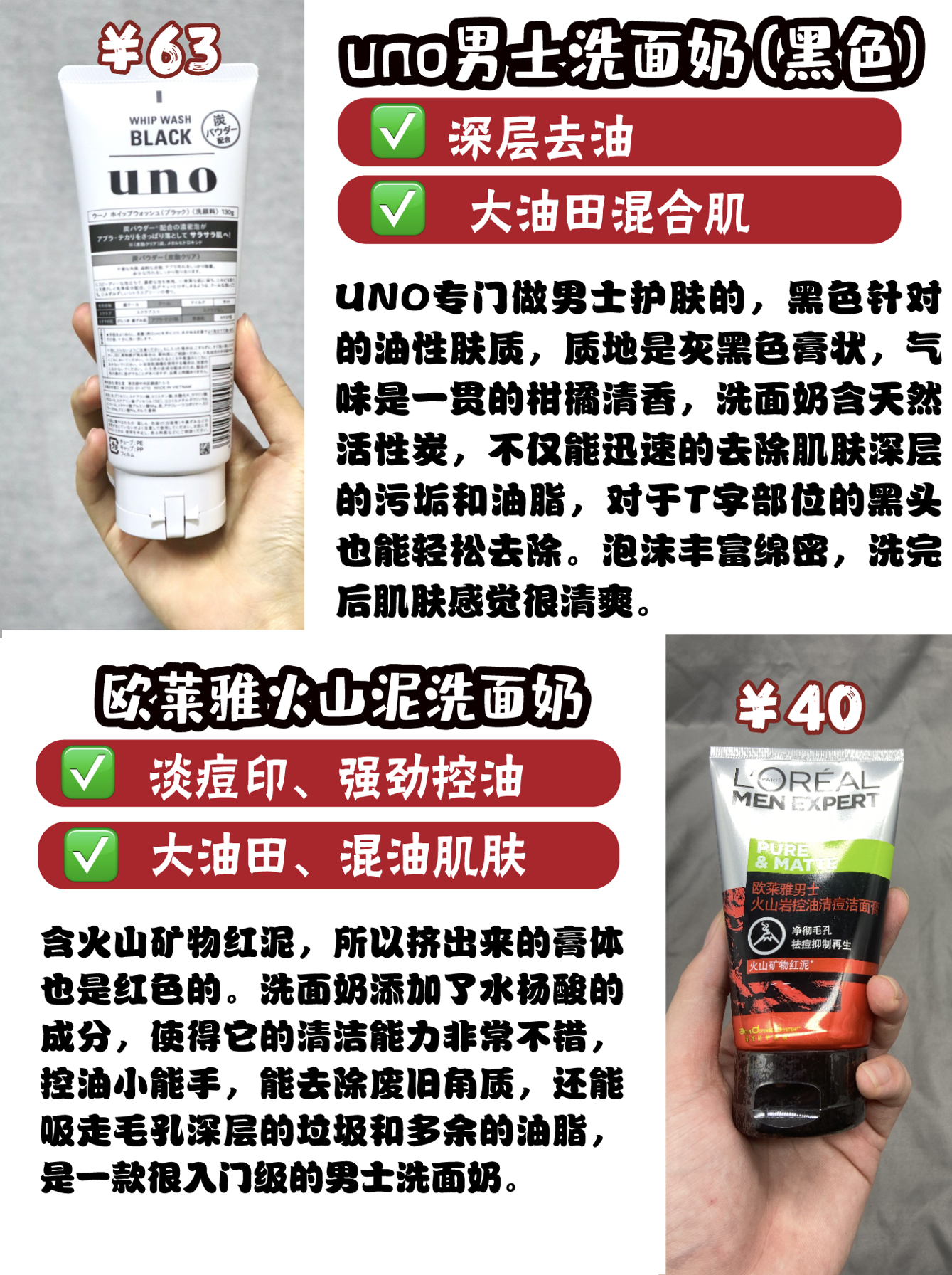 本篇笔记关联了【男士专用】UNO/吾诺 洗面奶 清爽控油祛痘黑头 炭活净颜洁面膏、【男士专用】Mentholatum/曼秀雷敦 抗痘控油洗面奶 保湿补水淡化痘印抗黑头 抗油抗痘、Fancl 男士泡沫洁面 清洁等商品,为用户提供真实的使用体验和购买参考。