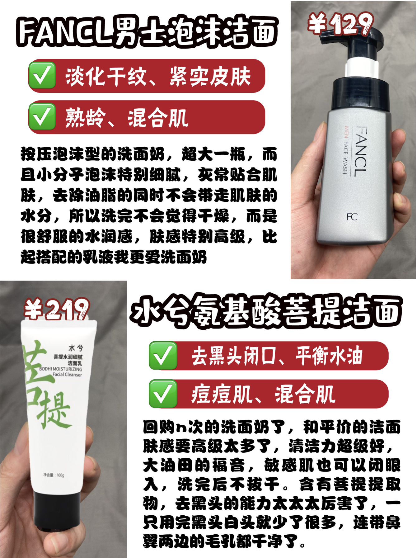 还在盲选男士洗面奶的兄弟👬看过来 整理了一波我用过的去豆控油,清洁的男士洗面奶! 挑一个适合你肤质的吧#男士洁面乳分享 #男士洗面奶分享 #男士洗面奶 #水兮菩提氨基酸洁面