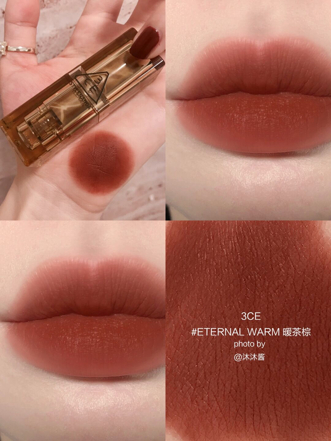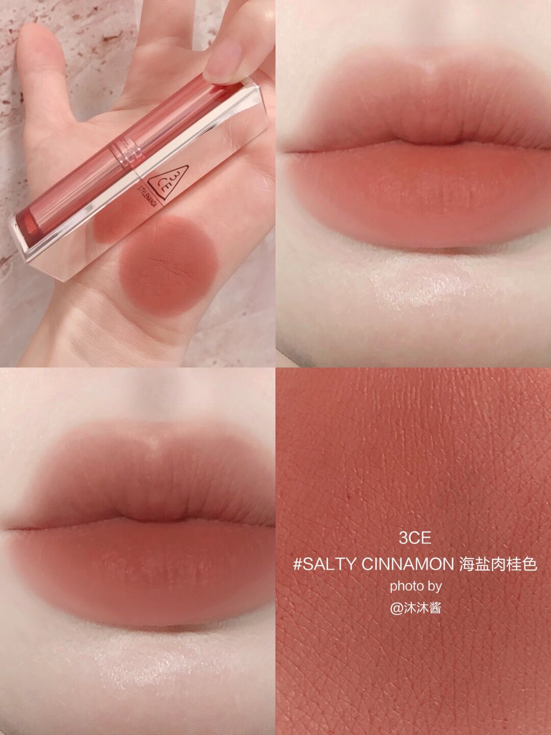本篇笔记关联了3CE/三熹玉 柔焦哑光柔雾管口红 显白雾面丝绒 4g 海盐肉桂色SALTY CINNAMON等商品,为用户提供真实的使用体验和购买参考。
