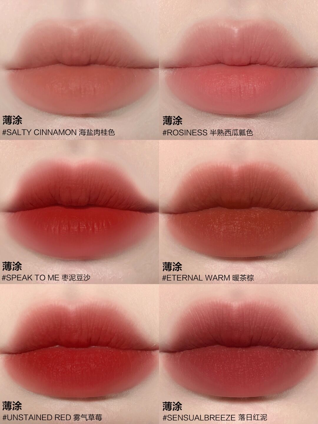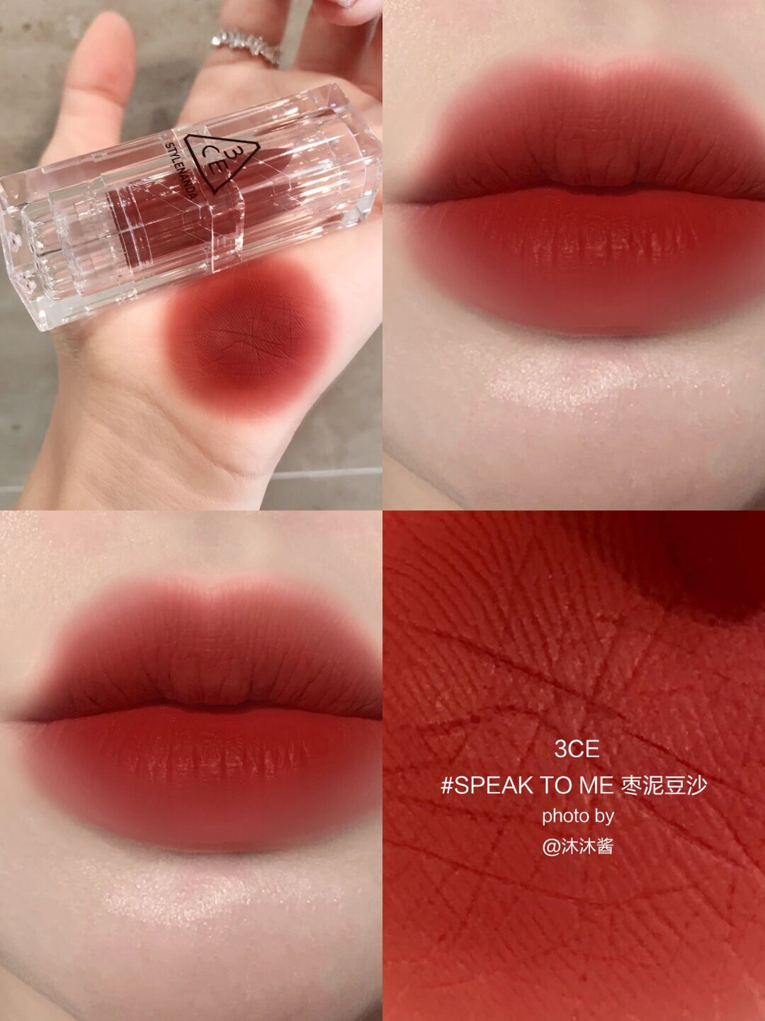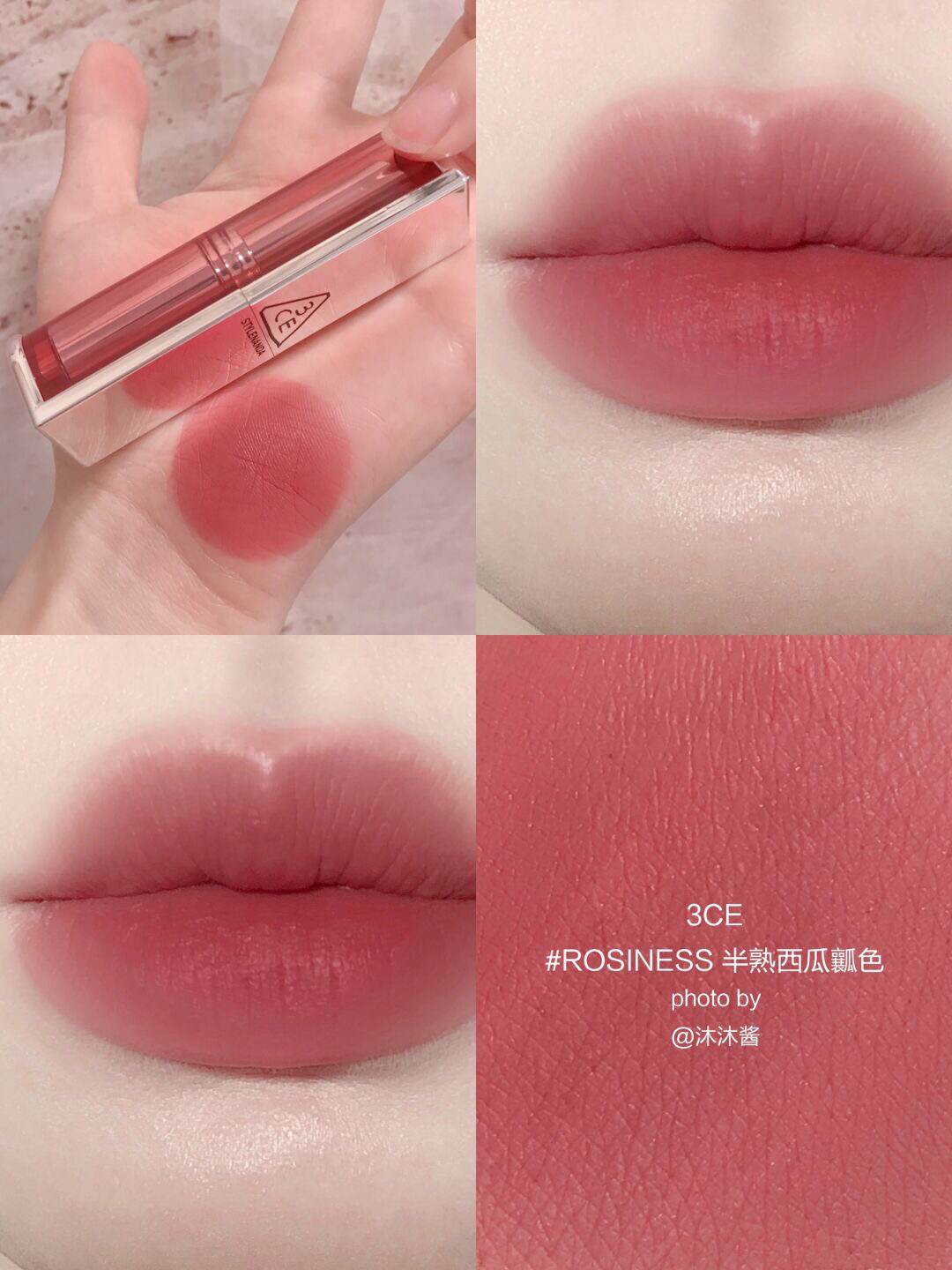 为3CE的纯欲文学低头! 夏日清透口红色合集✨每一支都美到心尖尖~ ▫️SALTY CINNAMON 海盐肉桂色,低饱和裸杏色,温柔清冷不挑人,素颜超爱! ▫️ROSINESS 半熟西瓜瓤色,瓜瓤牛奶粉,清纯甜嫩少女色,超初恋感! ▫️SPEAK TO ME枣泥豆沙,洋气枣泥红,温柔又大方很显高级,日常超可! ▫️SENSUAL BREEZE落日红泥,冷调陶土红棕,减龄显气质,特千金感! ▫️UN...