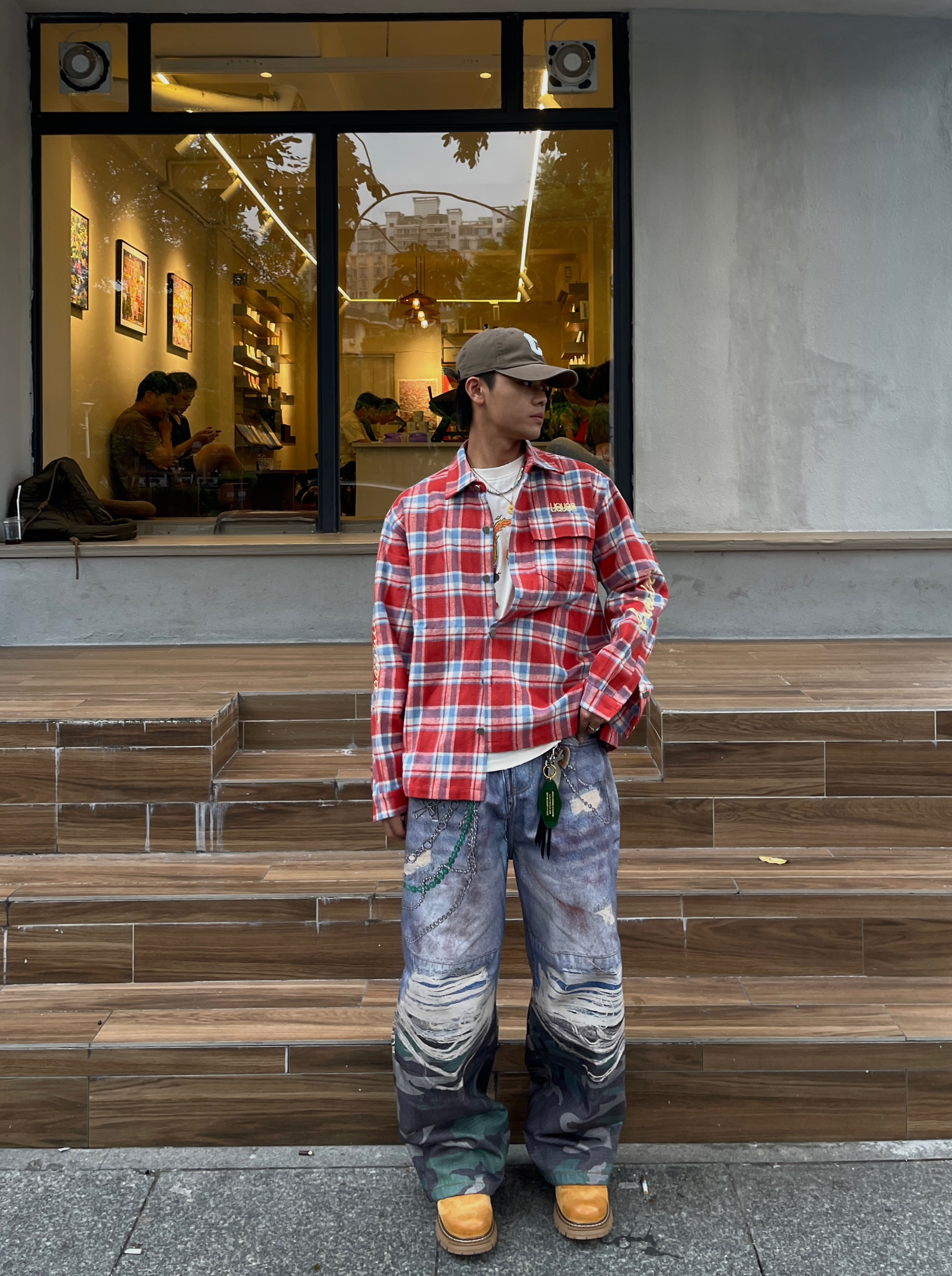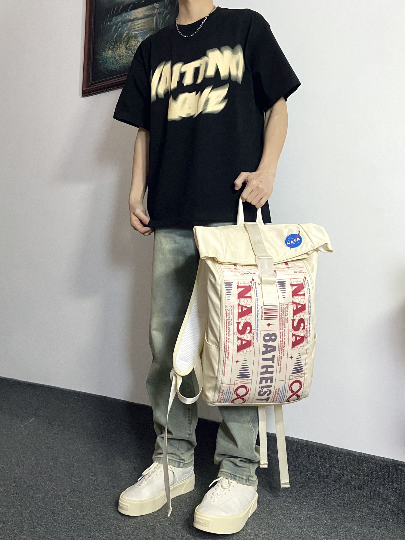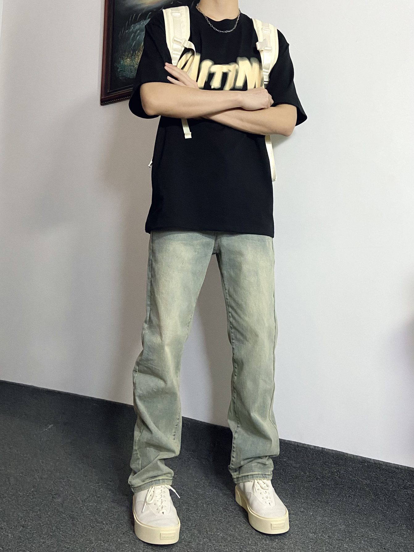 🙋♂️身高|体重:181|130 今日份Ootd: 眩晕Logo设计黑色潮酷T恤,绝了! 裤子选择了显腿长的泥黄浅色牛仔裤✨ 修身显腿长确实爱了🉑️ 这套穿搭简直氛围感拉满😎 搭配上这款潮酷的国潮双肩包太帅咯! 分享不同好看的穿搭,感谢支持❤️