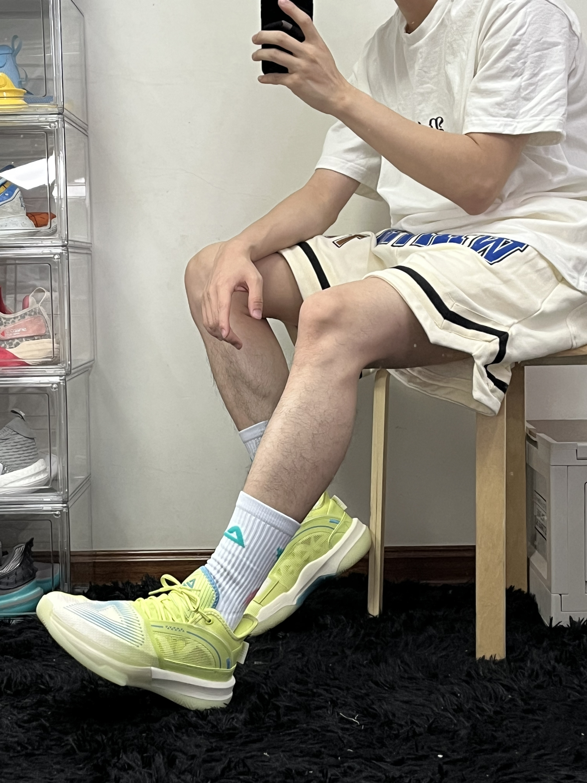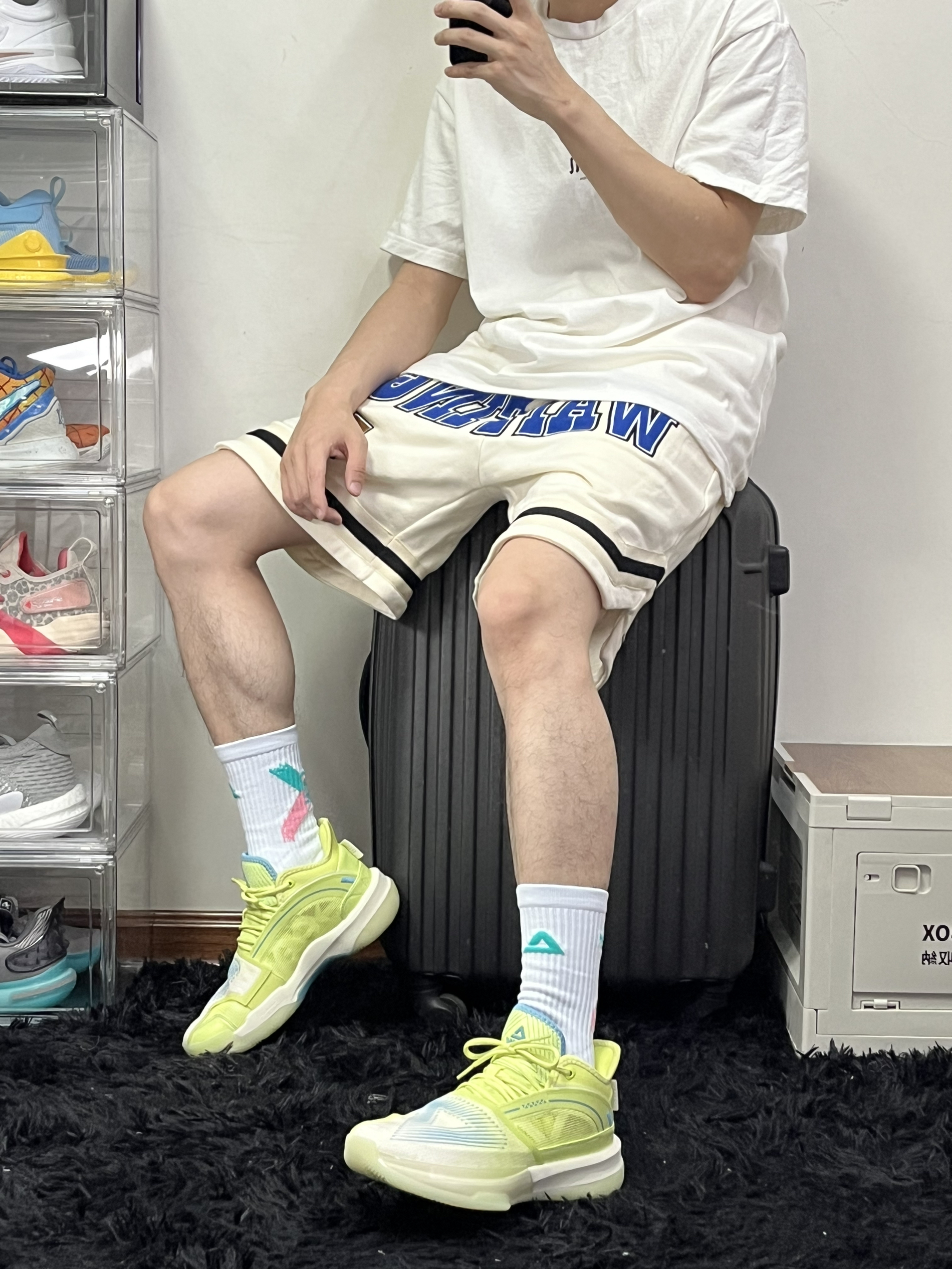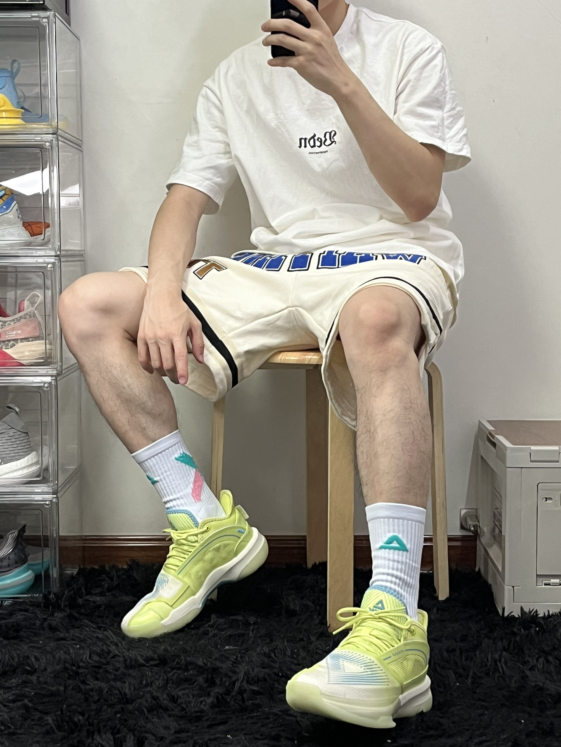 这双绿色的大三角就特别适合夏天穿 夜光的大底 到了晚上你还是最靓的仔 球鞋包裹性特别强 尺码偏大一码需要买小一码 中底的态极超级软弹👍 三开的价格打外场还是很香的