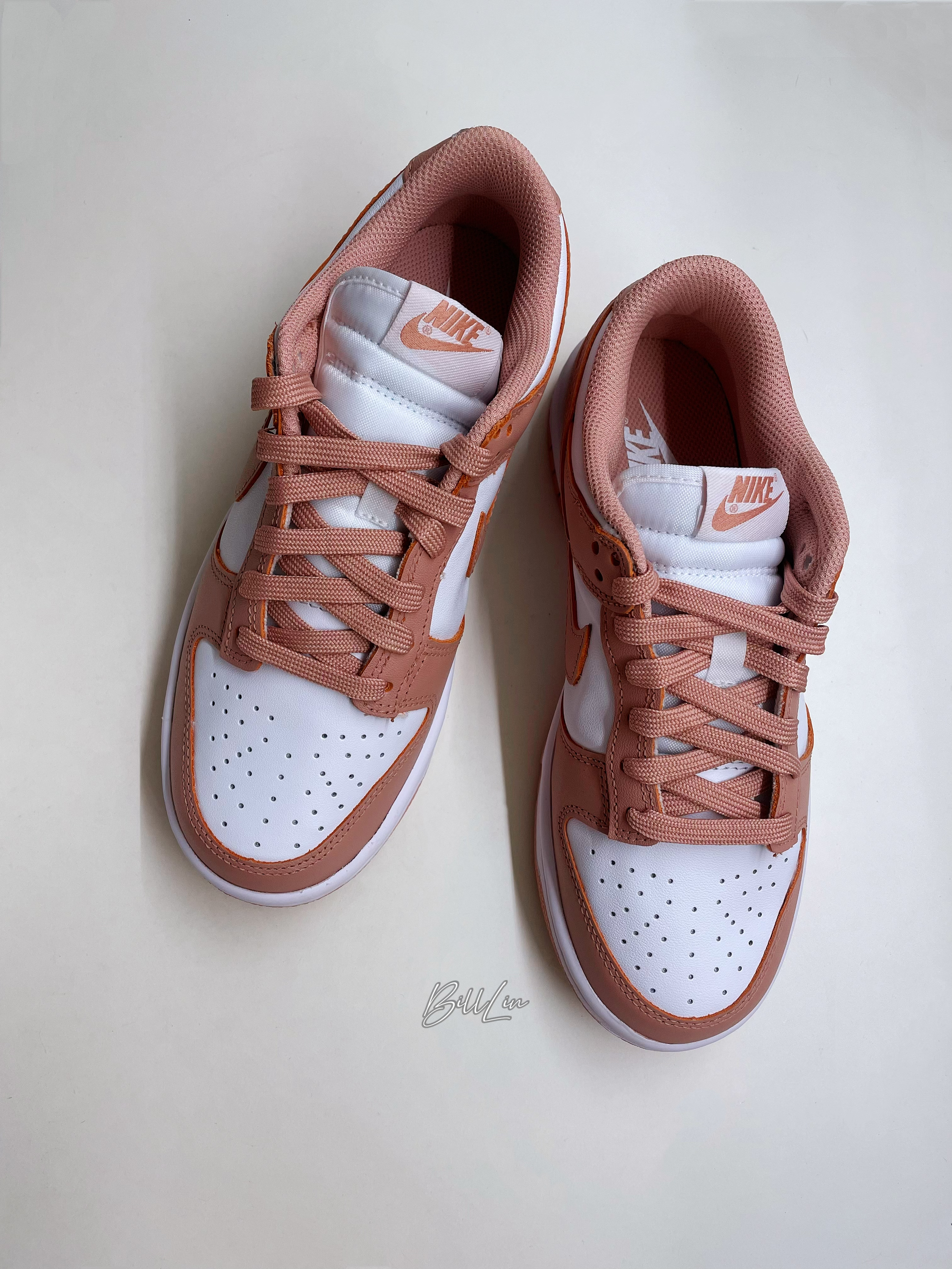 👟:Nike Dunk low Rose Whisper 玫瑰低语 近期颜值最高的女神必备dunk。 经典dunk低帮鞋型,搭配玫瑰金配色,气质拿捏。可御姐可嫩妹,各种风格都可以驾驭。 整体皮质质感还不错,材质都是经典的光面皮,走线做工马马虎虎但无伤大雅,毕竟钩子的品控质量下降不是一天两天了。 最后,兄弟们,趁着618的各种优惠,给自己的另一半冲一双吧!