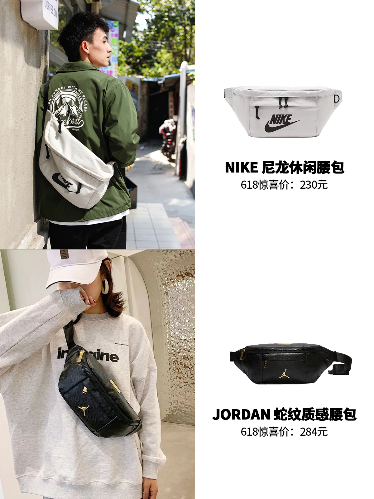 618就快来了,小伙伴们准备好购物清单了吗?今天推荐的几款运动背包无论从颜值还是实用性来说都值得加入你的清单哦,赶紧来康康叭~ 🏷【王一博同款】Nike Tech Pack 尼龙纯色休闲腰包 💰识货价:230元 这款腰包巨好看!!!白色最为百搭,穿休闲、运动风格搭配这款腰包,真的不要太有型了!上身搭配拍照巨好看,搭配它就是街上最靓的仔。 (分享自识货@Restick海峰) 🏷【爆款推荐】Ni...