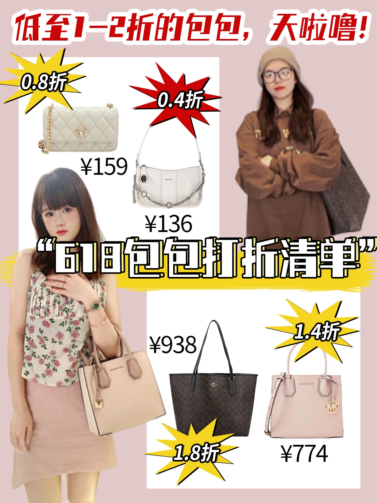 夏季时髦出街,包包必不可少!无论是百搭通勤款还是时髦个性款,都是必入的经典单品~这篇笔记为大家精选618超低折扣包包,替你省下“一个亿”,还不赶紧收入囊中~ 【吴谨言同款】Coach Teri 24 小号 经典老花满印腋下包麻将包 💰识货价:1298元 米白色很简约又好搭衣服,包上的老花满印,独具特色。质感更是摸着细腻平滑,真的让我爱不释手。小巧精致,日常必备品足以放进。 JANE KLAIN...