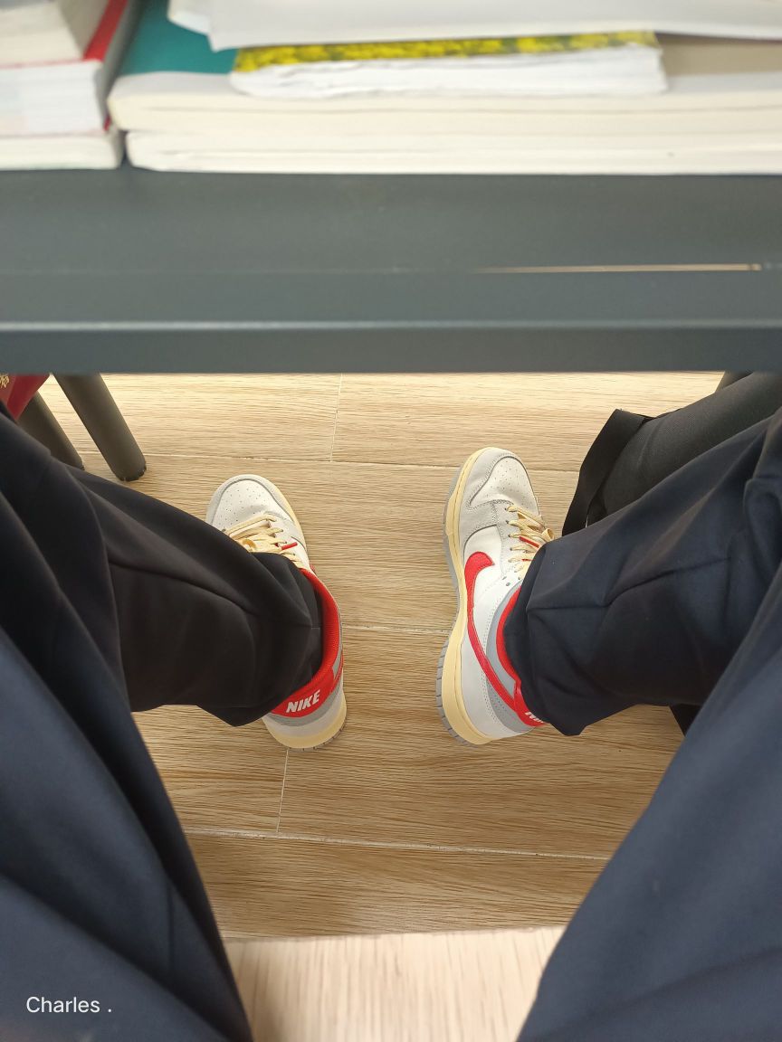 寄到学校,刚拆开箱子还在端详,突然一个同学冲进来一顿爆炸式的夸好看,然后不知不觉剪掉了防伪扣,其实我个人感觉很好看,但是也有人说像回力鞋哈哈哈,我是555拿下 🧍♂️穿搭简介:复古校园 (鞋款上脚感受,穿搭场景分享,风格分享) 👟球鞋:dunk 👕上衣: 👖裤子: