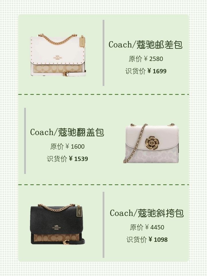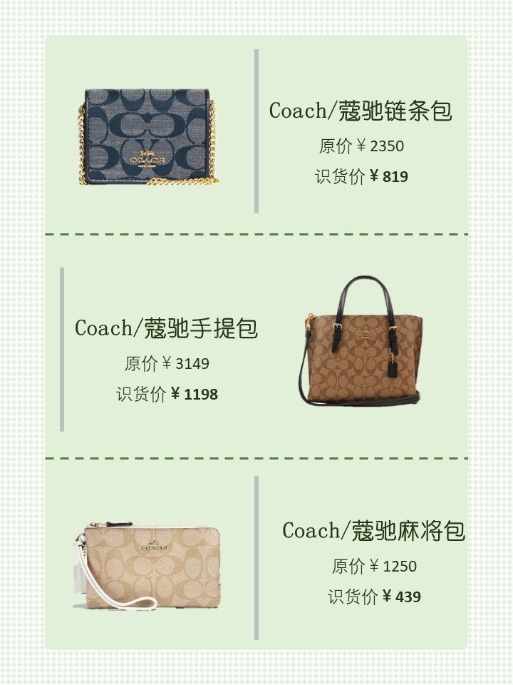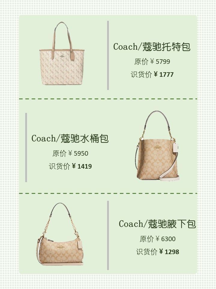 最近想买蔻驰包包的姐妹看我这篇就够啦 - 1⃣️品牌名称:Coach Reversible City Tote 33 大号 识货售价:1777元 推荐理由:包包是米白色的,很简约大方的颜色,超级百搭的,搭配大衣,针织衫都很好看,有种知性美,包包的容量是很可的 (分享自识货博主@你亲口说我养你呀) - 2⃣️品牌名称:Coach Mollie 22 小号 识货售价:1419元 推...