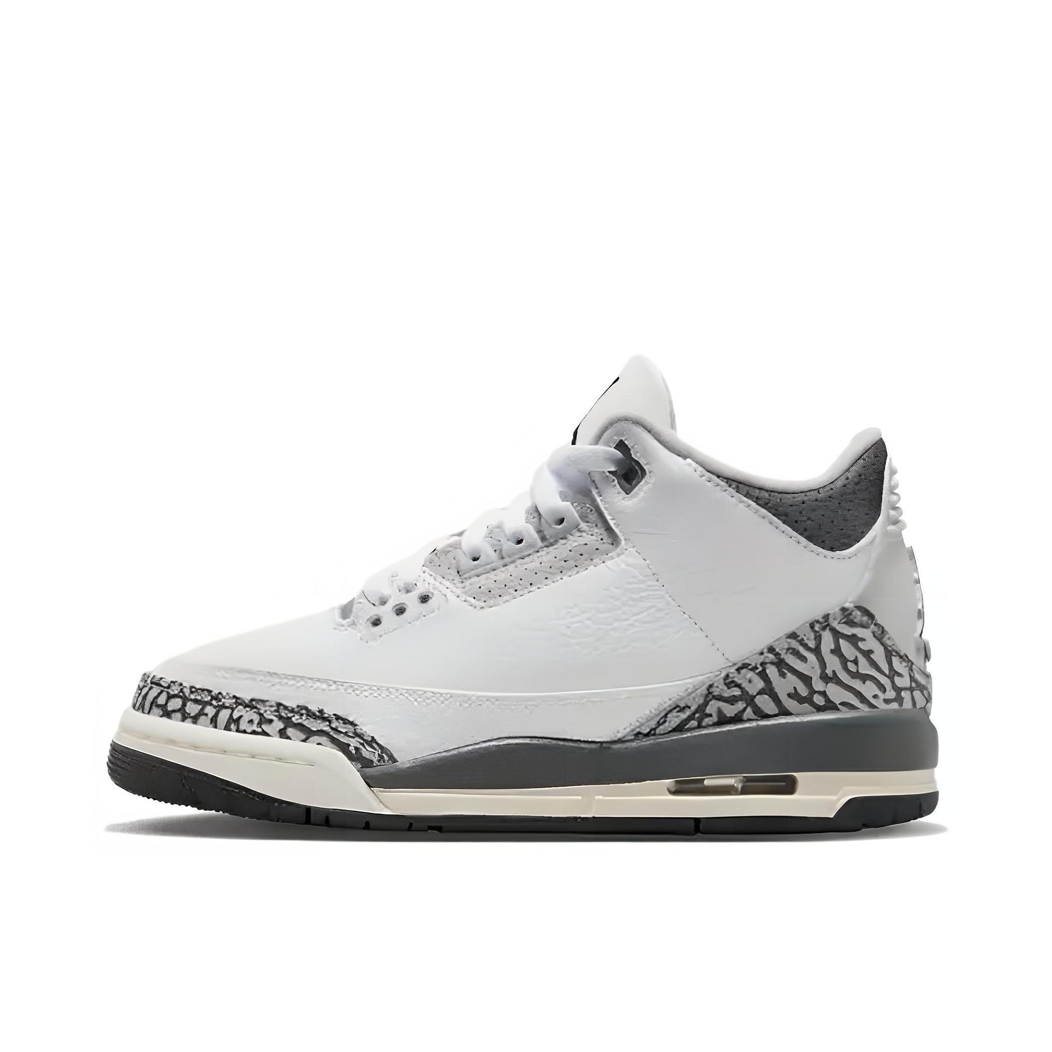 本篇笔记关联了Air Jordan 3 运动休闲鞋 潮流复古抓地支撑缓震合成革圆头 GS/白色/灰色等商品,为用户提供真实的使用体验和购买参考。