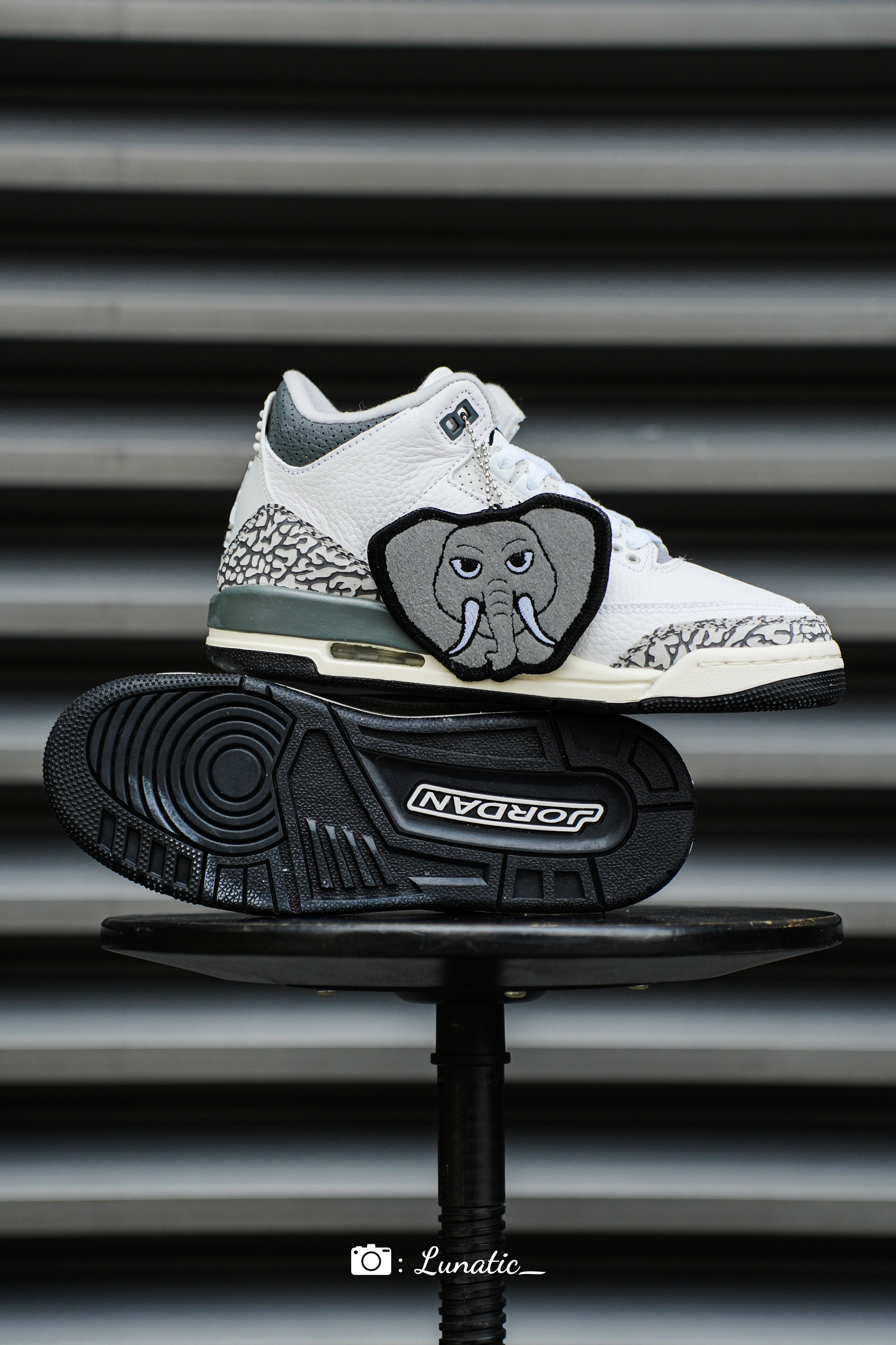 随着儿童节的到来,这双颇具童心鞋款AJ3"真大象"也迎来发售! 爆裂纹作为Jordan鞋款中最具代表性的元素,不仅在乔丹正代上多次出现,就连Nike的众多鞋子中均有展示,比如一代神鞋Supreme x Dunk。此次的AJ3也是延续了传统的纹路设计,并且似乎用大象主题来实锤了"大象纹"的称呼~ 然而此次最亮眼的元素,无疑就是随鞋附赠的大象卡通挂链了,不仅能当装饰品挂在鞋侧,单拿下来甚至可以贴在鞋面...