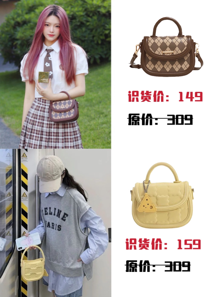 🍧toutou 粉色印花饼干斜挎包 💰识货价:159 天啦嘛这只包真的戳到我惹~小饼干图案的印花设计,粉粉嫩嫩可可爱爱还搭配了一个小毛球的挂件,毛茸茸的感觉心都要被融化了,而且剑桥的包型背上就妥妥的时尚弄潮儿 (分享自博主:超爱草莓) 🍧toutou 简约百搭斜挎包 💰识货价:129 大小刚好!质量也杠杠的,感觉他家的包包喜欢就可以直接入了,一般都不会超过两百!绝对值!而且这个包包皮质不硬,但...