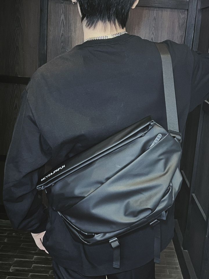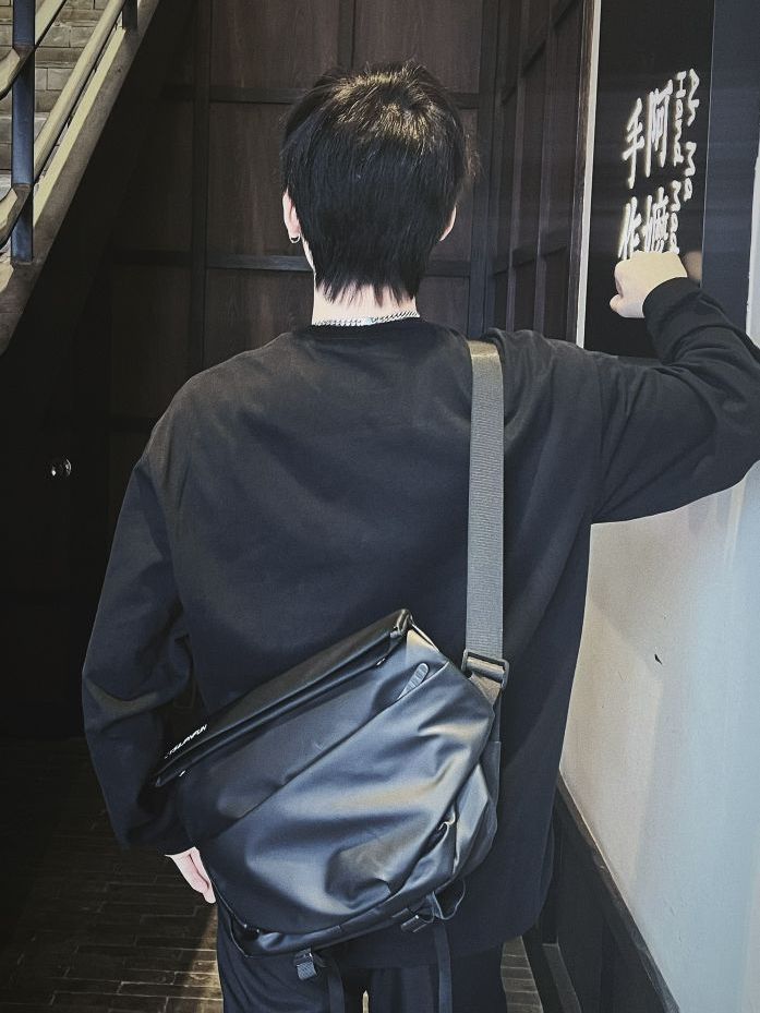 ✨分享自用的一款斜挎包 MCYS&JPN/木村耀司 大容量斜挎包 ✨哑光皮很有质感 牛筋布的材质防水又耐用 卡扣很有设计感很牢固又炫酷😎 背出门使劲折腾都不怕✌️ 非常适合日常穿搭、旅游🥂 ✨这款包设计感比较强,容量也比较大,可以放得下14寸笔记本,皮质的表面,既可以挡风亦可挡雨。骑行的适合也可以背,很稳当,风格比较酷炫。