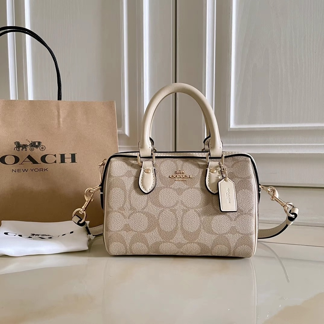 本篇笔记关联了Coach ROWAN 18 迷你 奥莱经典标志老花印花波士顿拉链开合涂层帆布皮革色块手提包水桶包单肩斜挎包 浅卡其等商品,为用户提供真实的使用体验和购买参考。