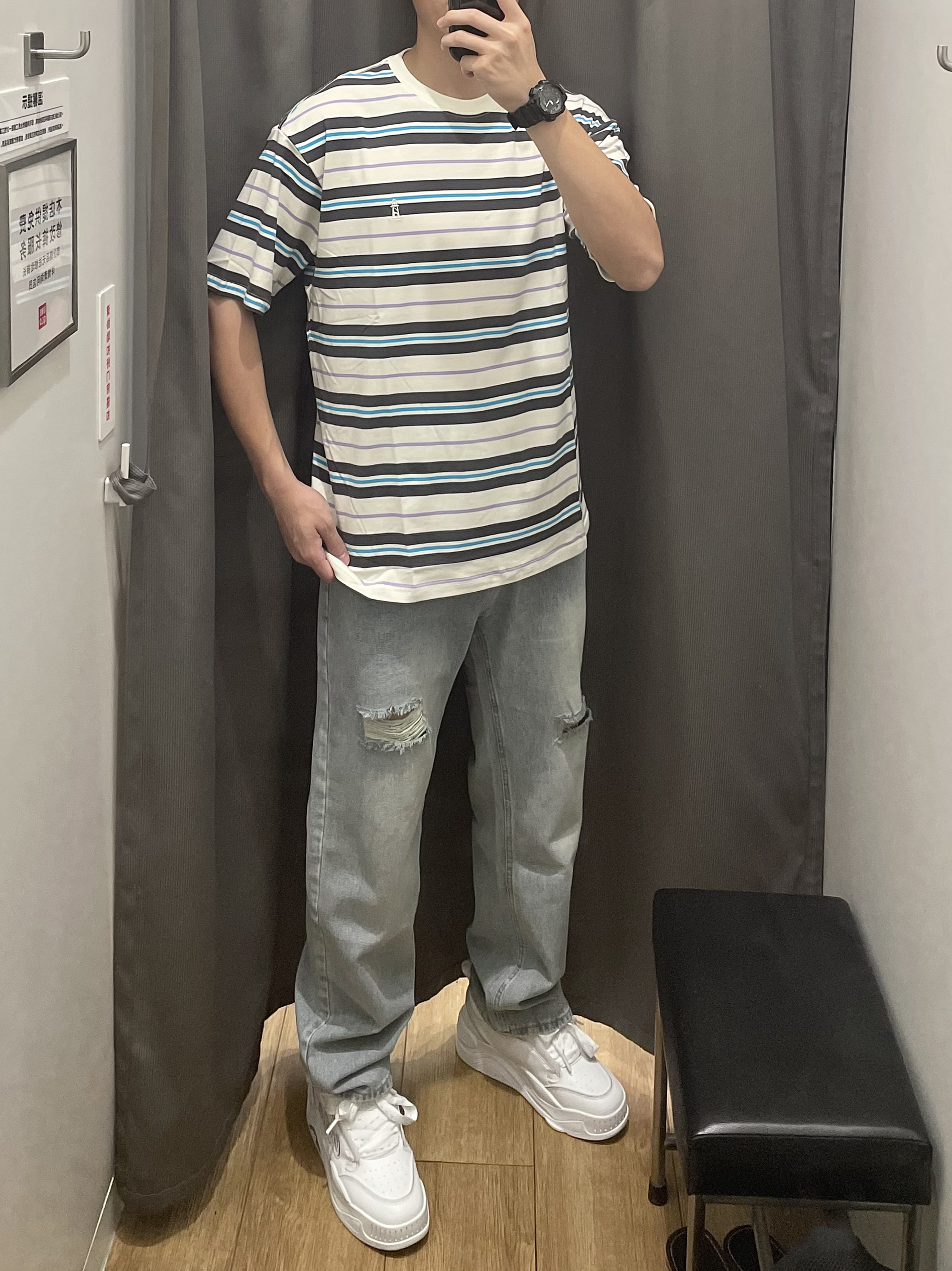 【男友穿搭|条纹短袖+破洞牛仔神裤 面包鞋yyds‼️】,由用户 O7huang 分享,来自湖北。这是一篇来自识货社区的真实用户分享笔记。