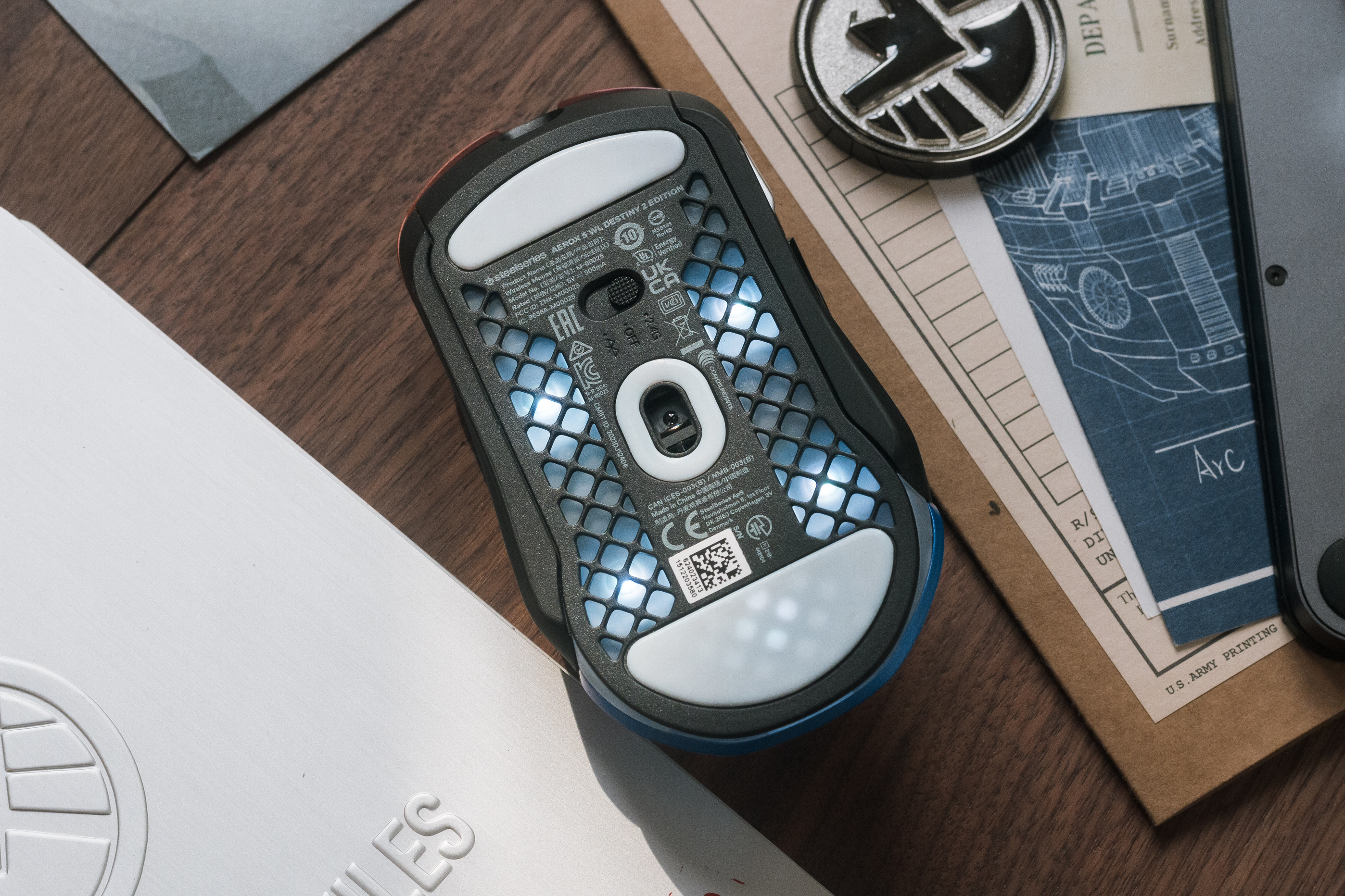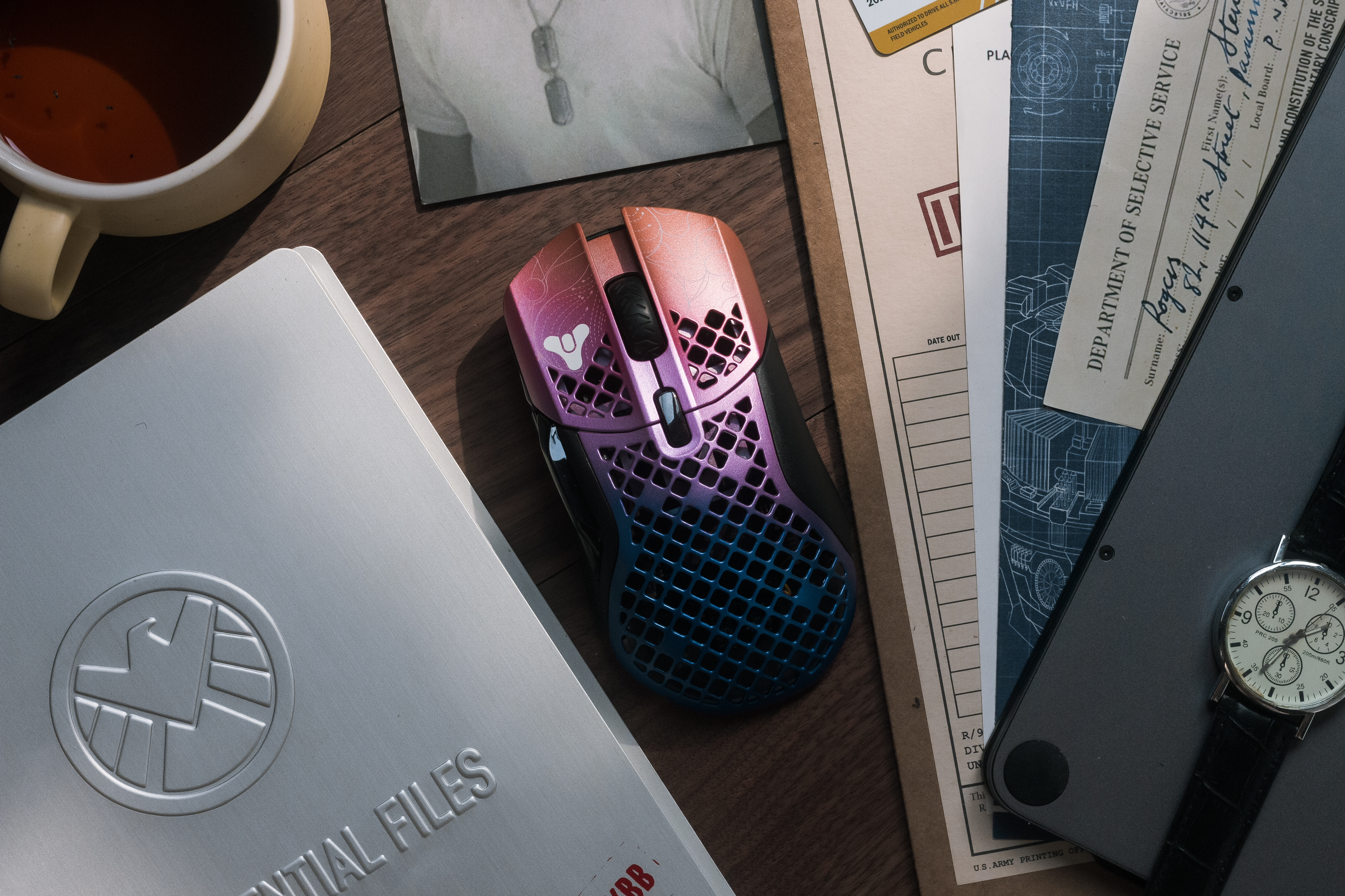 Aerox 5 命运2联名 超轻无线鼠标+QcK 棱光XL 命运2联名炫光鼠标垫共同营造了游戏大作的氛围感,两者的外观质感很棒,既有普通鼠标的基础功能,也隐藏着电竞鼠标的RGB炫酷,搭配外观视觉上的自定义功能,更是将这套组合的颜值提升了一个维度,并且Aerox 5的外观是服务于功能的,菱形孔洞镂空设计可以很好地减少手汗难以散发的问题。 而Quantum 2.0 双通道无线连接技术、TrueM...