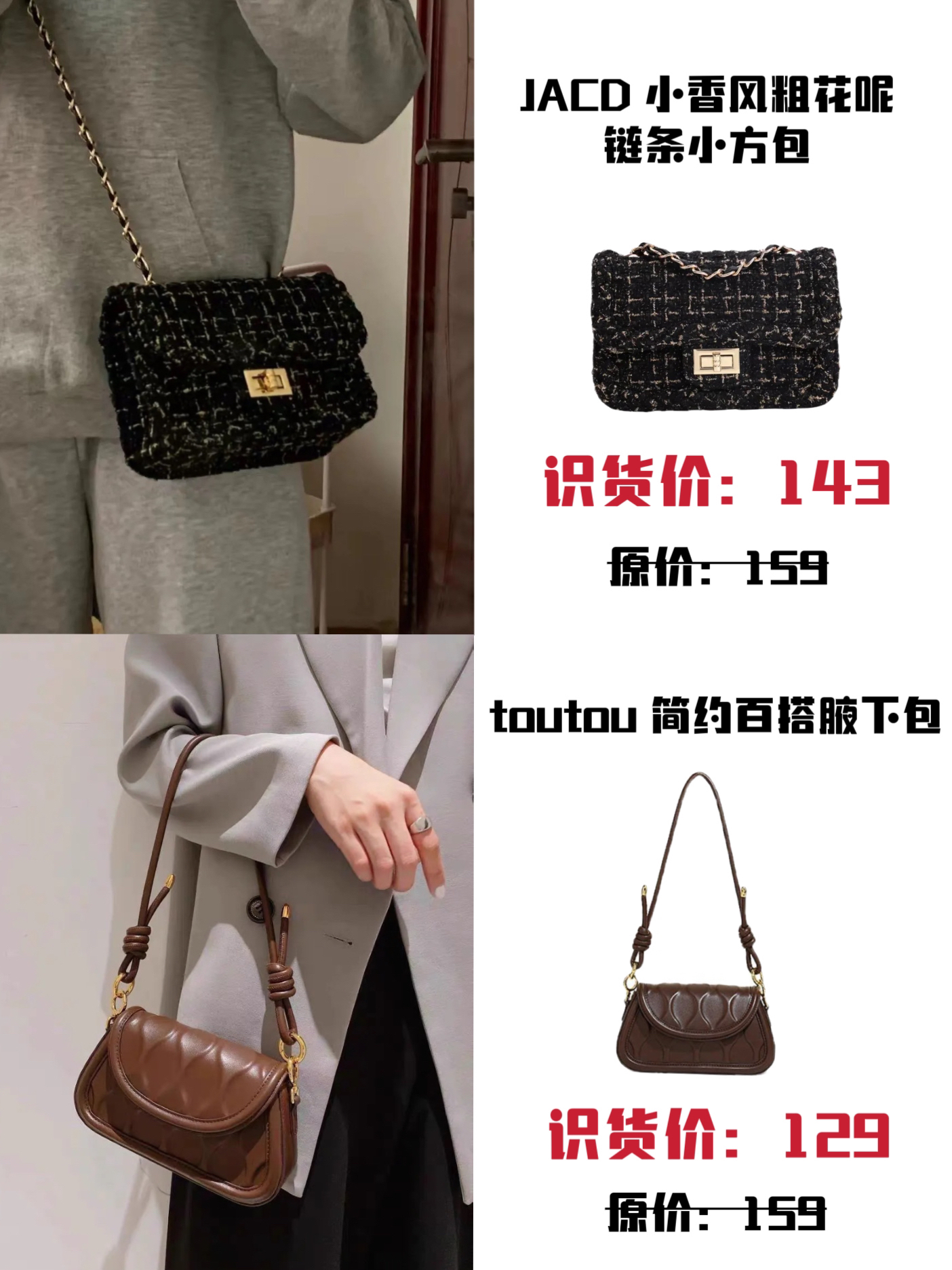 本篇笔记关联了JACD 原创设计呢子大容量小香风粗花呢链条小方包腋下单肩斜挎包 黑色、JANE KLAIN 纯色高级质感小众褶皱少女云朵腋下包斜挎包 米白色、VANWALK/出走 百搭法棍包斜挎单肩手提包 浅黄色等商品,为用户提供真实的使用体验和购买参考。