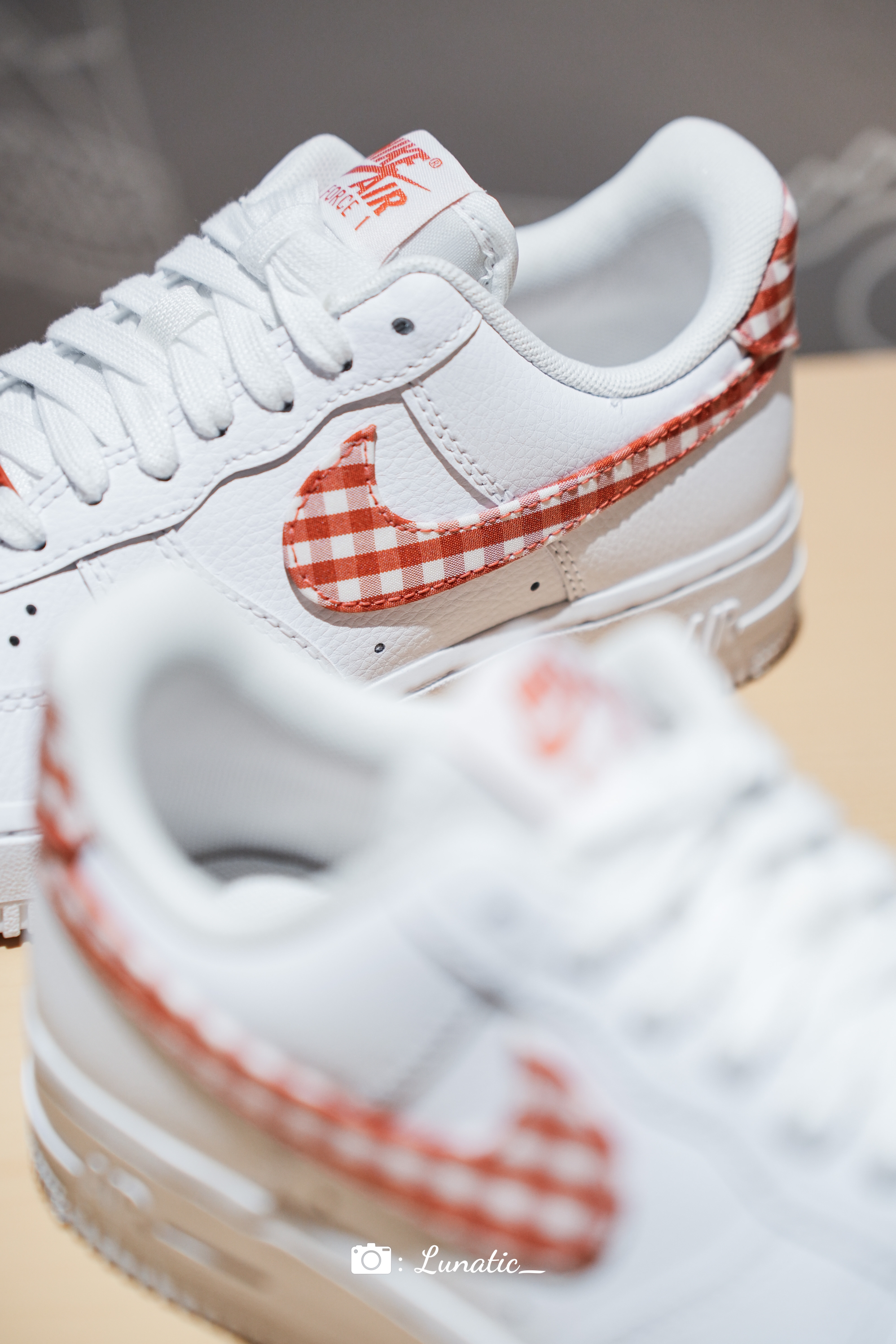 该双「AIR FORCE 1 '07 ESS TREND」采用传统的全白色鞋面,采用了皮革底/网眼鞋舌和衬里。亮点是SWOOSH和鞋跟覆盖层上使用的方格印花。有清新田园风的感觉。皮革材质鞋面质感很不错。上脚十分百搭!