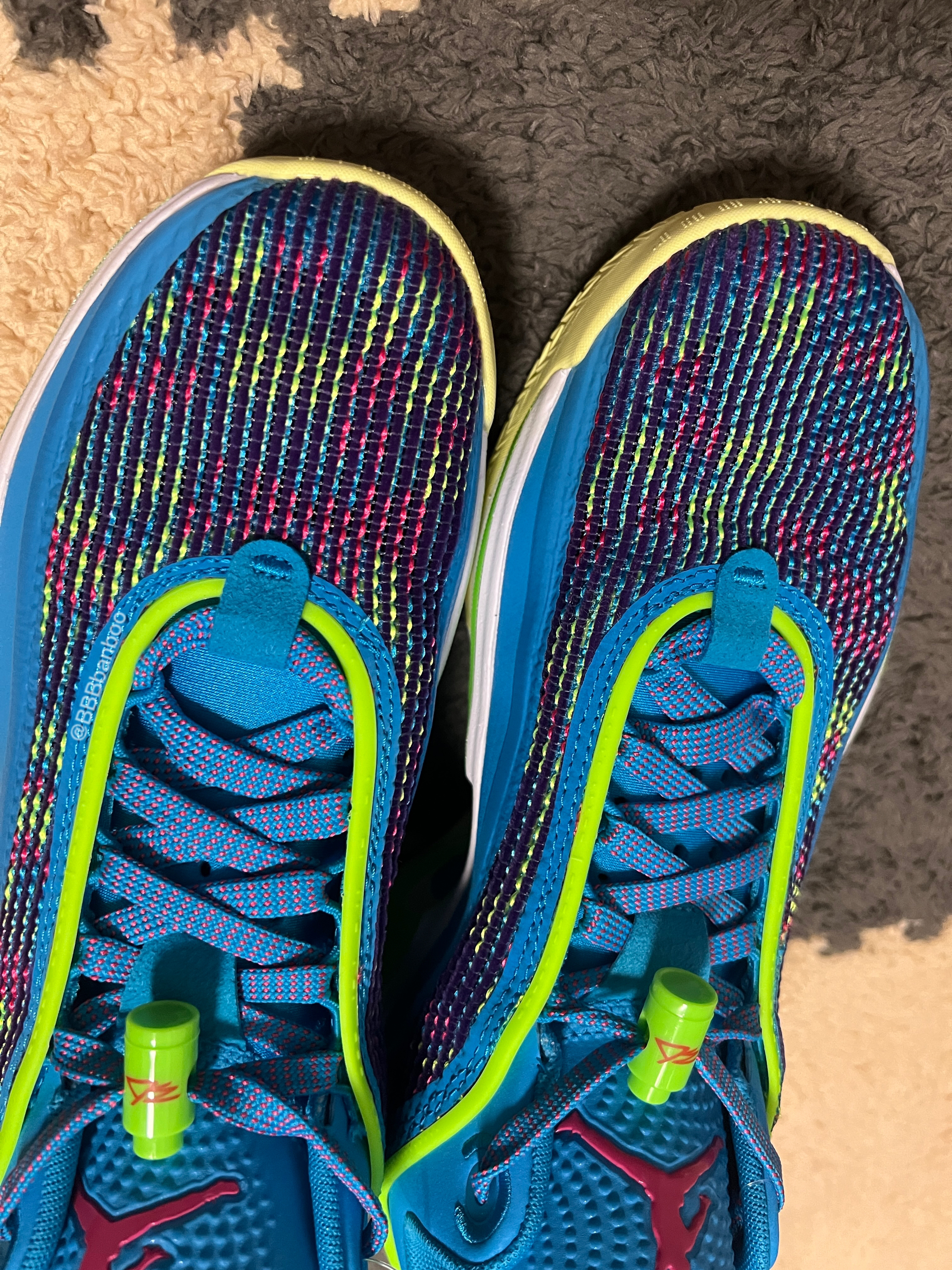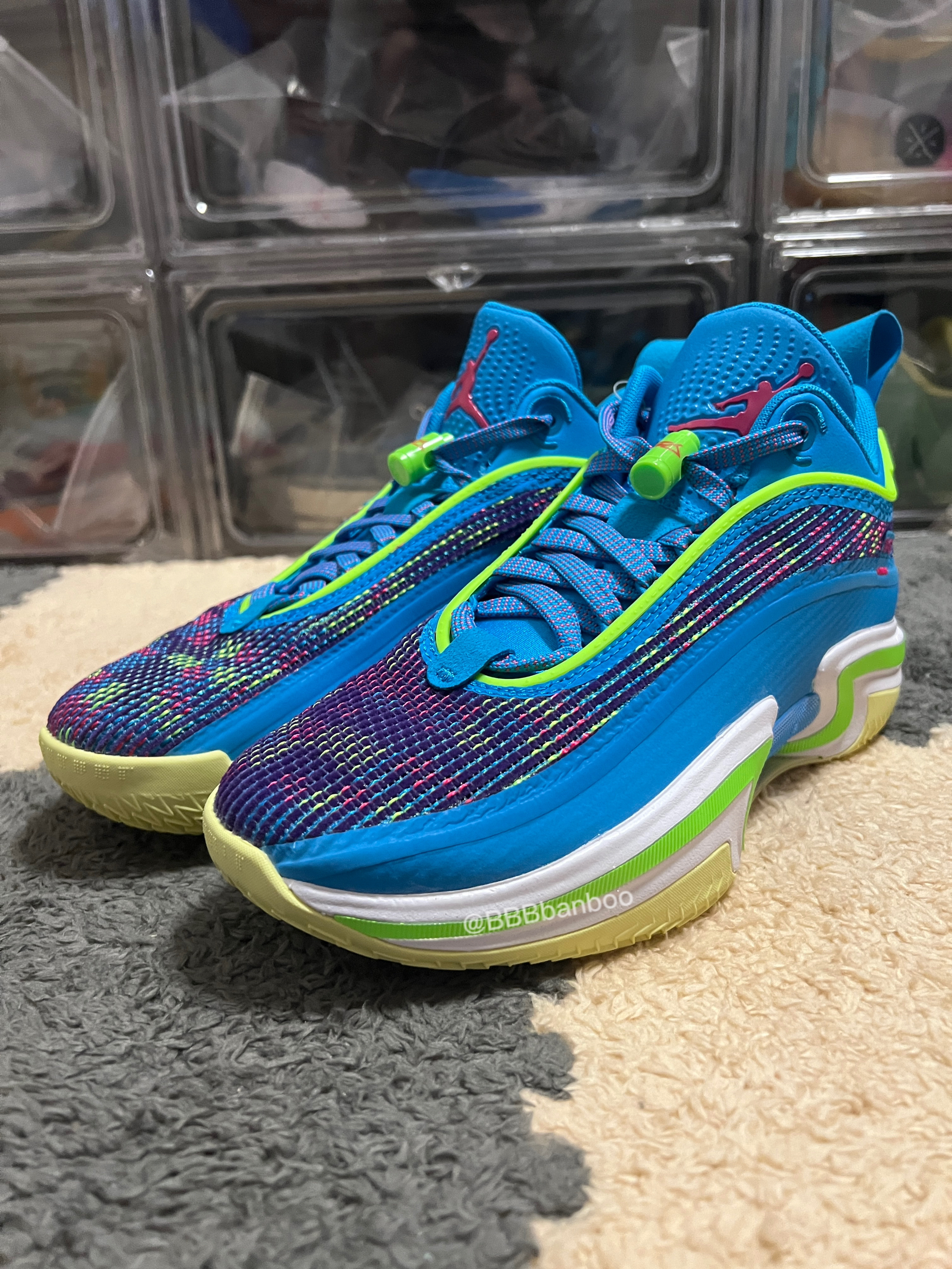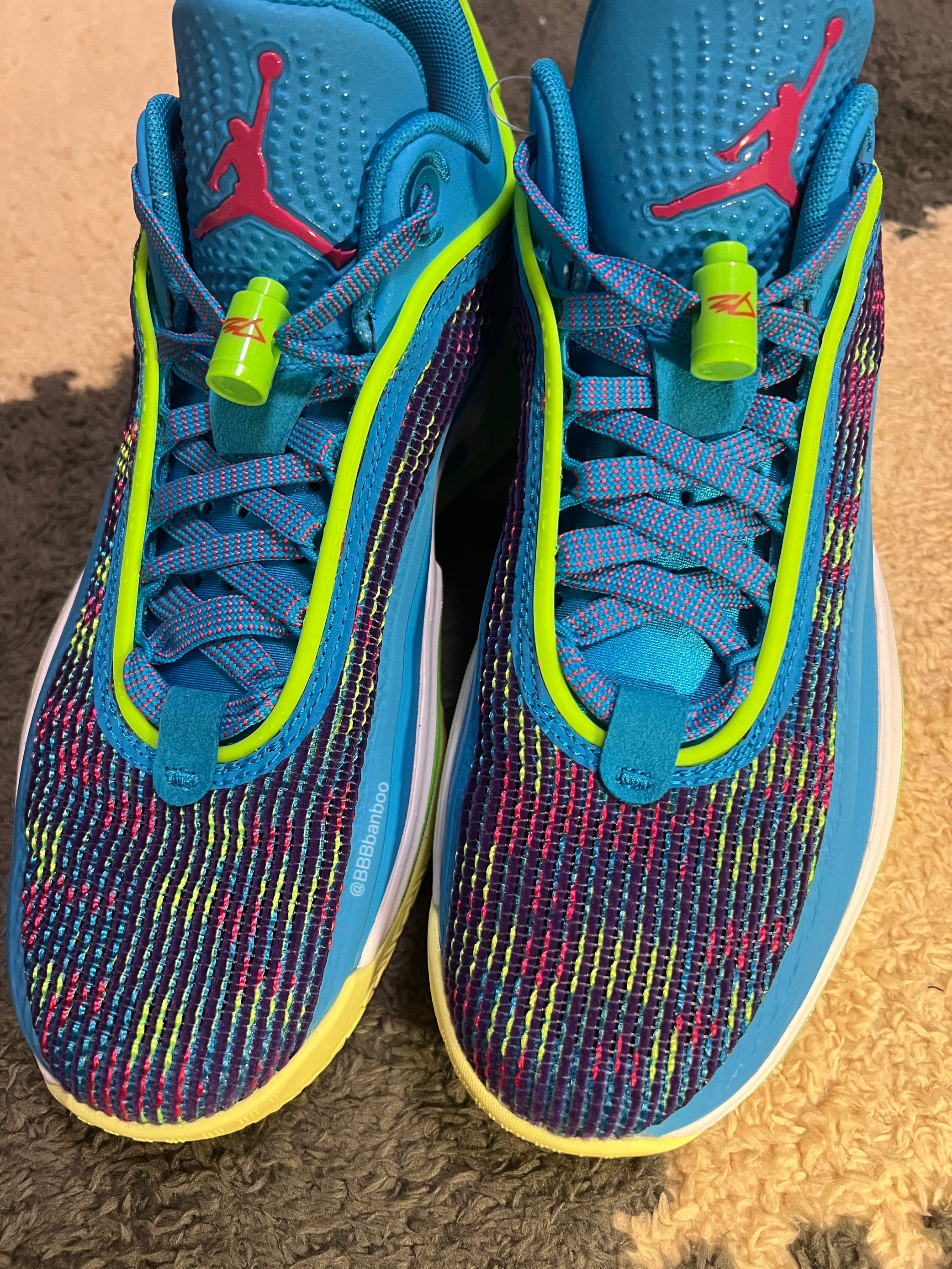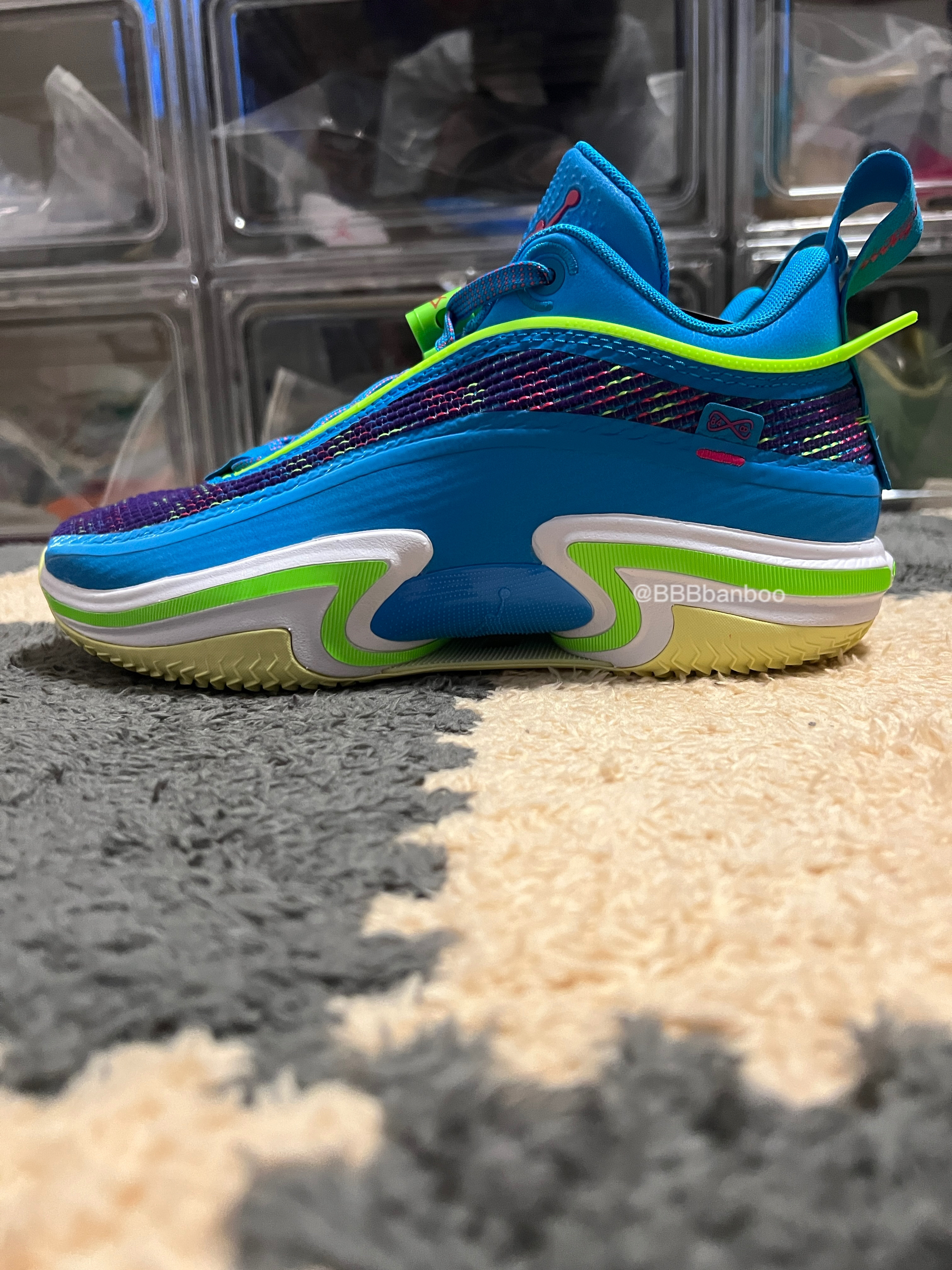AJ36low for LUKA 大家好这里是BBBbanboo,今天带来一双卢卡东契奇的AJ36low配色,相当帅气的配色。 外观👀:鞋面材料区别于高帮版,用了带毛绒针织网面,呈炫彩状,保留了透气性,又不会像高帮鞋面那么容易氧化。中底鞋面连接处低帮版进行了补强,更加靠谱。 整体蓝色色调并使用荧光绿色点缀,让鞋子配色非常抢眼! 中底:镂空设计减轻重量,同时提供不俗的足弓支撑。 全掌zoom str...