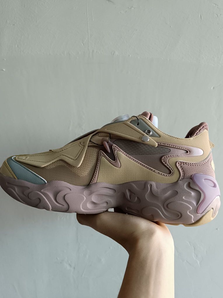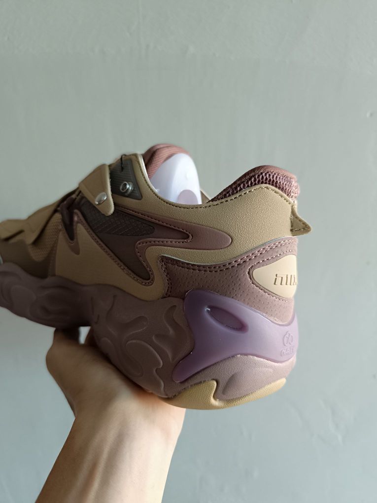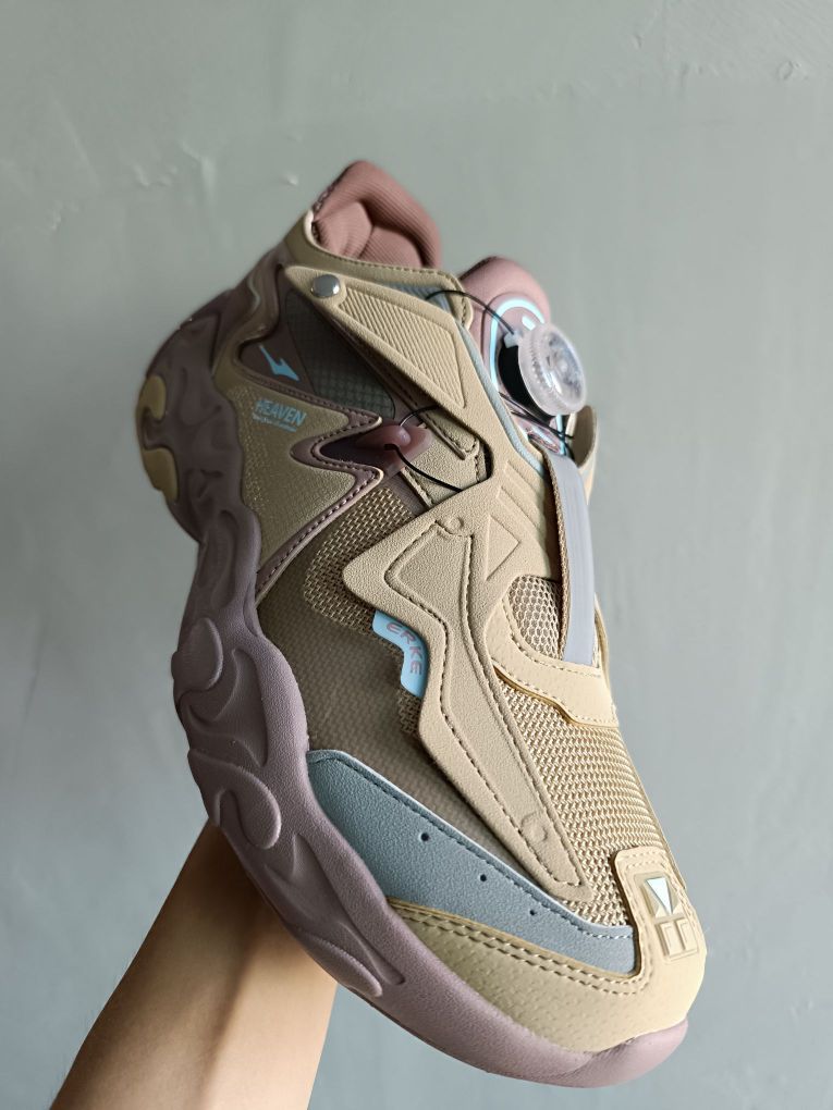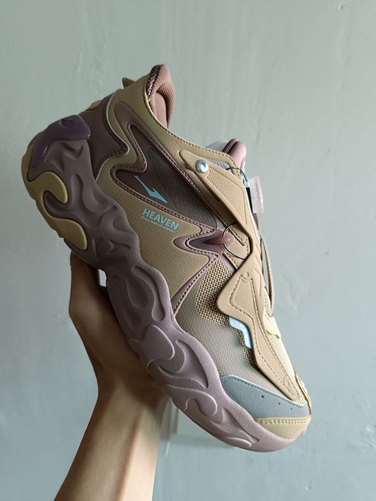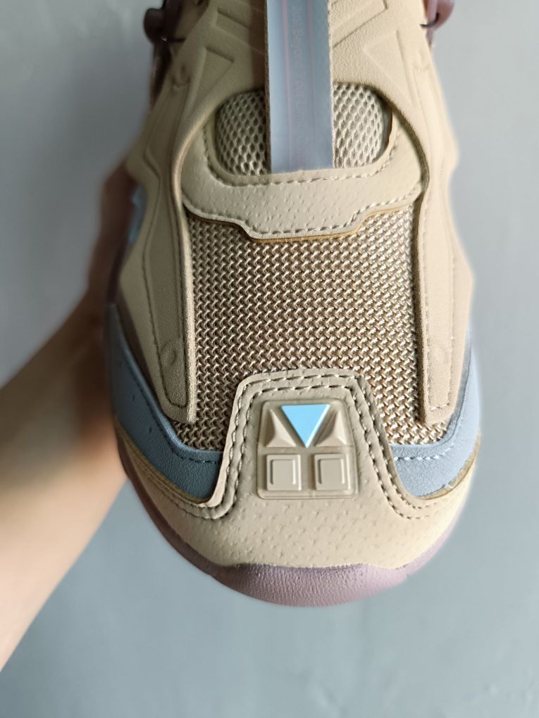 💬颜值:打开两侧按钮,是不是正面看像一只蝴蝶🦋 中间BOA旋钮像战舰控制按钮,又像一艘起飞的战舰呢🚀 💬搭配:沙色和银灰色点缀 搭配日系cleanfit穿搭 💬质感:麂皮 合成革和透气网布使得整双鞋质感很佳,而且鞋面不厚 夏天穿也不闷脚 💬脚感:不是一种一软到底的脚感,有一丢丢像react的脚感🦶 💬外底:好像和中底材料类似呢,硬度不高,耐磨可能需要长久检测