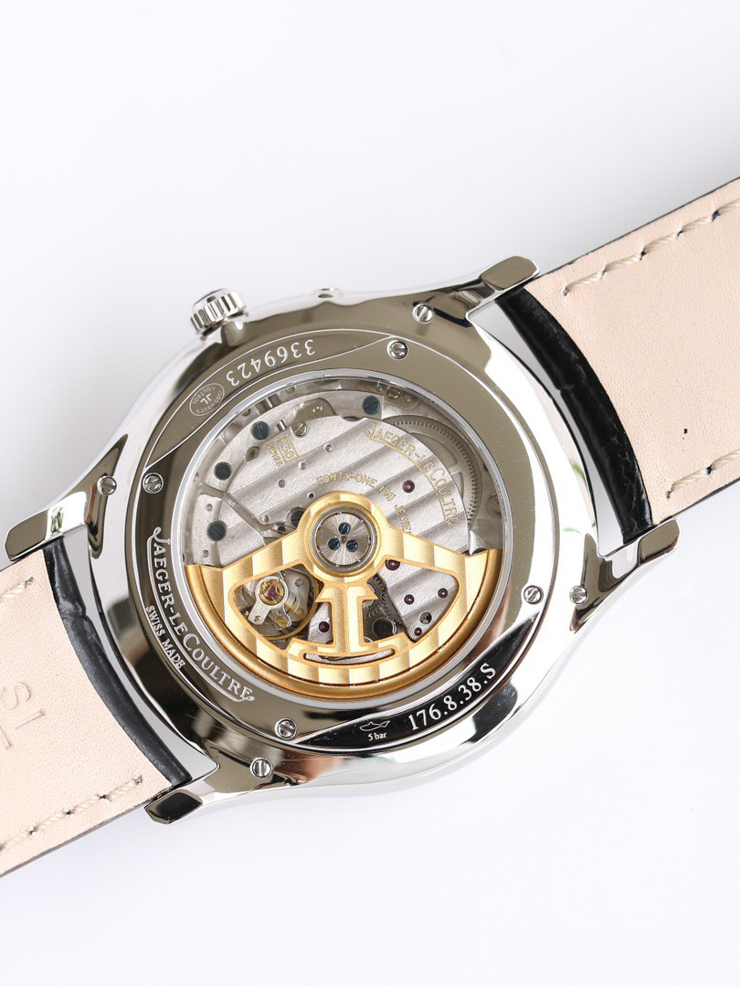 积家超薄大师一上场,光芒四射,白色内敛的表盘,整个表面设计到了极致,超薄的表壳设计,黑色意大利进口牛皮表带,颜值确实高高在上,加上手极致的贴手感觉,真让人不爱都不行,欲罢不能,表盘直径39mm, 厚度9.9mm, 手表给人一种浓浓的商务气息迎面扑来,搭配上西装真的是恰到好处,在它的讨托下,整个人都变得斯斯文文,绝对的优雅大气。