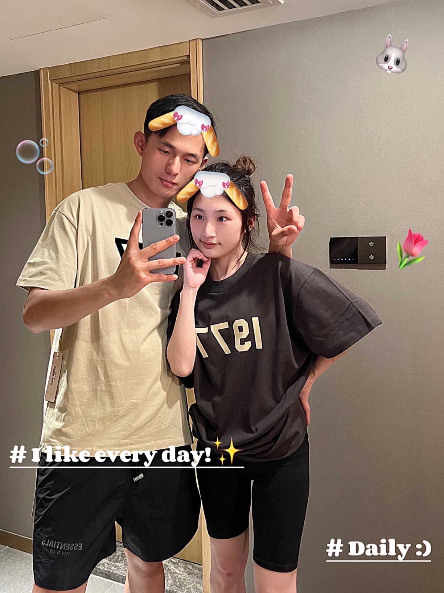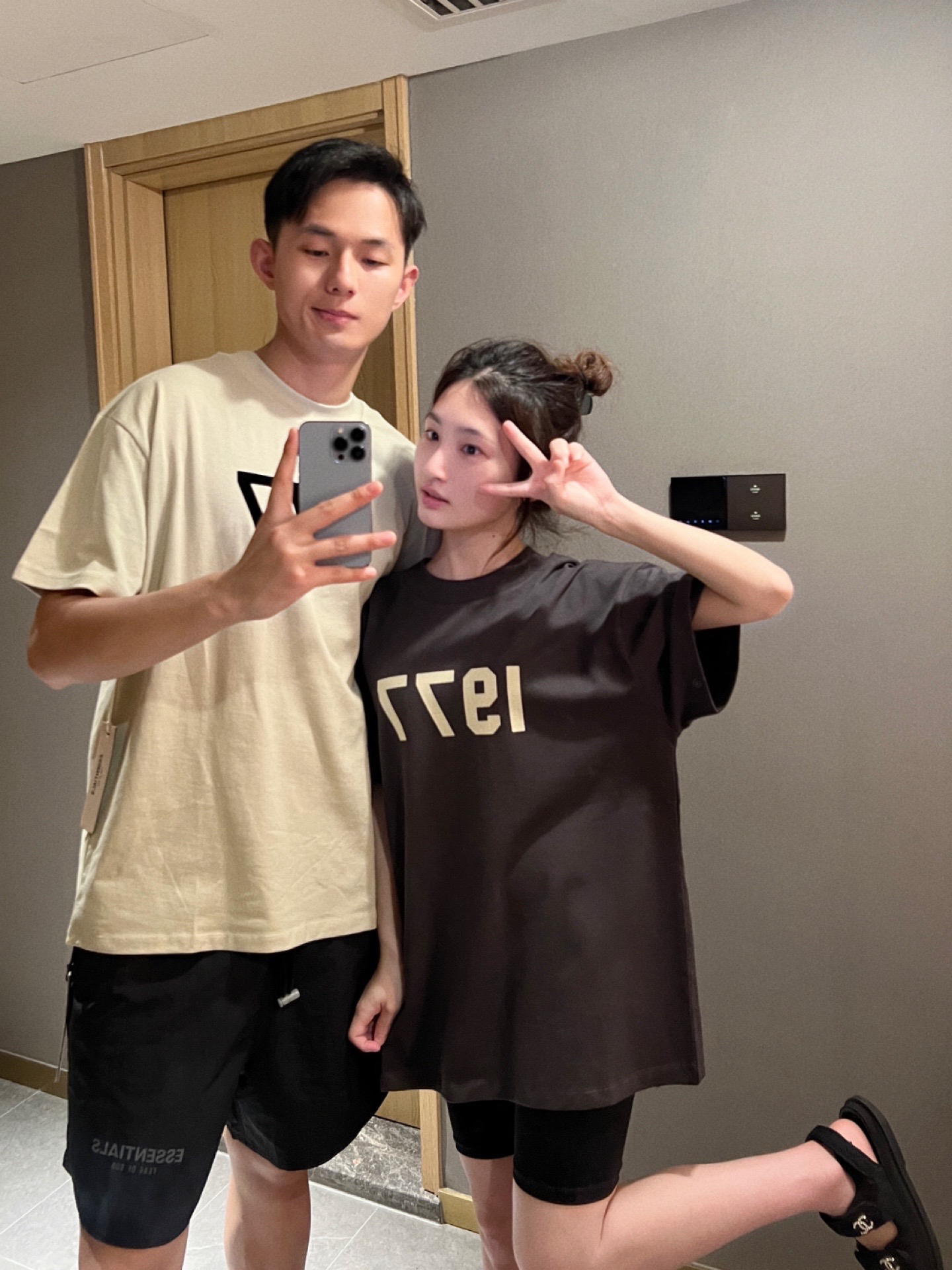 情侣装穿搭 今日情侣装潮牌短袖T恤分享OOTD: 👔: #Fear of God Essentials - essentials的设计真的千篇一律 只适合直男 我都看腻了 要不是为了配情侣装T恤