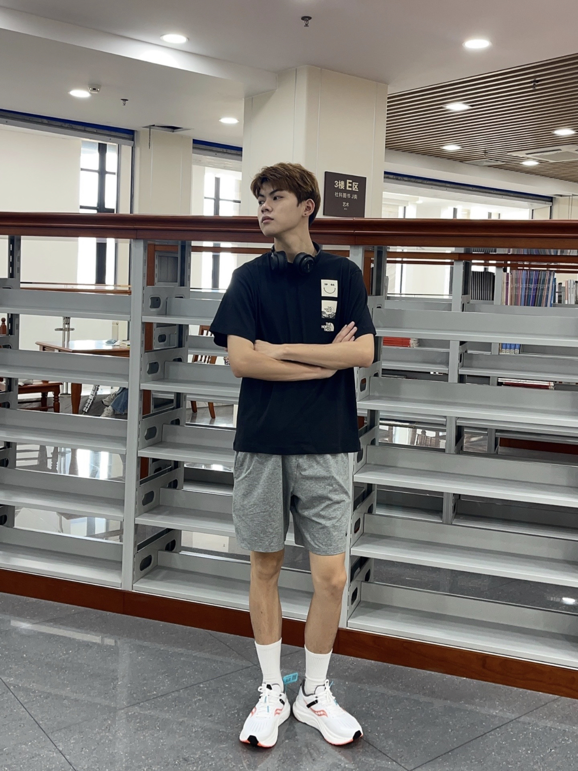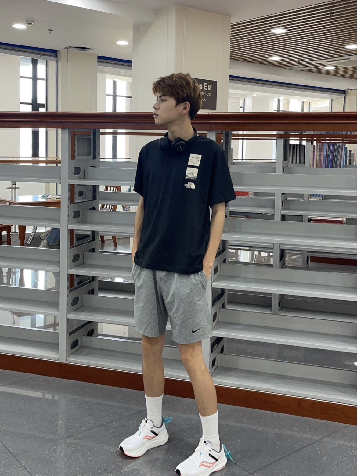 今天比较懒是速成穿搭 黑色T恤十灰色短裤,黑灰是最容易搭配的基础简单的黑灰配色,每个人都能轻松驾驭 穿起还是觉得美式穿搭更加适合男生!简约黑T恤+美式篮球短裤宽松舒适 短裤针织速干面料清凉透气,长度也正好是我喜欢的,膝盖微微上面一点,显腿长哦 图源自网络侵删