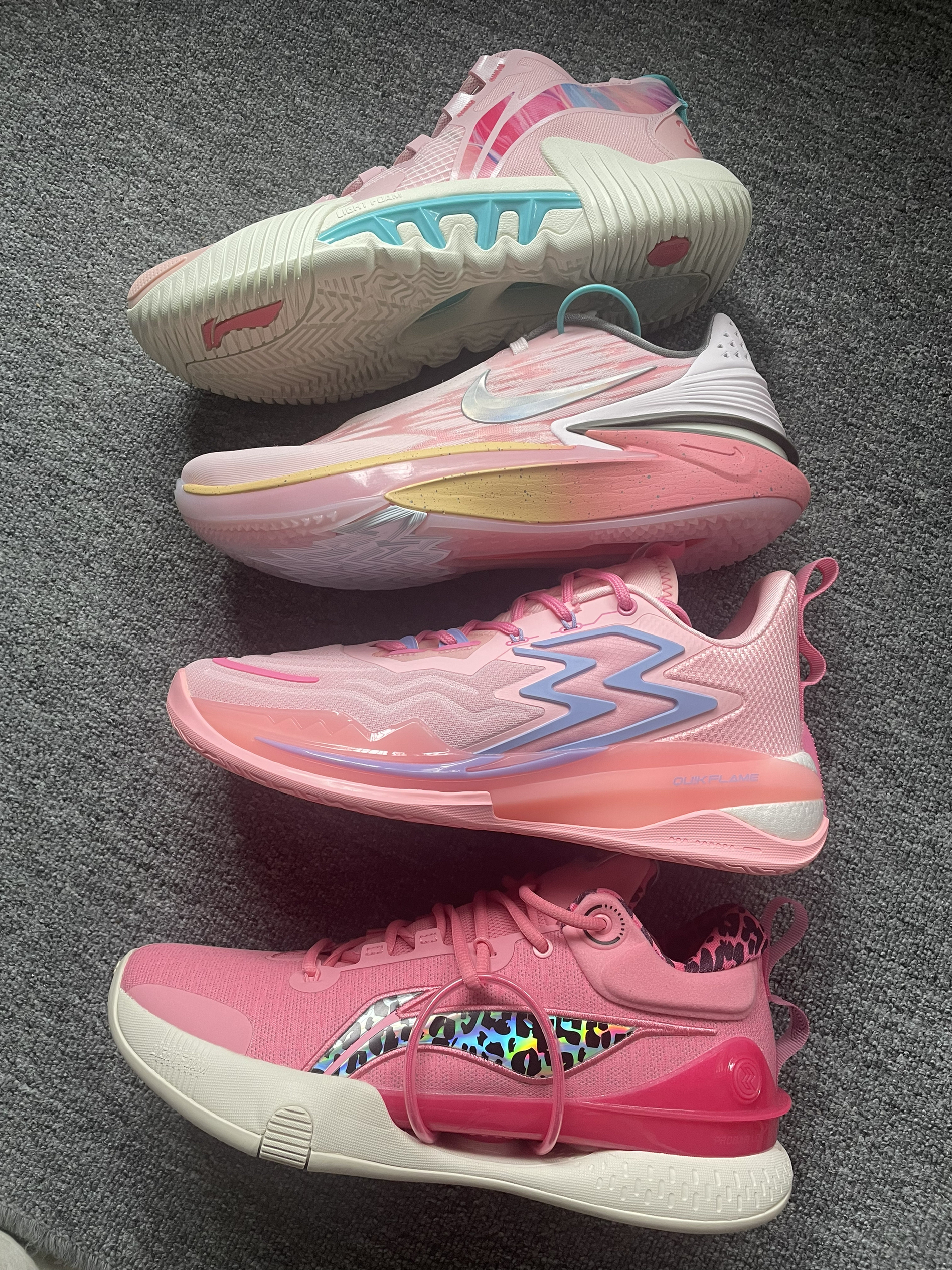 Nike Air Zoom G.T.Cut 2.0 EP 粉色 LiNing李宁 反伍2 low 粉色 LiNing李宁 闪击8 Premium 竺葵粉 361度 Big3 Pro 三角梅 粉色篮球鞋绝对是很多小伙伴会选择的球鞋颜色,那这四双粉色实战篮球鞋,你们会怎么选呢!