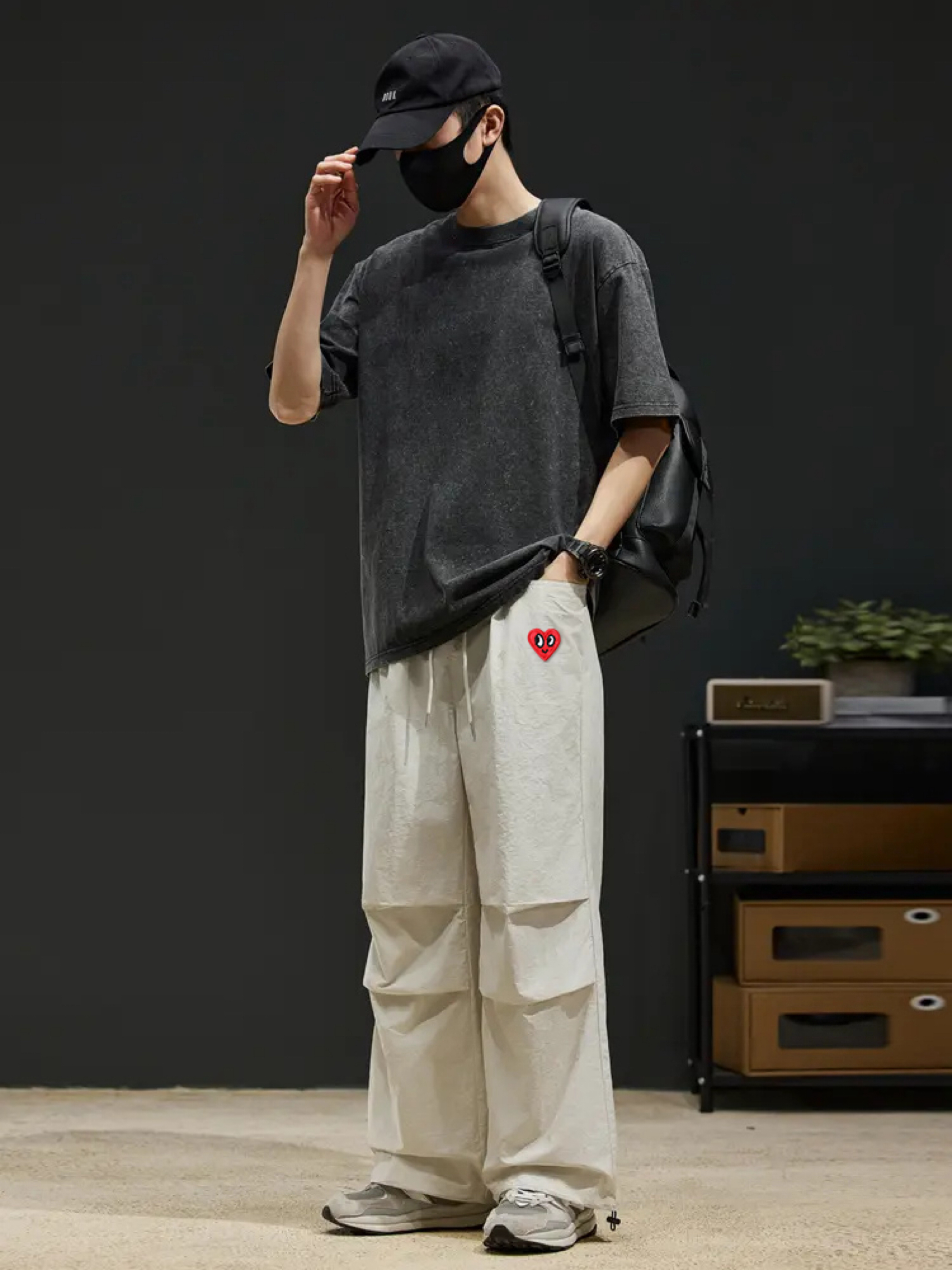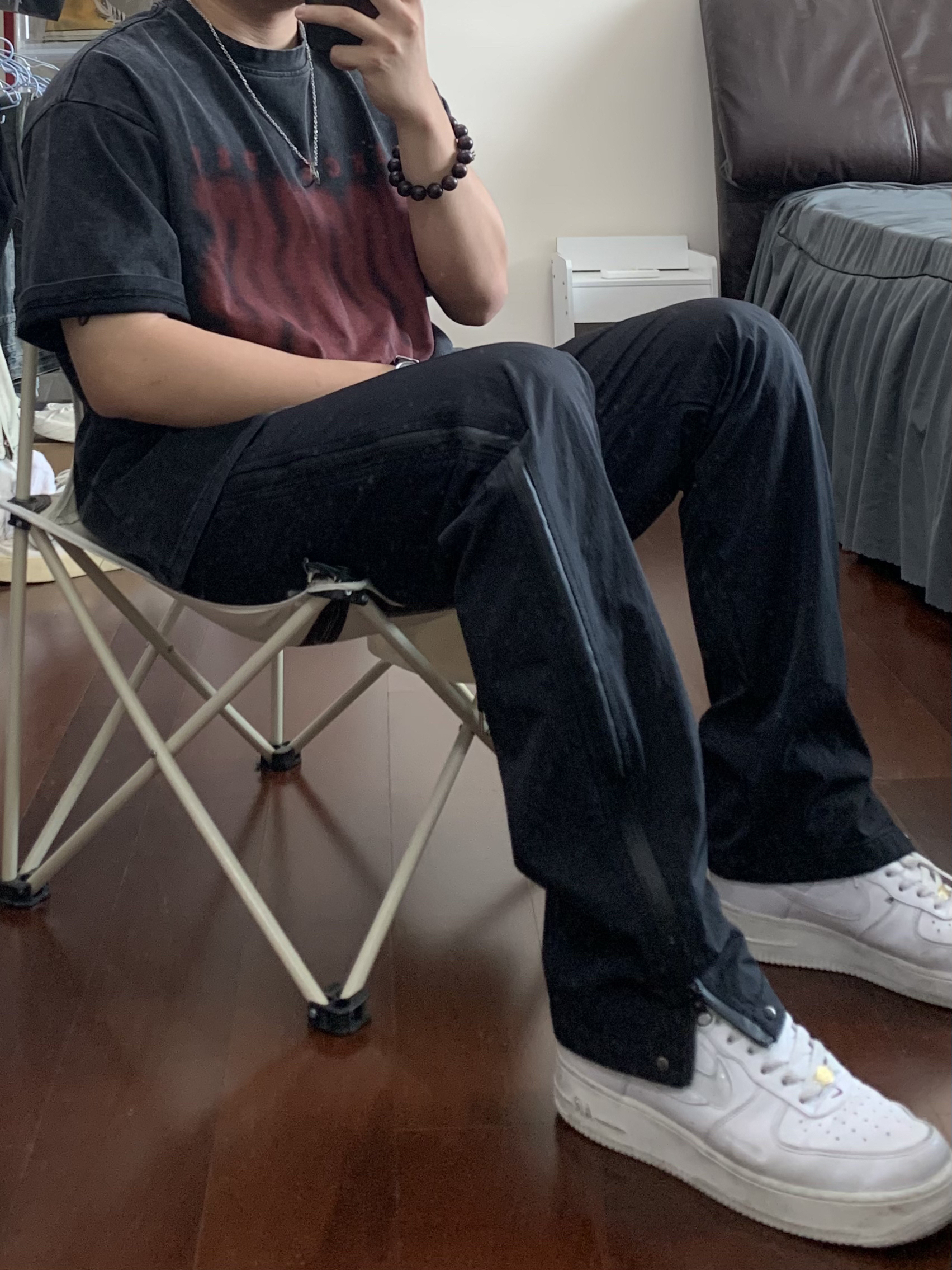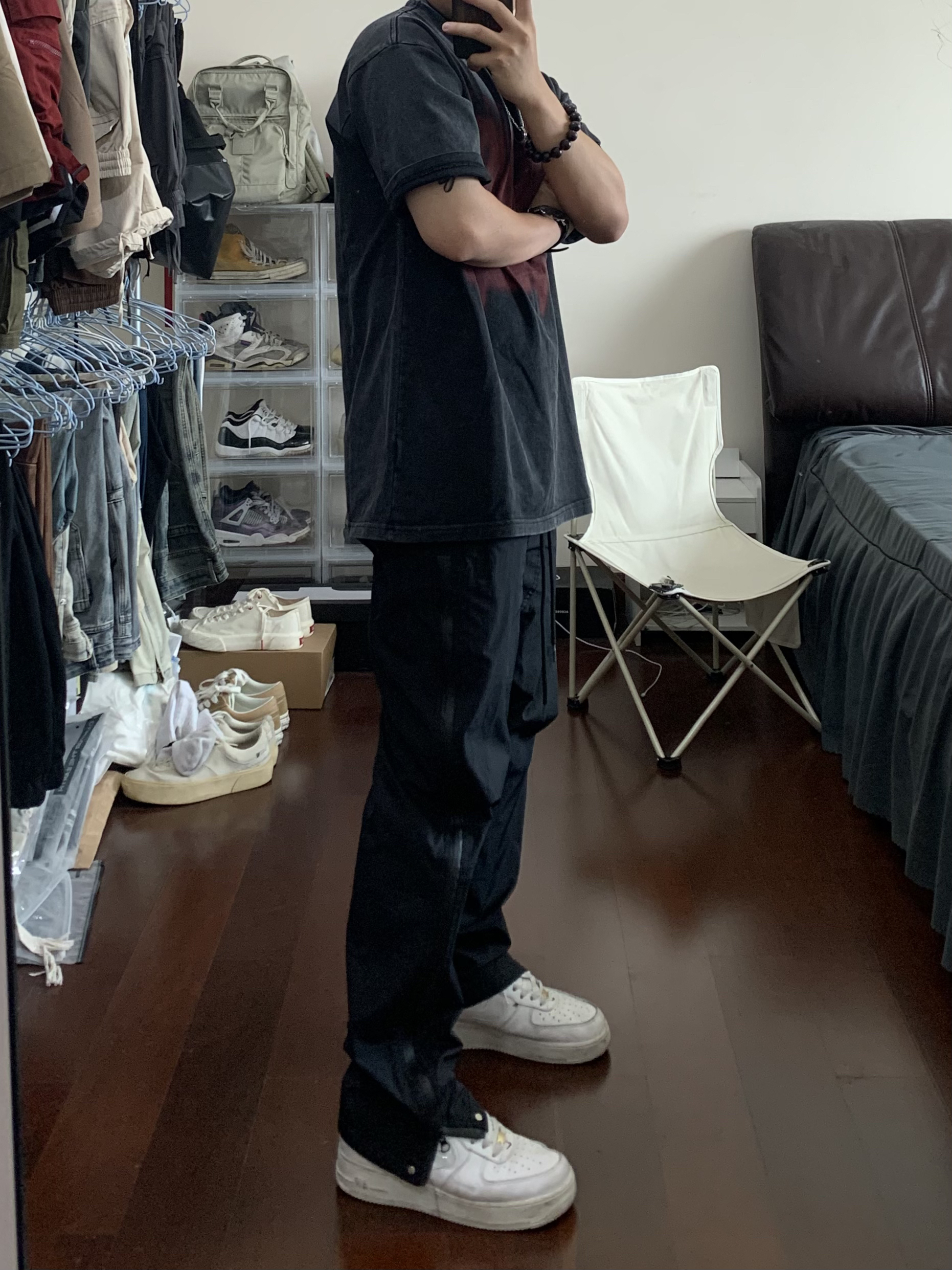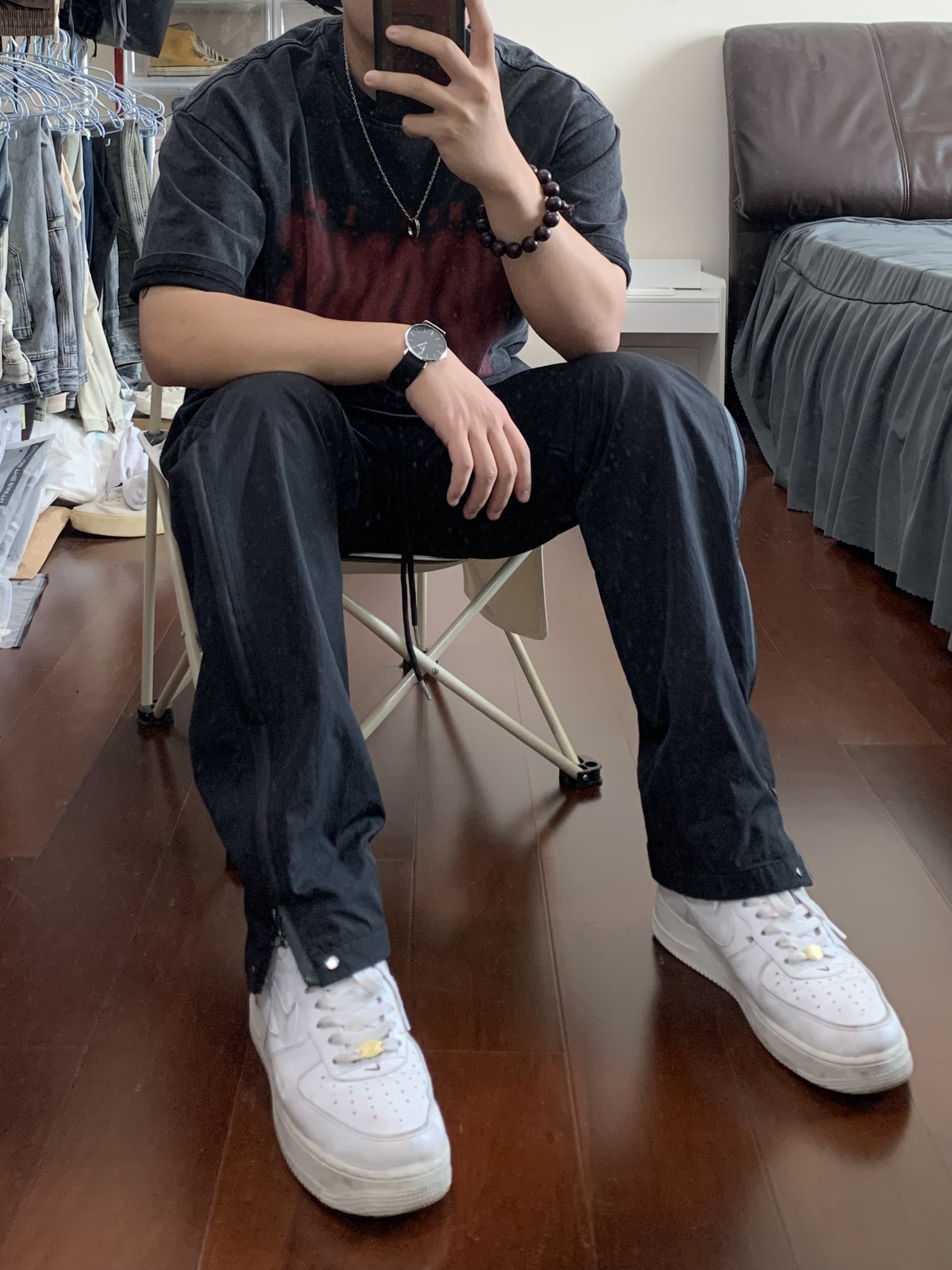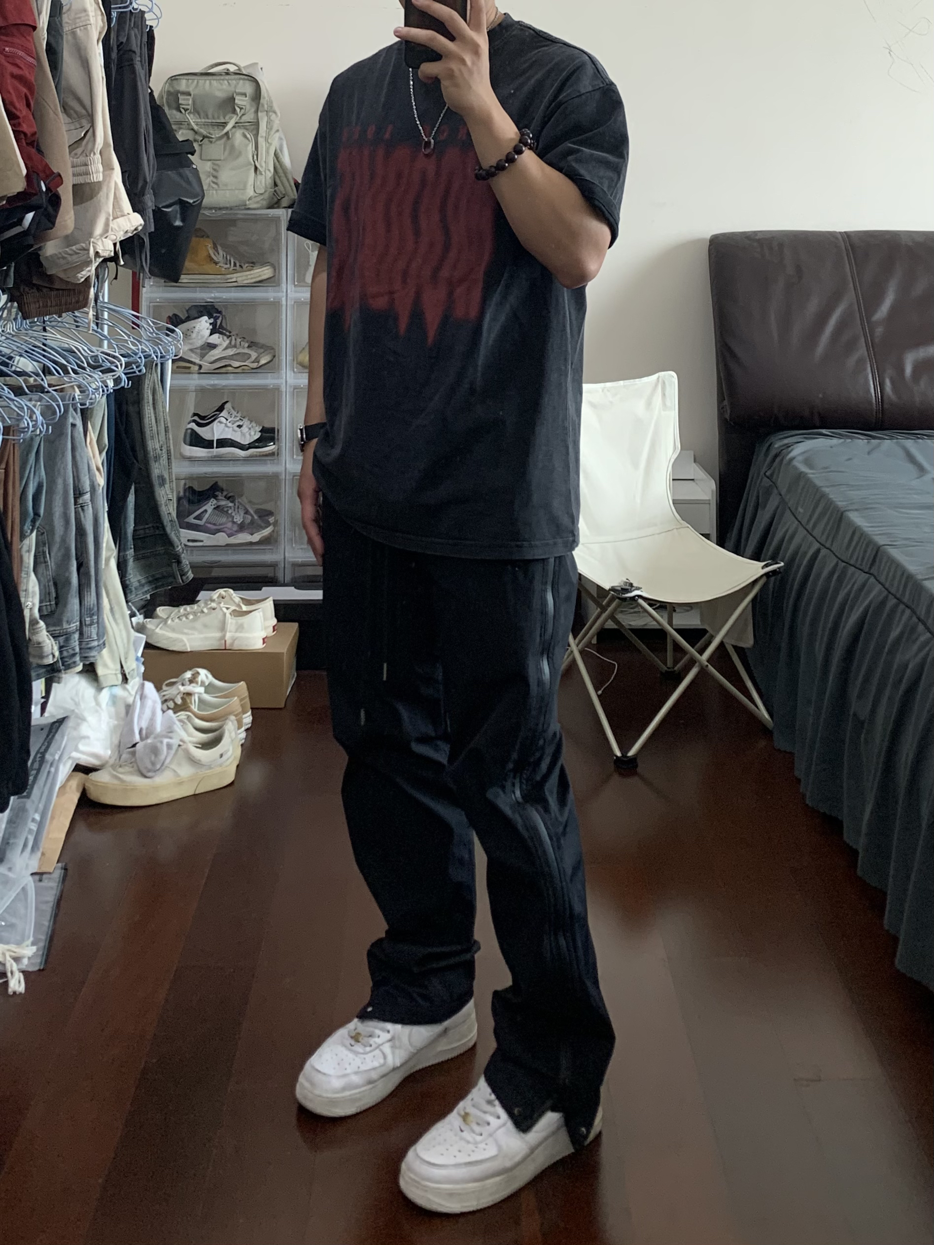 all black 短袖版型太帅了 搭上机能风拉链长裤 👔/98SQUID 👖/98SQUID