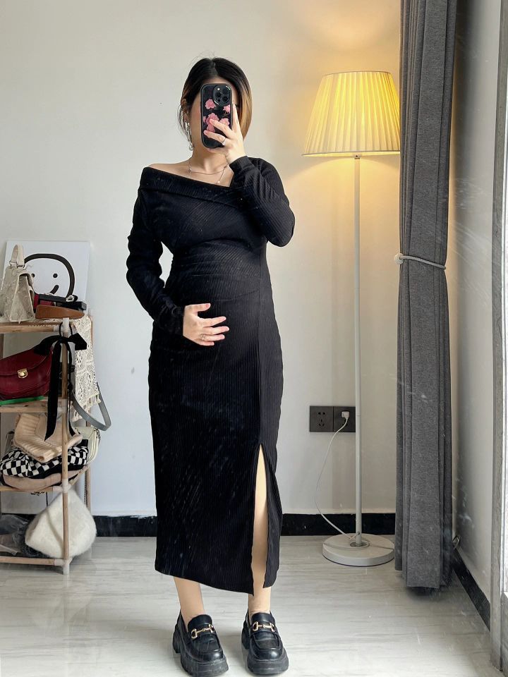 这件连衣裙是孕前买的没想到现在还能穿得上 套上外套妥妥的继续美丽 今天26w了感觉再大一点肚子就穿不下了 一整套饰品都是姐妹送的新年礼物来自recycle com 珍珠饰品超有质感 我个人超喜欢大的饰品可以修饰脸型