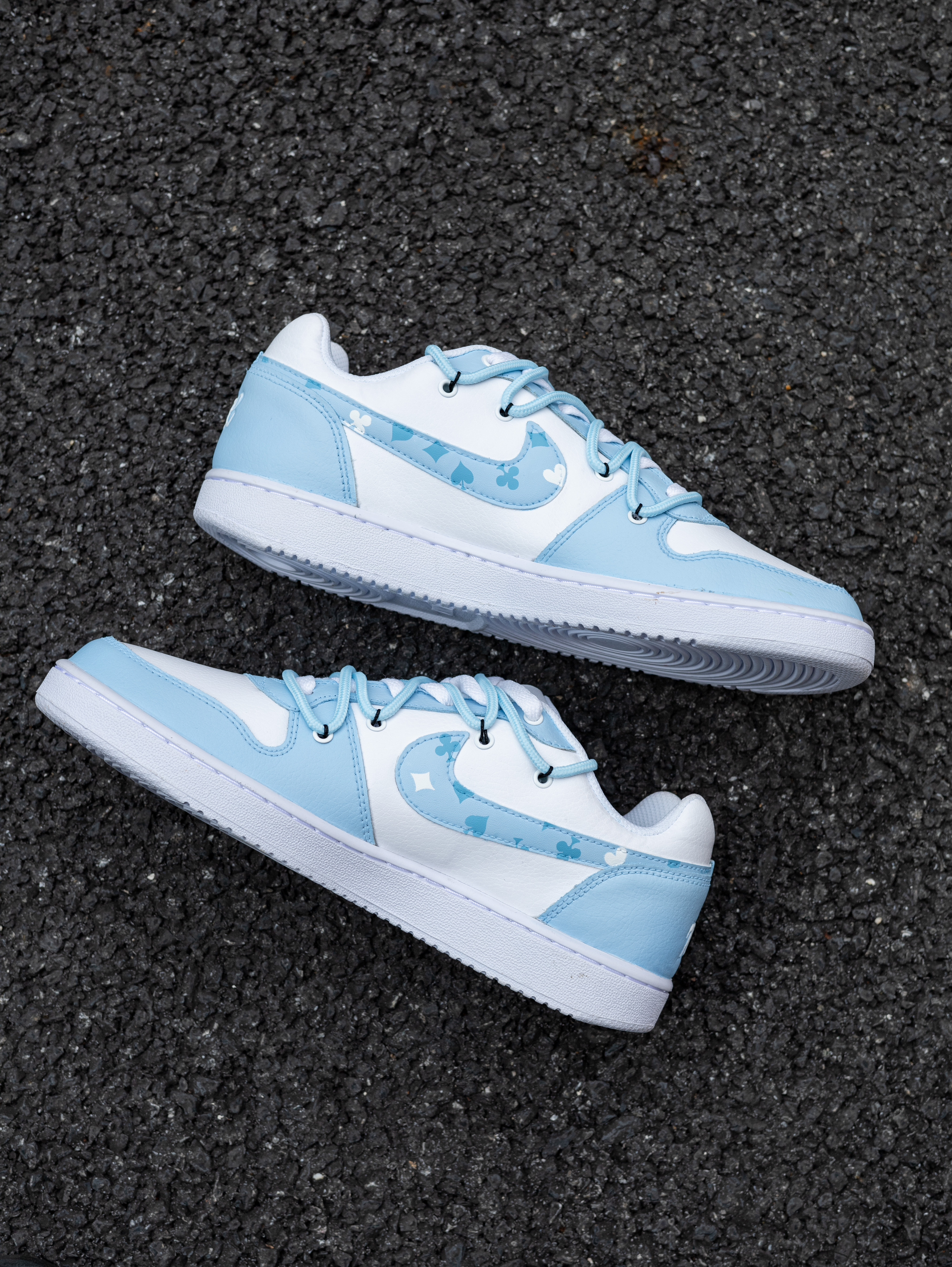 作为一个潮人来说,出街穿着一双潮流个性的球鞋会彰显出与众不同的独特气质!而如今许多市售的鞋款货量一般都比较大,出门难免会遇上“撞鞋”的尴尬,而定制鞋款就可以较为完美的解决这个问题,那今天就给大家分享这双定制版的EBERNON 扑克牌♠️♥️♣️♦️涂鸦 蓝白板鞋! 这双扑克牌涂鸦 蓝白板鞋选用了EBERNON纯白为设计原型,原鞋热度和销量都非常不错,很适合DIY定制! 这双定制鞋款灵感...