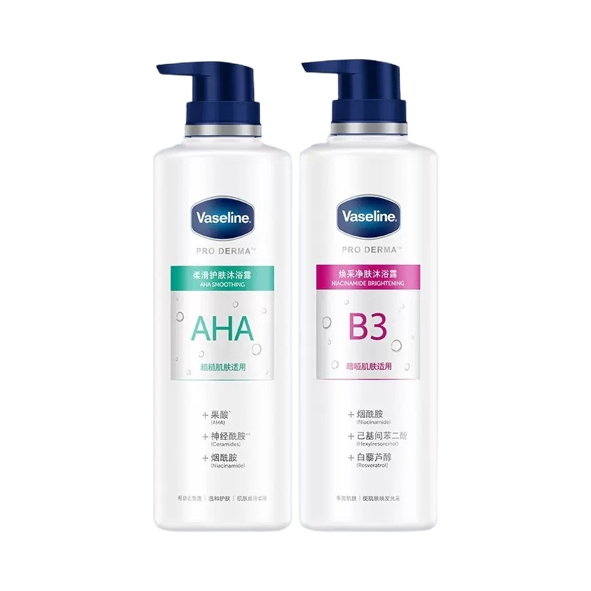本篇笔记关联了Vaseline/凡士林 果酸烟酰胺沐浴露套装 嫩肤焕亮去角质去暗沉 果酸500ml+烟酰胺500ml等商品,为用户提供真实的使用体验和购买参考。
