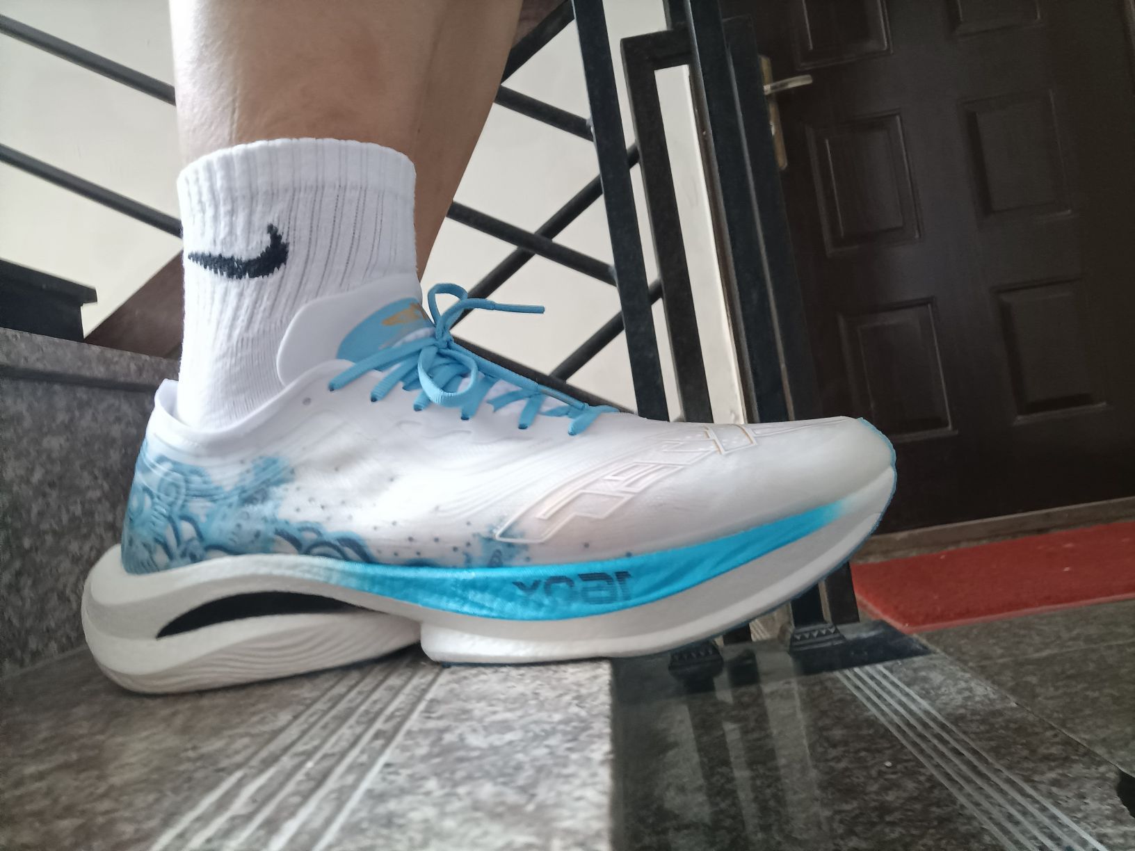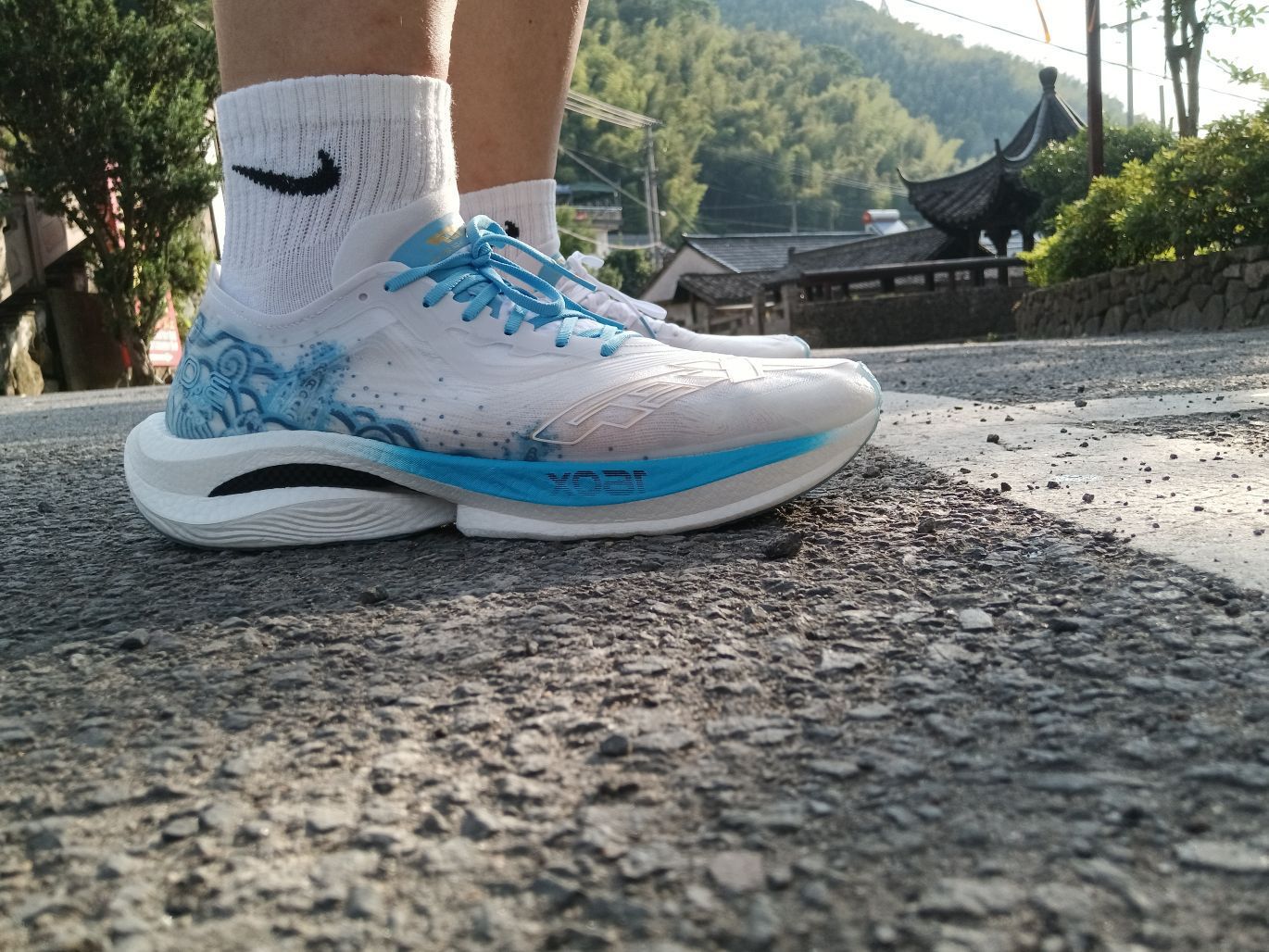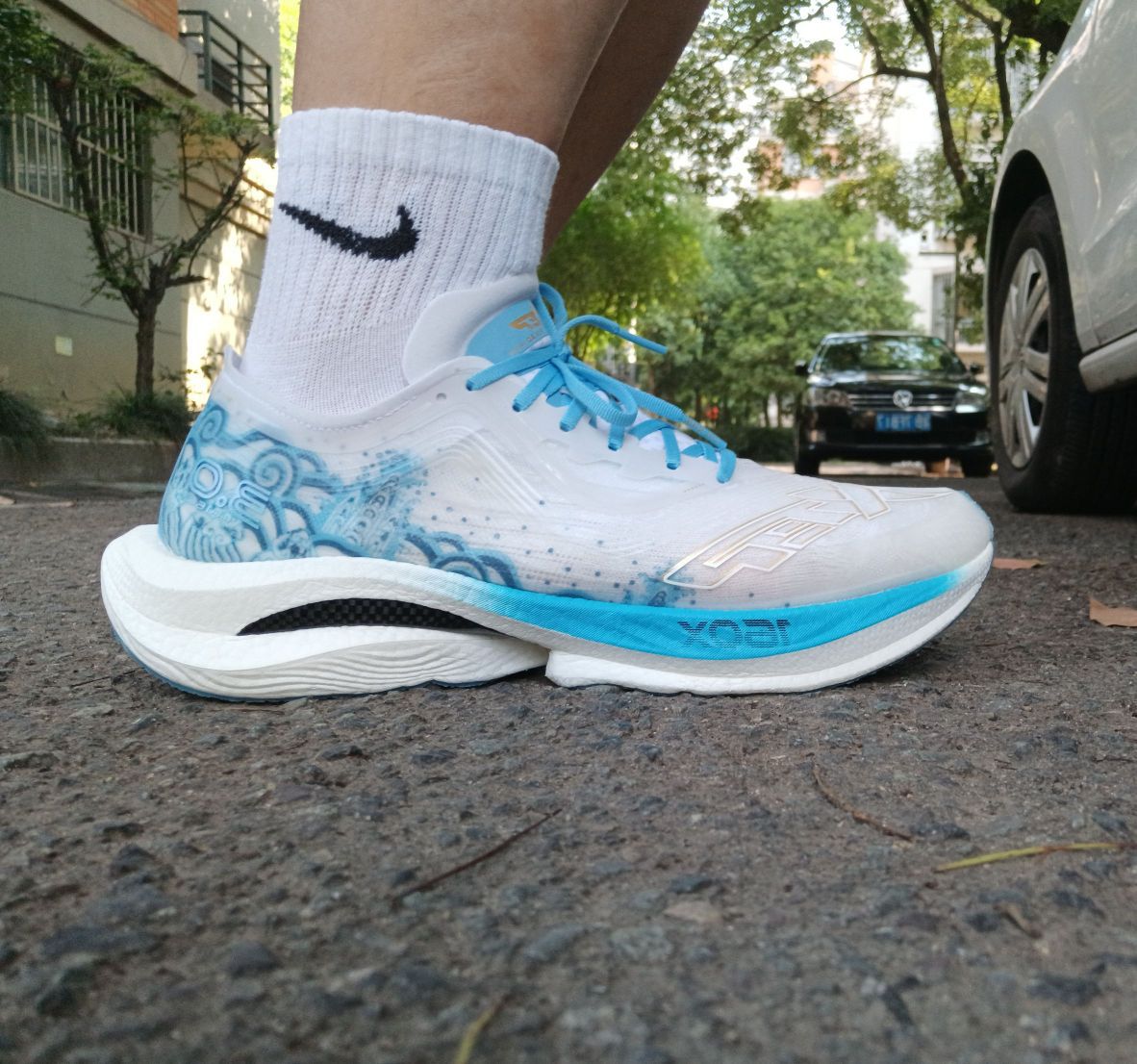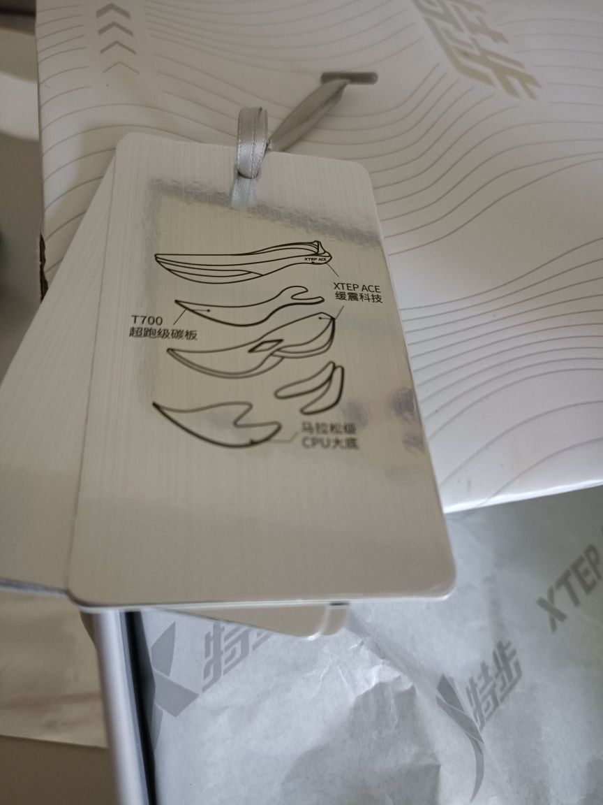 识货没人发这个配色? 这次我抢先当第一个了哈哈哈😁 从鞋盒到鞋子都看出了国产品牌的用心, 为特步点赞!👍👍👍 鞋盒内附赠一副鞋垫和鞋带,以便更换 鞋子上的其实是祥云,理解成海浪也行 白蓝配色挺适合夏天穿着 中底软弹适中,值得一试!
