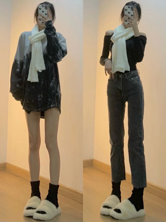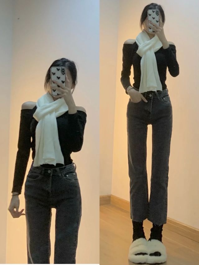 👉🏻净身高163/40kg 内搭露肩黑色连衣裙👗燕琳小姐|平价! 扎染风长袖🖤GRKC 白色薄款围巾🧣Zita Fabiani|pxx 9.7你们别整贵了 蓝灰色直筒裤👖初田日韩风定制 浅蓝色高腰阔腿裤💙布琳家衣橱🖌背带裤也是 还有啥想看的可以滴滴我哦。分享的都是偏南方的穿搭~第一套我很爱哈哈哈 咱就是说也不是没鞋没衣服穿 就是很喜欢 那种感觉 无法用语言表达~就是不抗冻!第二第三套记住!上窄下宽...