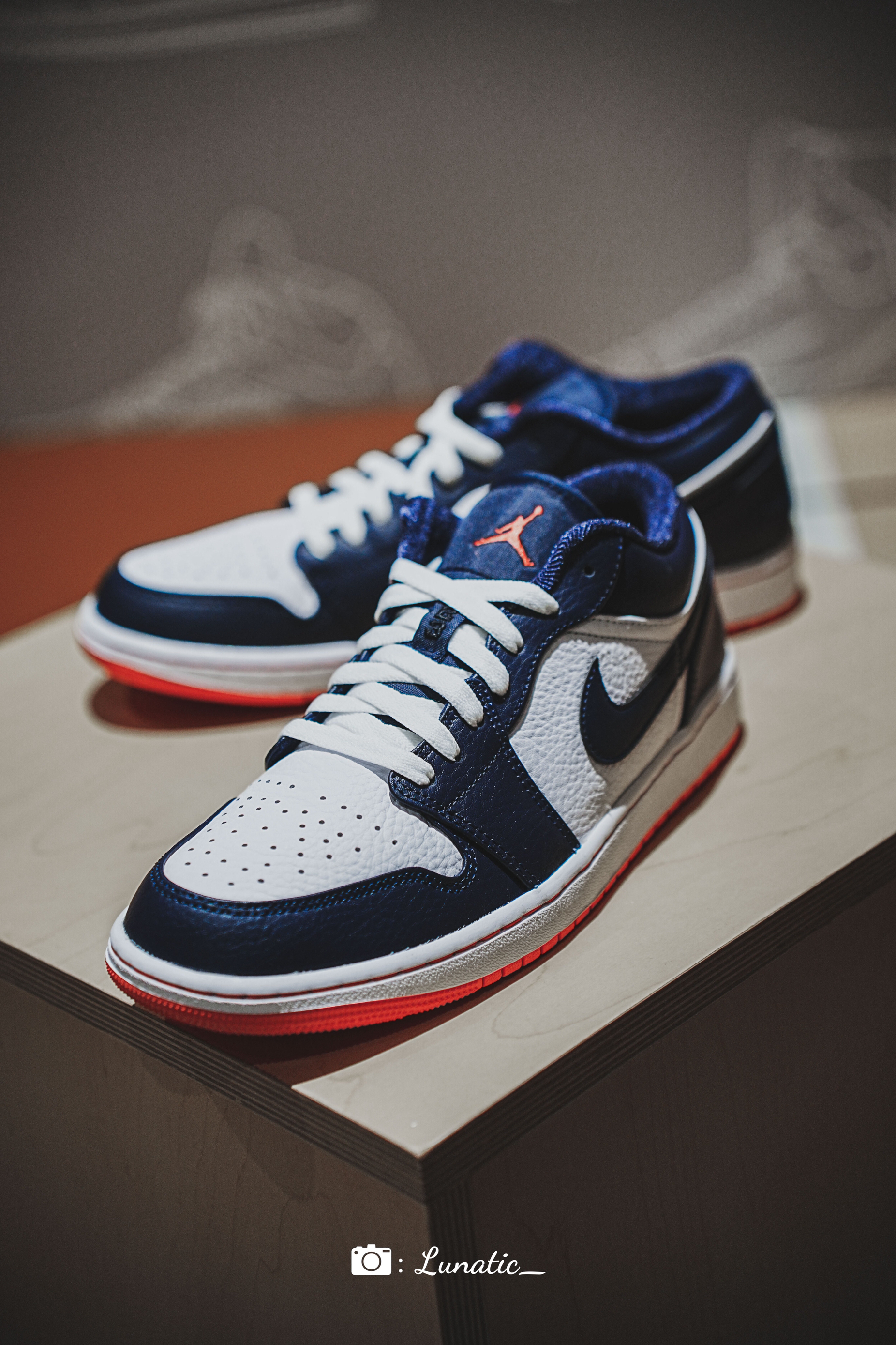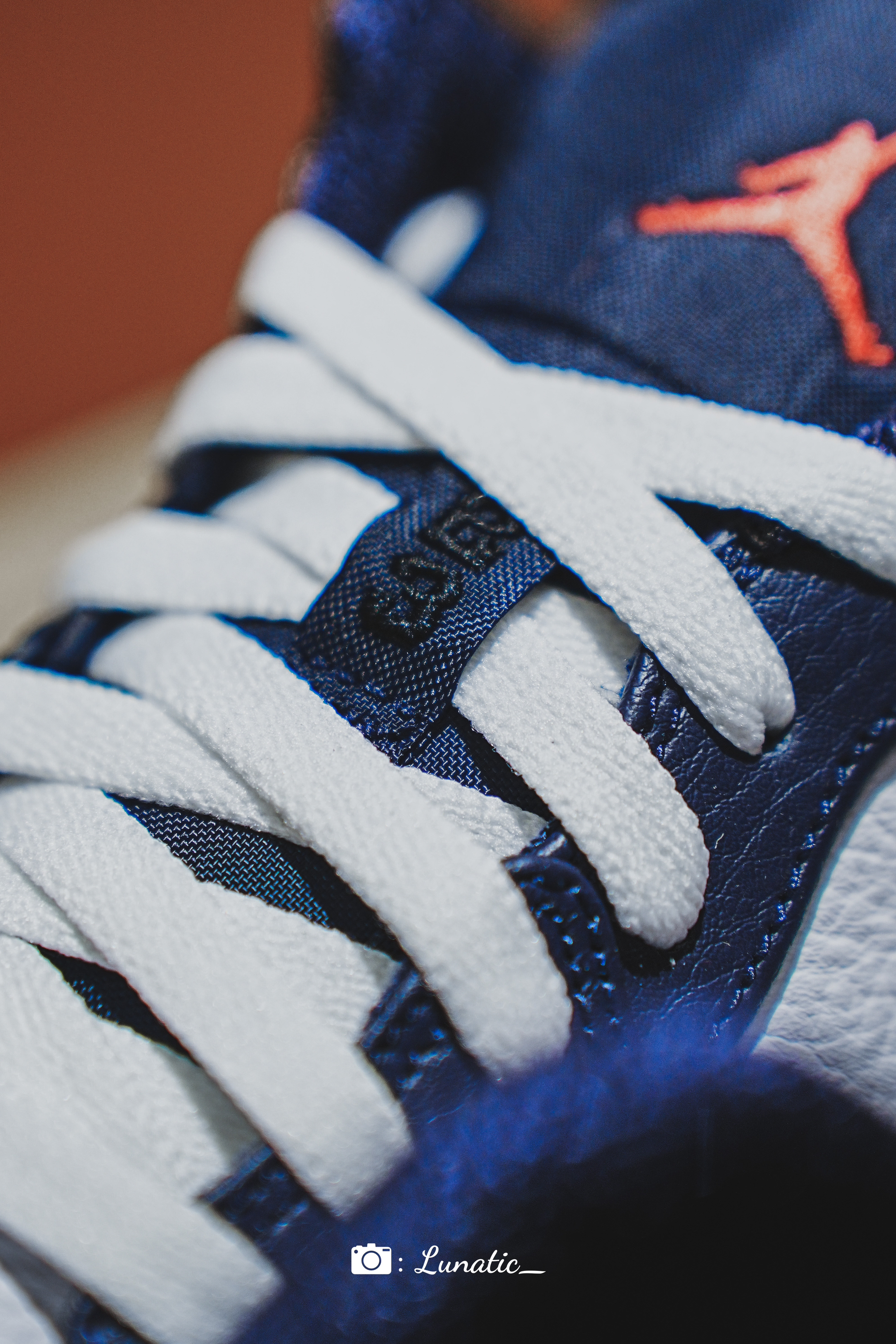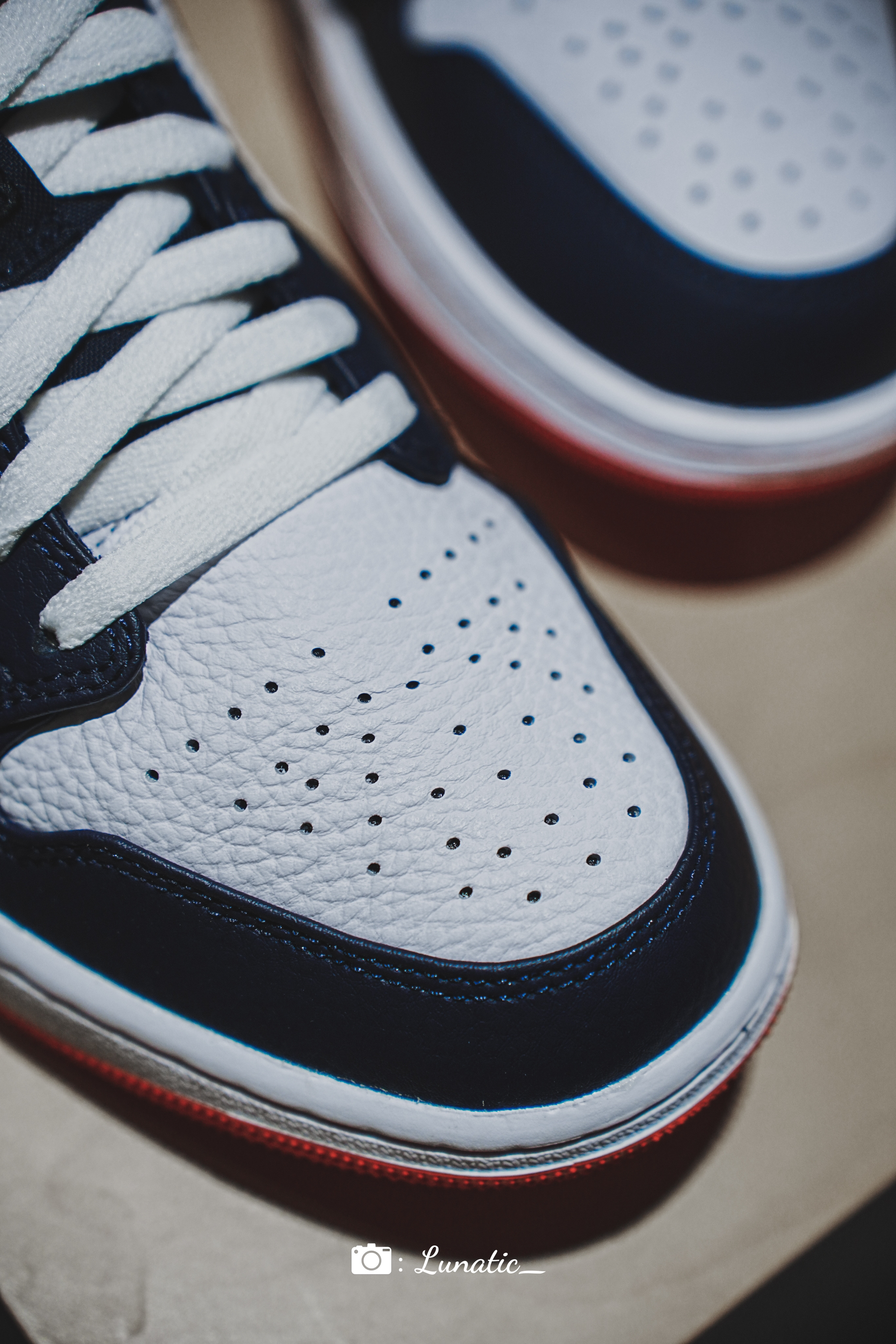 该双Air Jordan1 Low Retro Ember Glow 午夜蓝,采用了对比度和辨识度高的深蓝和白色色调皮革做鞋面,反差色强烈的红色橡胶大底,最为亮眼的是红色的鞋底,让整个鞋子看起来非常的抢眼,在低调得展现着独特的魅力。