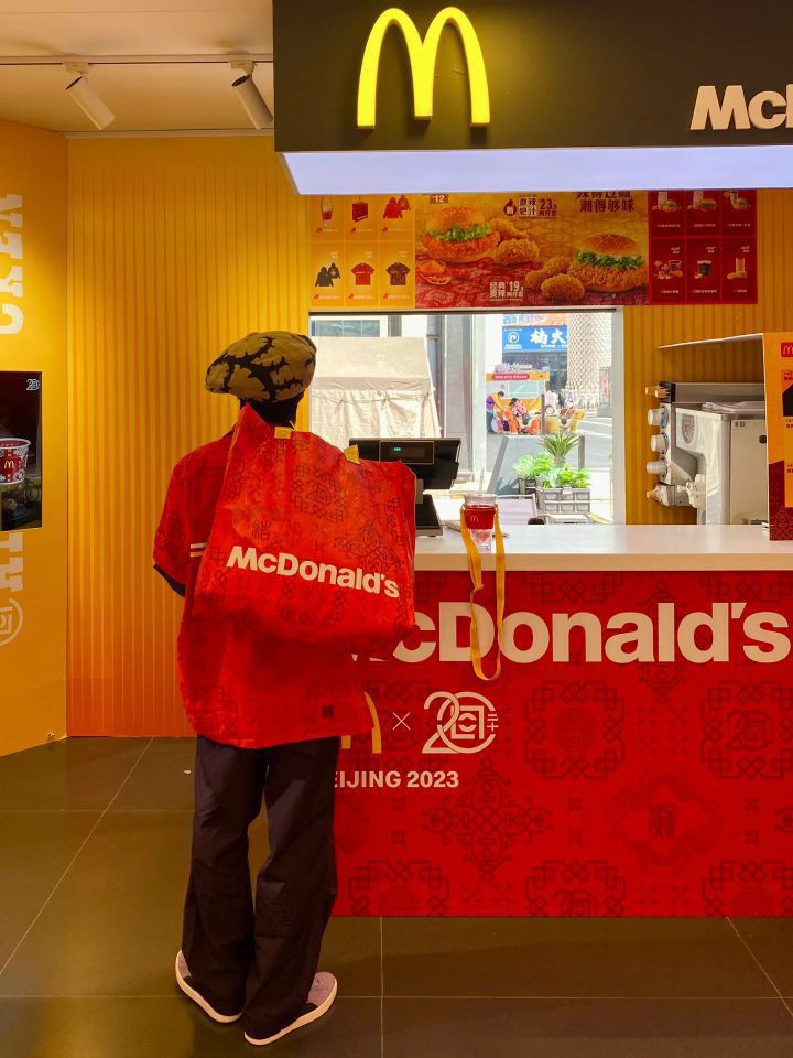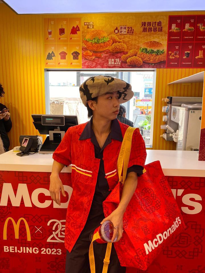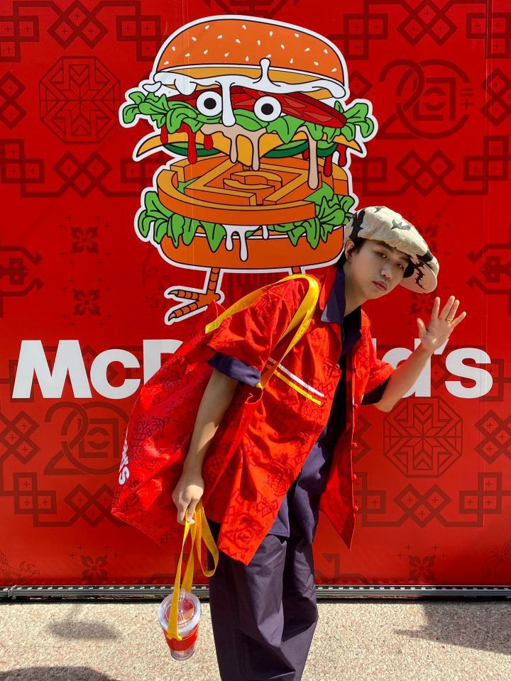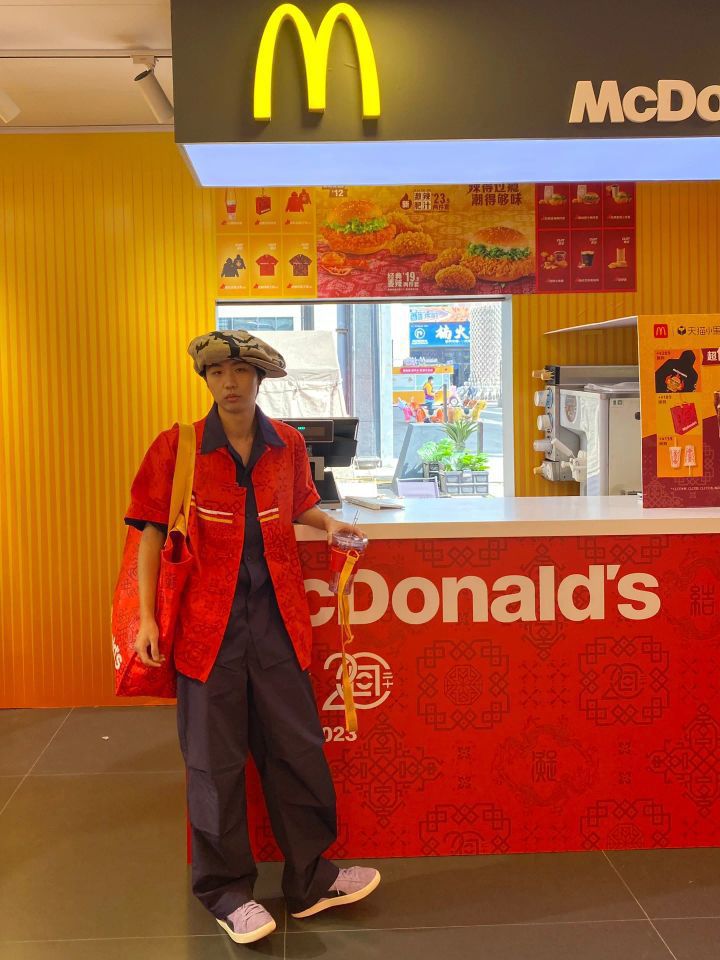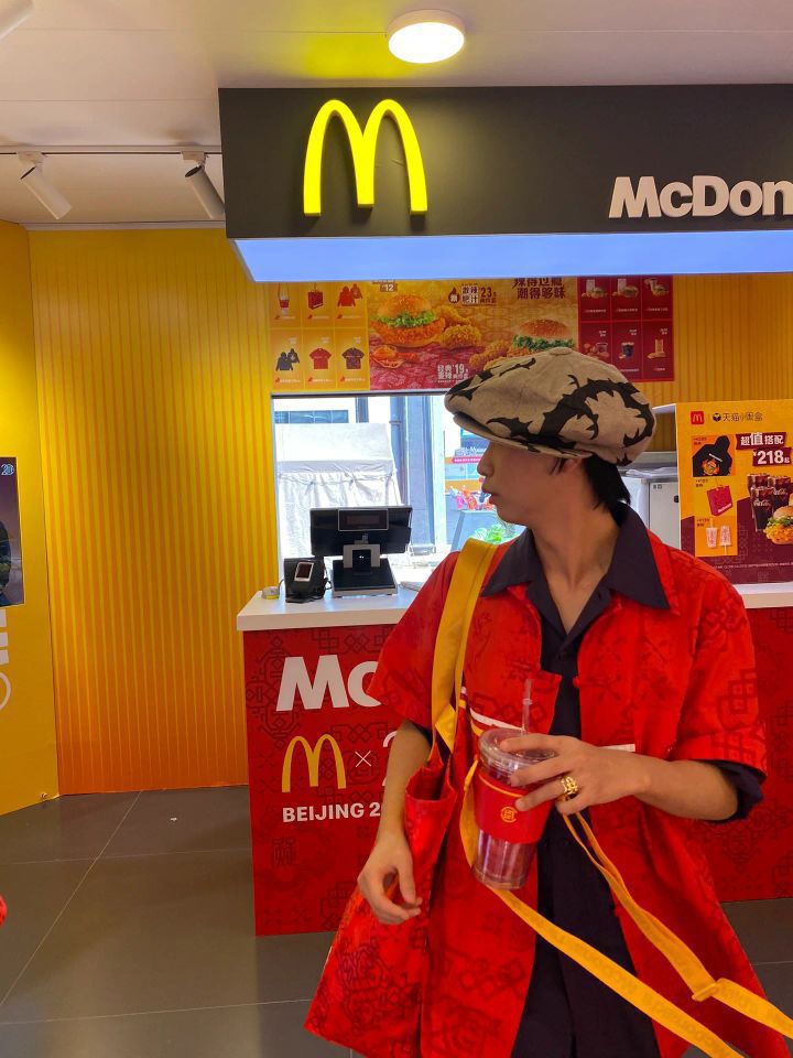 “买手店离职,入职麦当劳” 这就是今日的穿搭主题。 收到了CLOT X 麦当劳 用紫色和红色做个大红大紫穿搭 北京快闪店 五棵松华熙live 衬衫、水杯,包包CLOT X 麦当劳 帽子:Christopher Nemeth 紫色裤子:Uniqlo U系列 伞兵裤 鞋子:PUMA