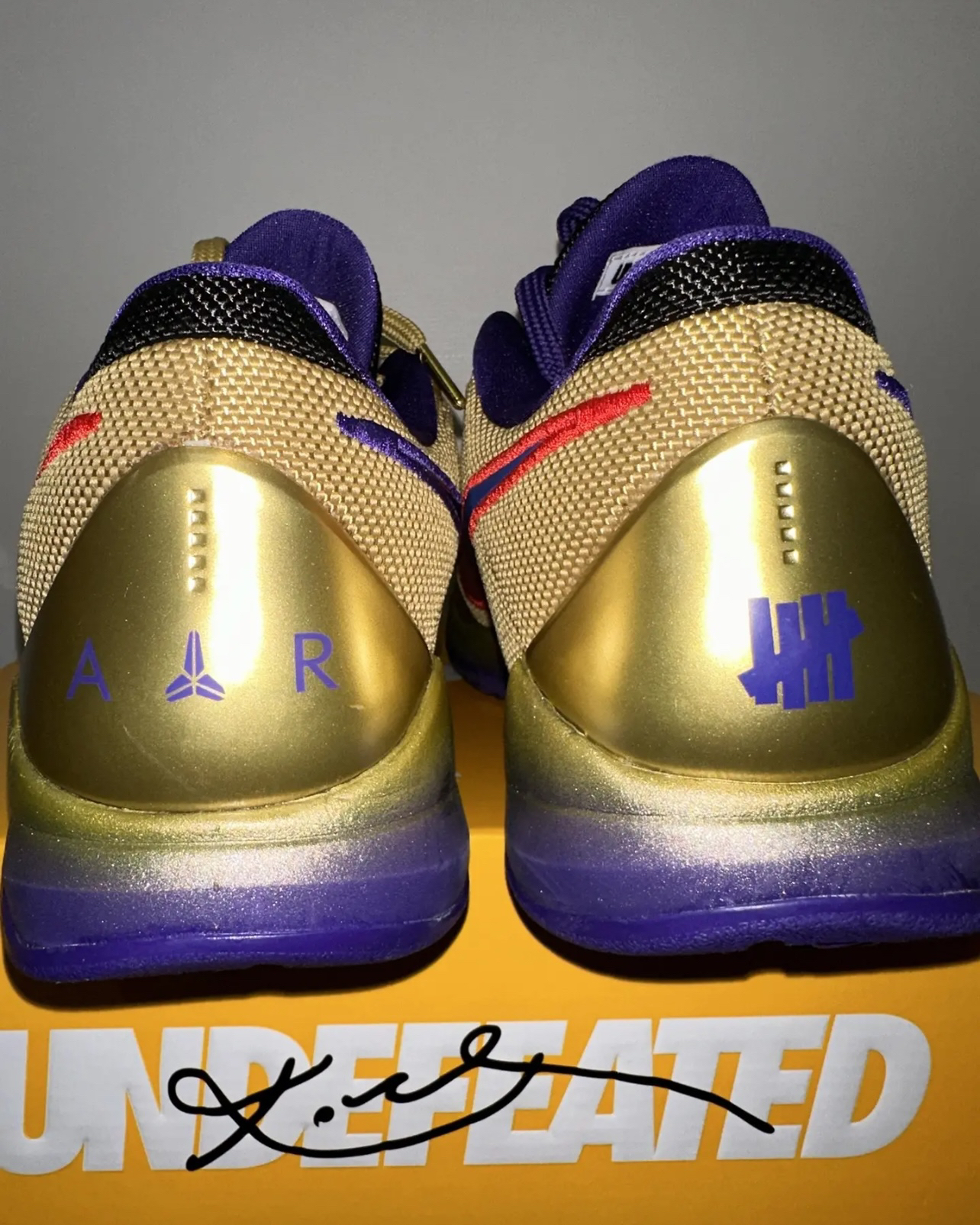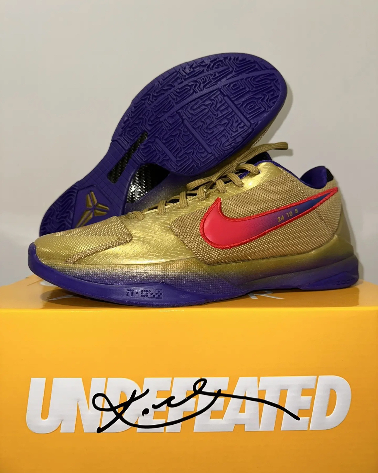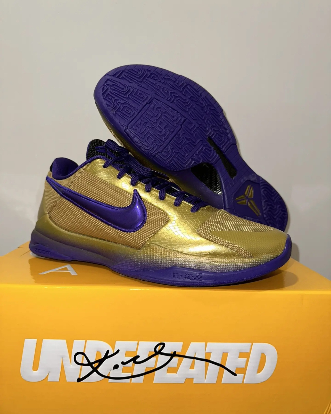 Undefeated × Nike Kobe 5 Protro "Hall of Fame"紫金名人堂 实战篮球鞋 💁♂️外观配色 经典紫金配色,附赠紫色鞋带 💁上脚感受 个人感觉有点挤,建议大一码 💁♀️搭配建议 搭配湖人球衣穿就很Nice