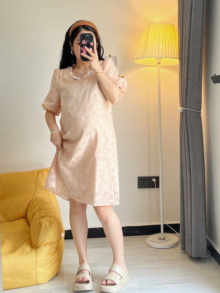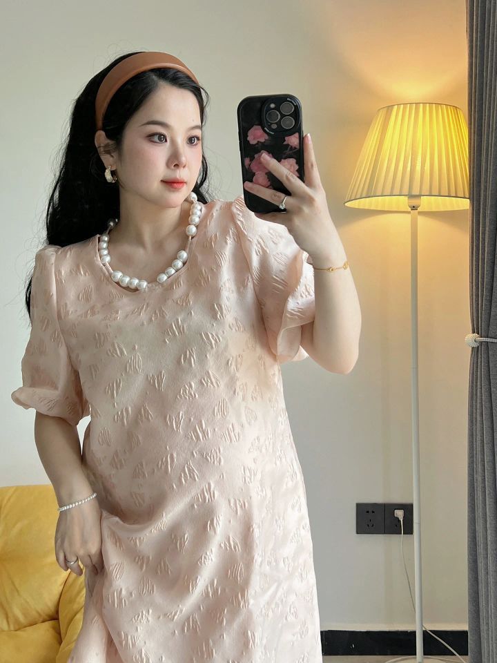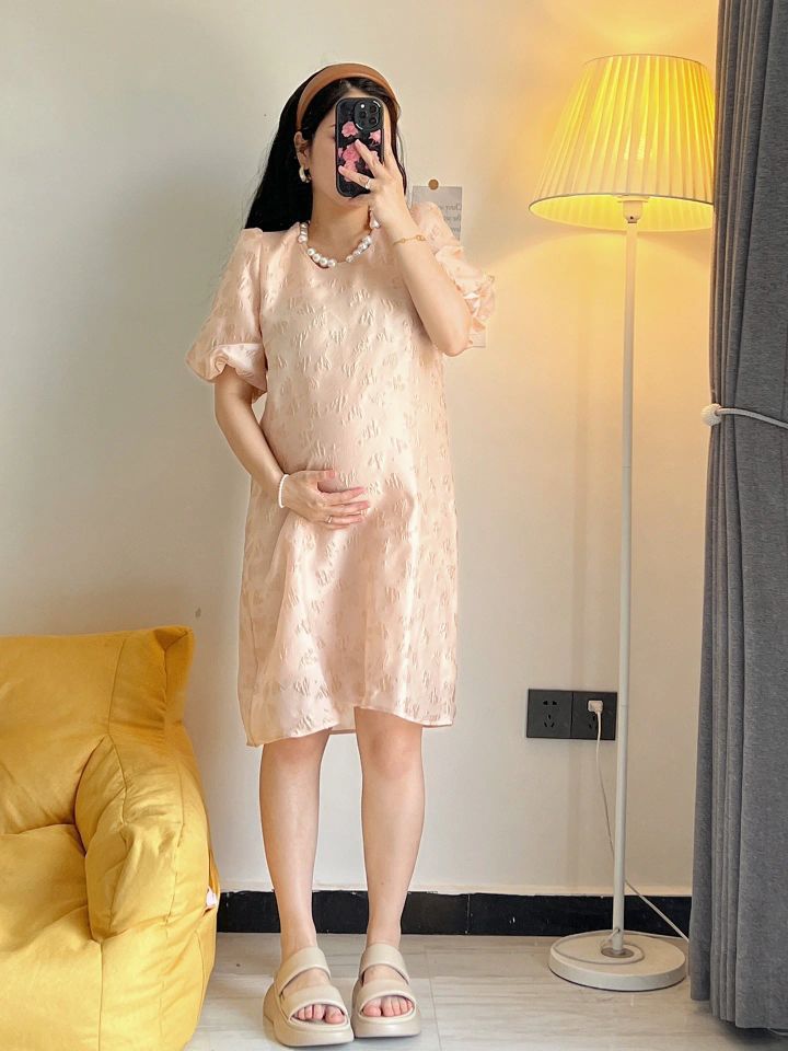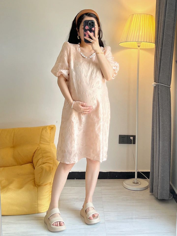 超公主的一条孕妇裙 粉粉嫩嫩 胸口珍珠装饰很精致 迎接夏天的亮色系小裙子 粉色也超显白
